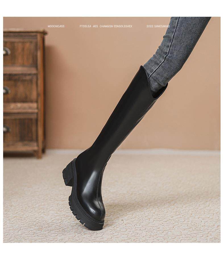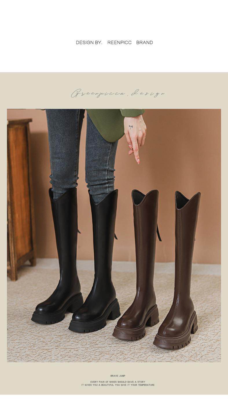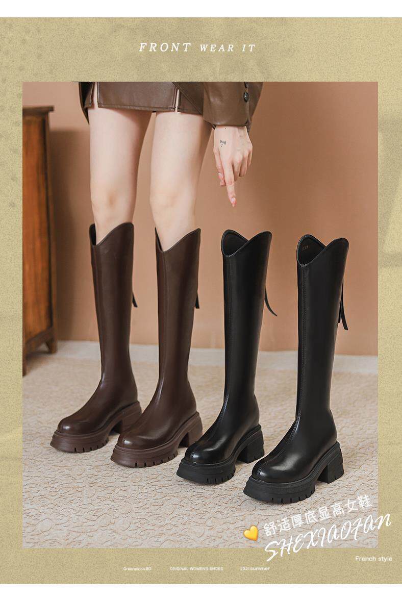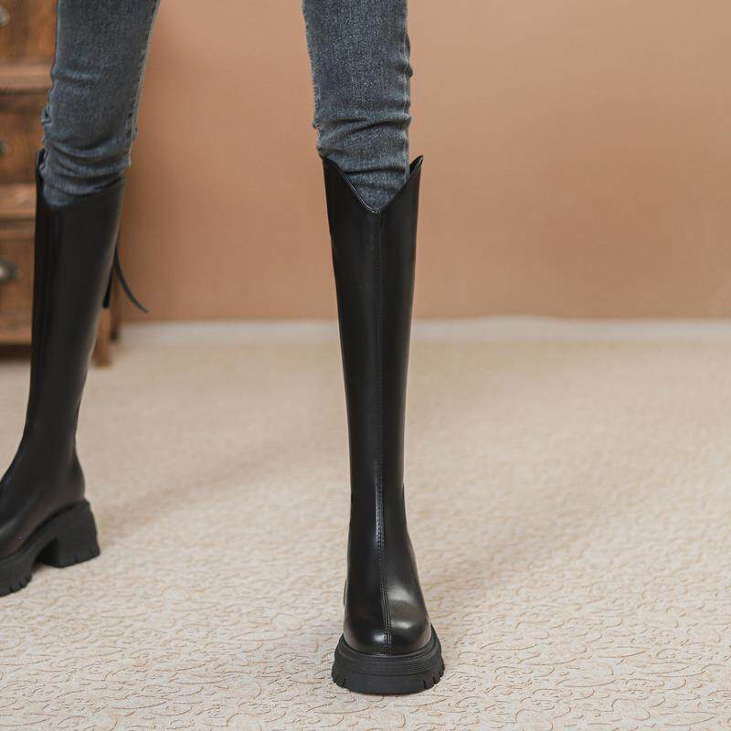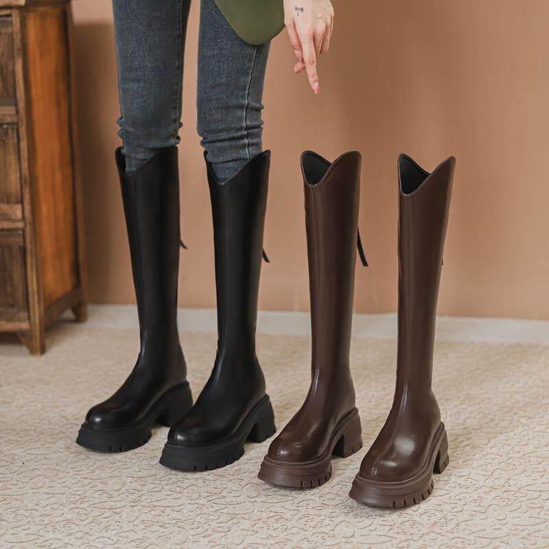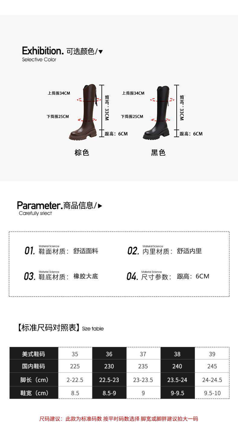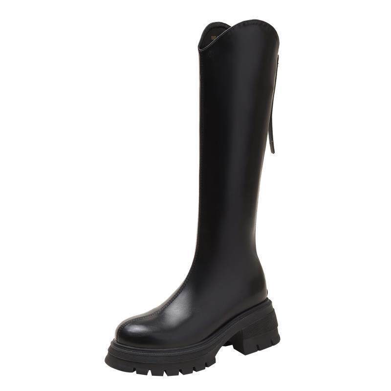 V-Cut Women's Boots for Petite Riders, 2023 Autumn and Winter New French-Style Round-Toe Back-Zip Over-The-Knee High Boots