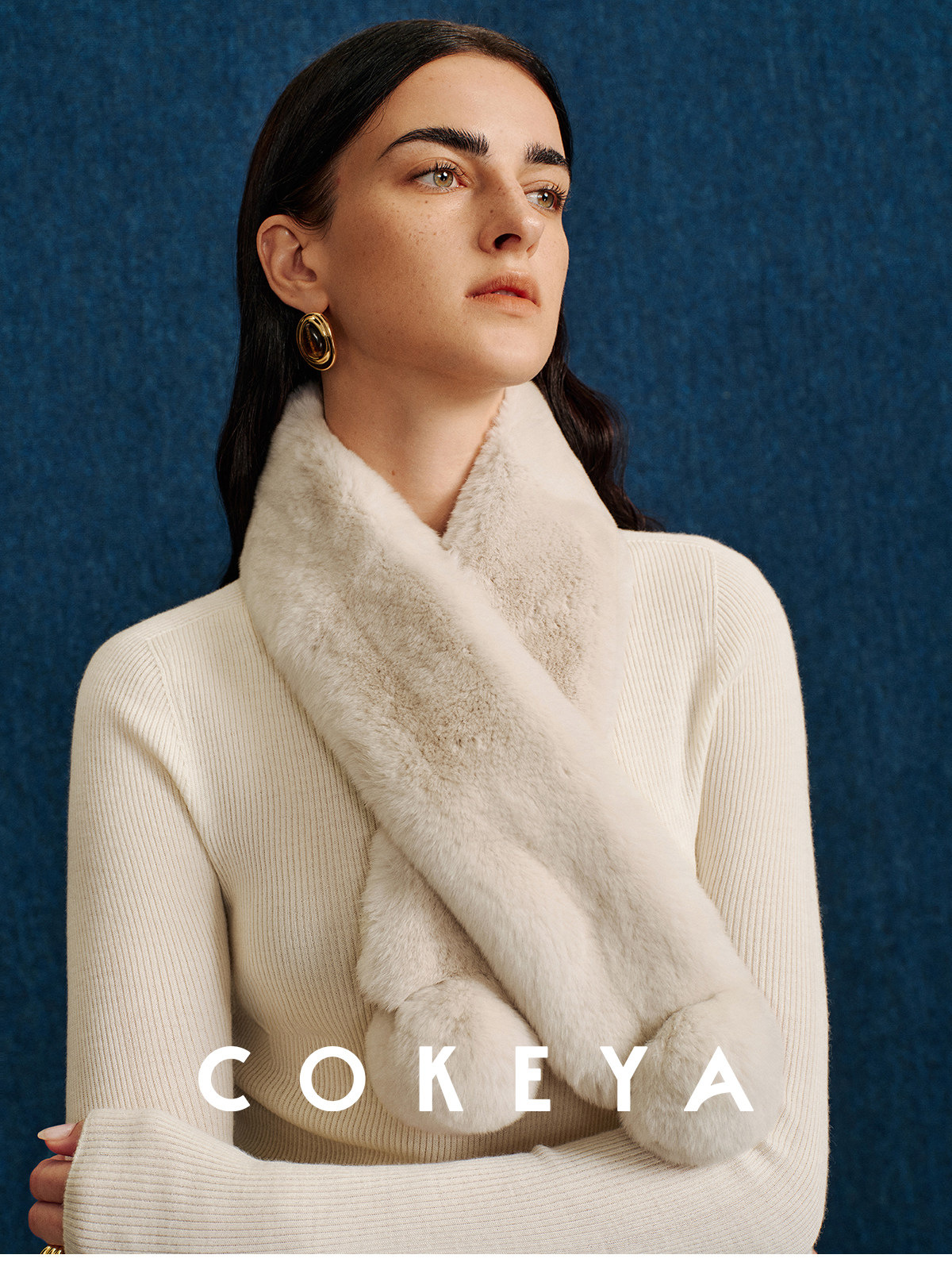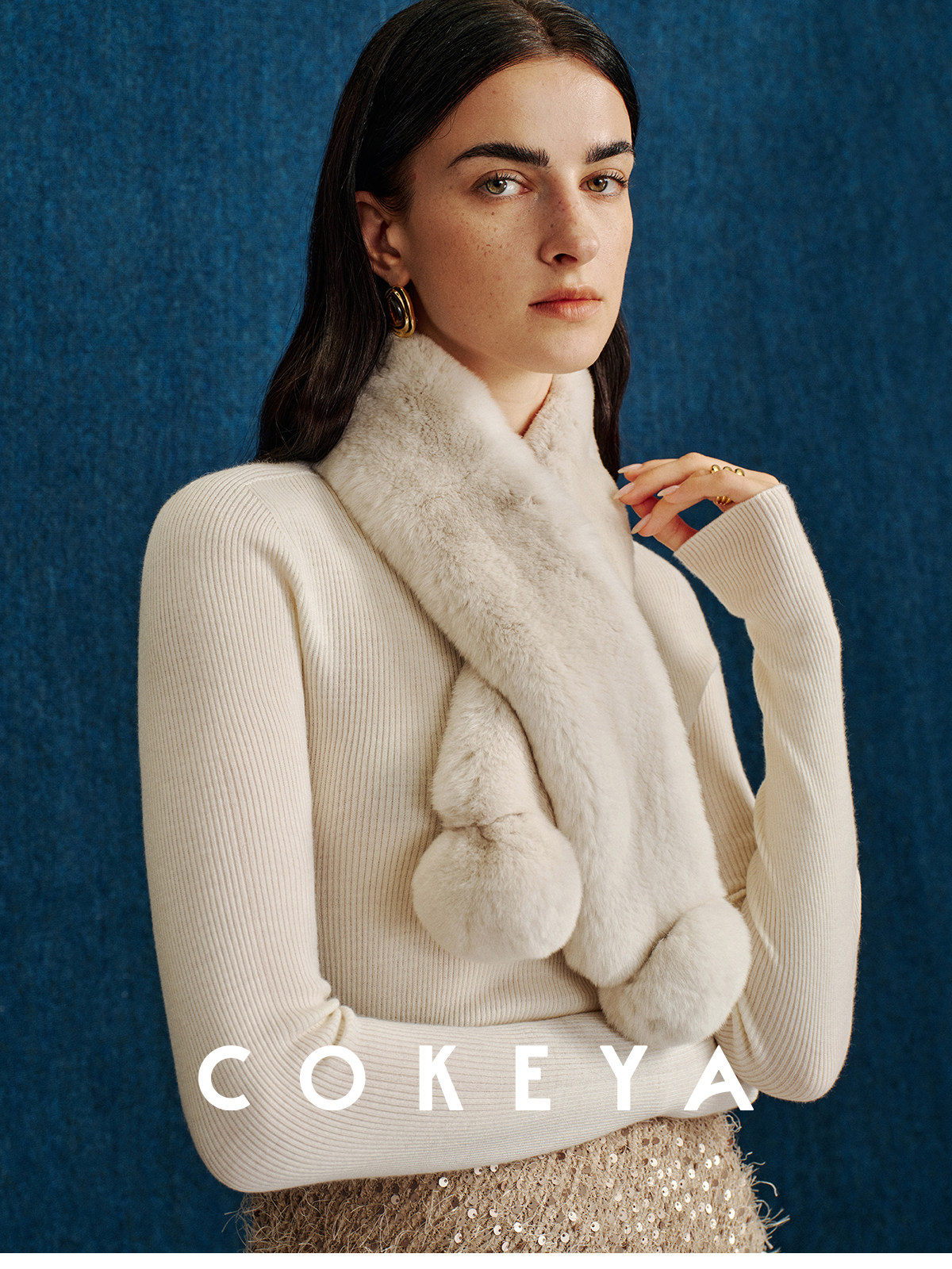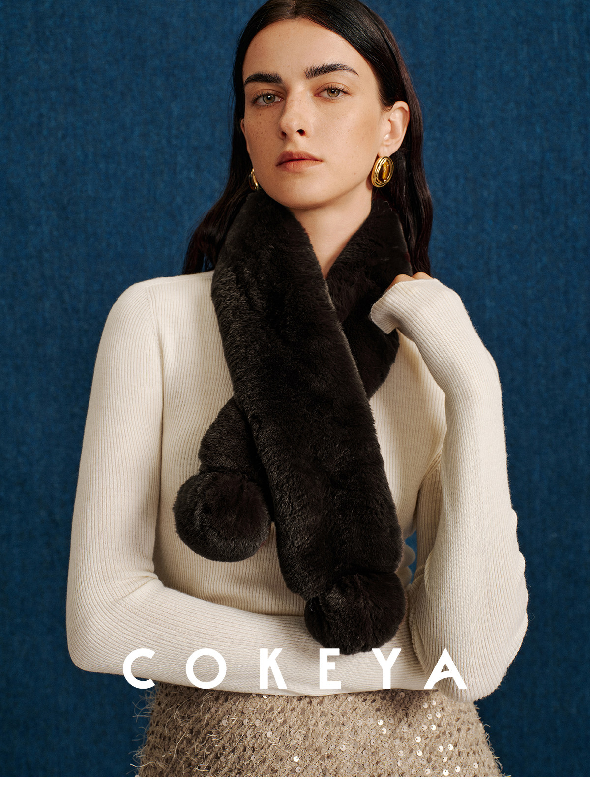 Cokeya/Warm "Ball Scarf" ~ Soft Overlapping Scarf and Neck Warmer for Women Made of Angora Rex Rabbit Fur