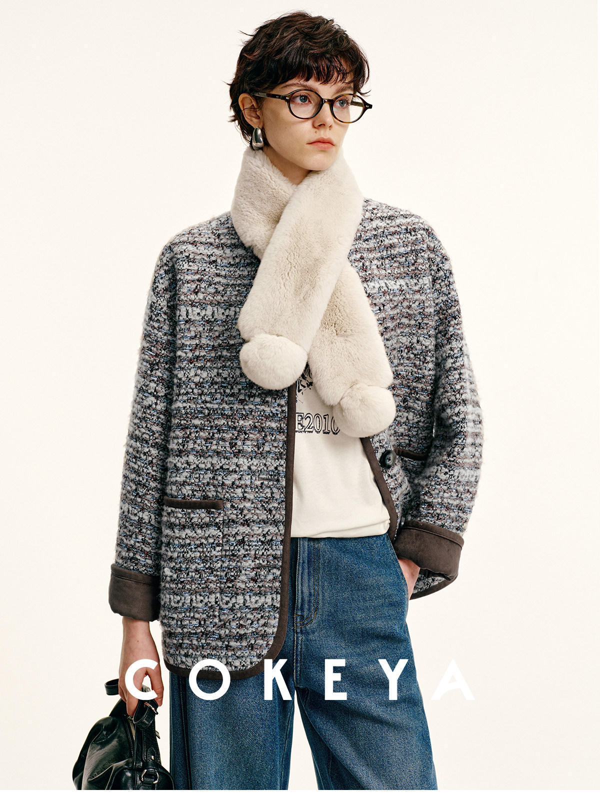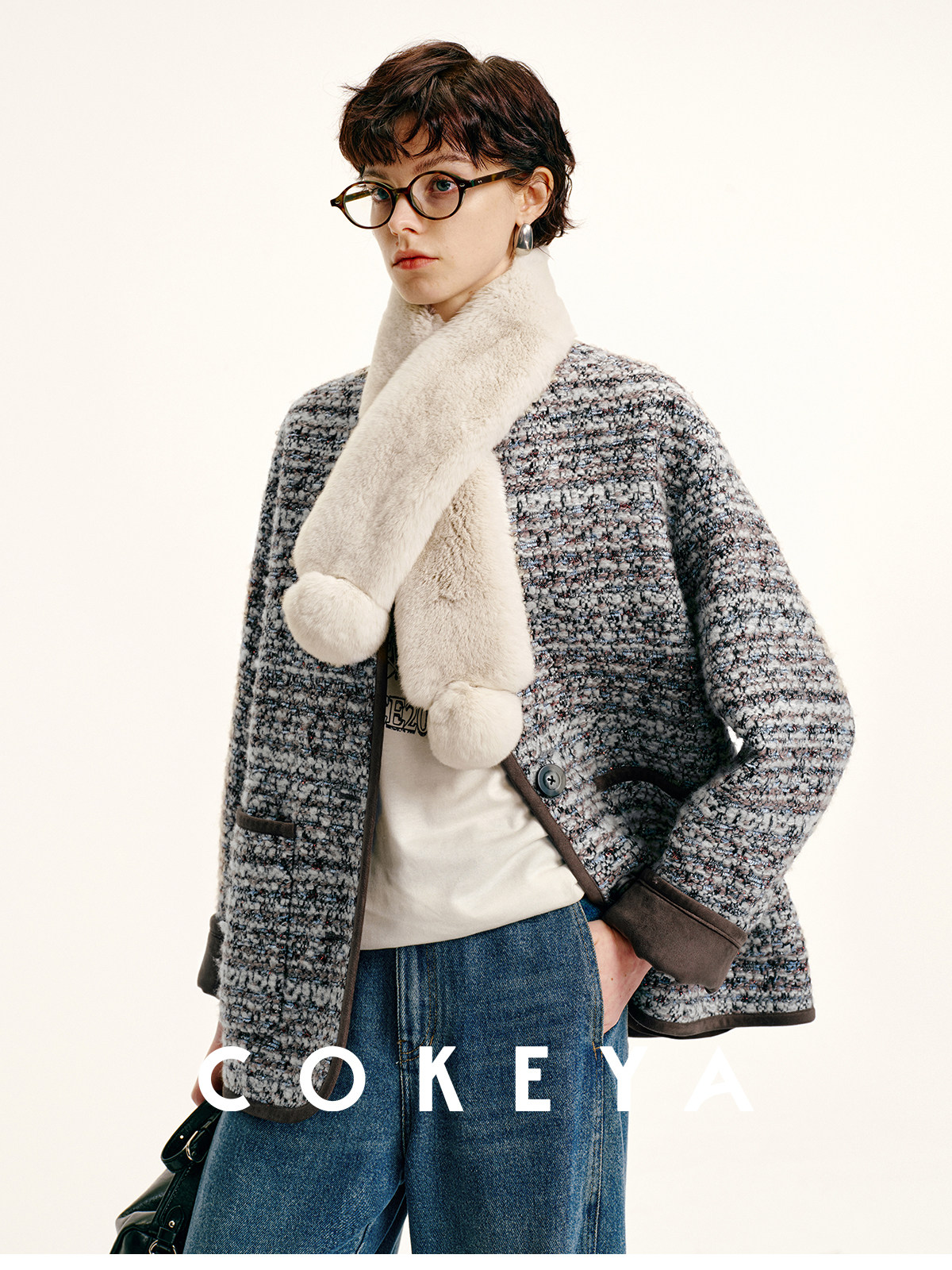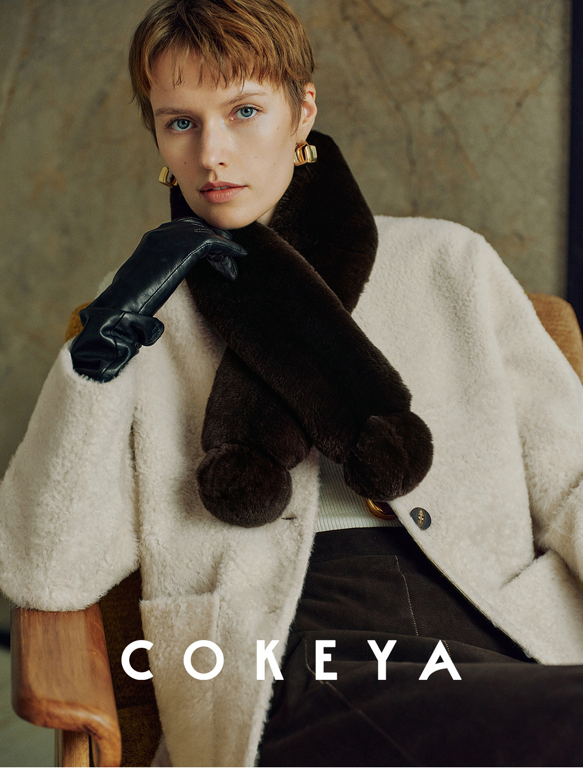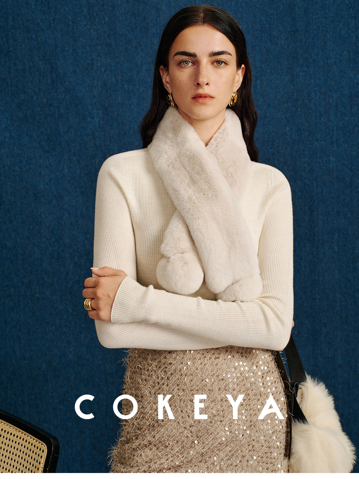 Cokeya/Warm "Ball Scarf" ~ Soft Overlapping Scarf and Neck Warmer for Women Made of Angora Rex Rabbit Fur