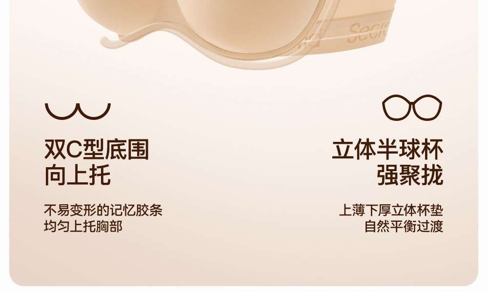 SecretWorld Underwear Women's Small Breast Gathering Round Cup Tube Top Reducing Secondary Breasts Anti-Sagging Sexy Bra
