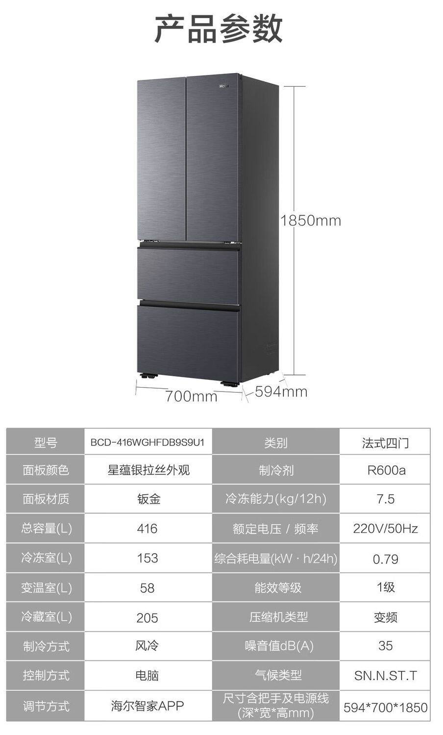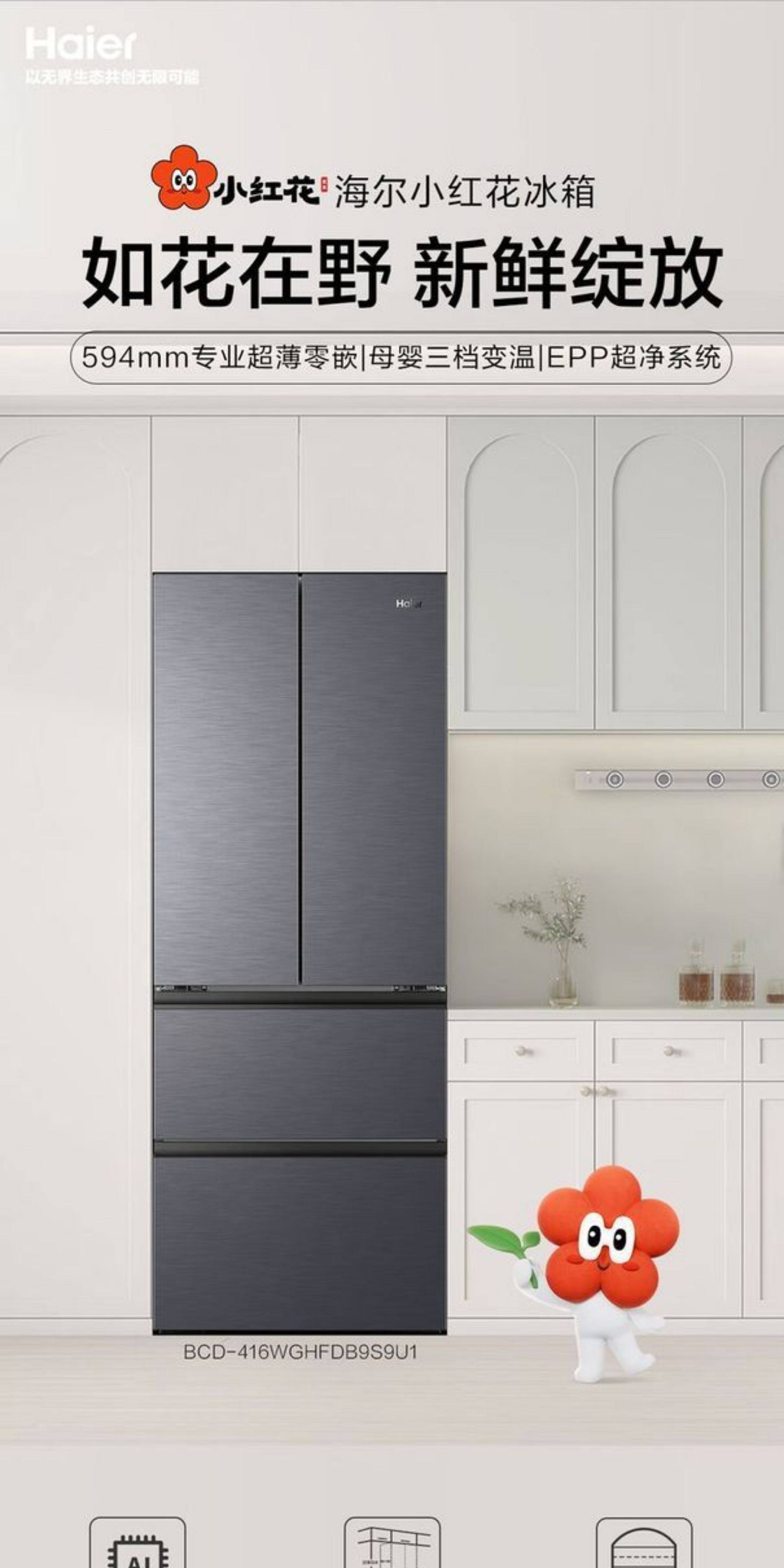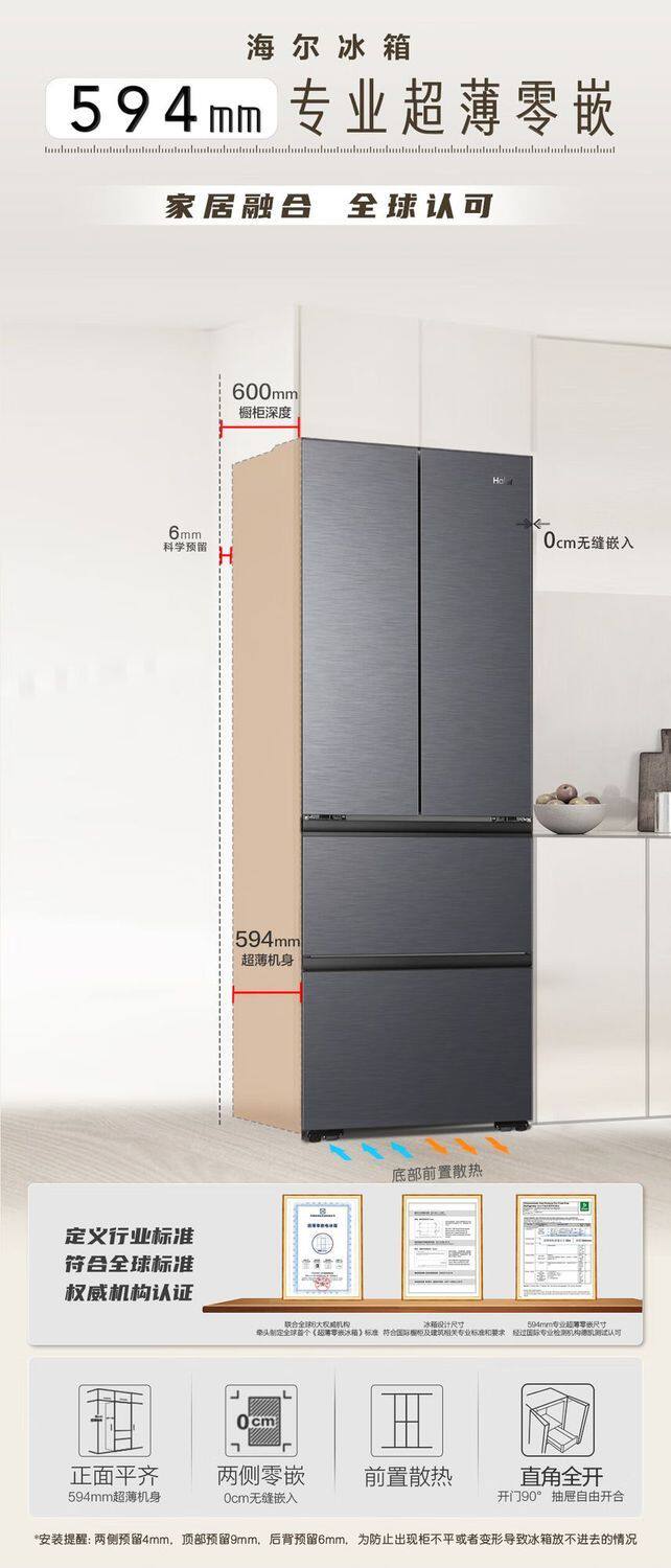 Haier French-Style Multi-Door Ultra-Thin Zero-Embedded First-Class Frost-Free Refrigerator Bcd-416Wghfdb9S9U1