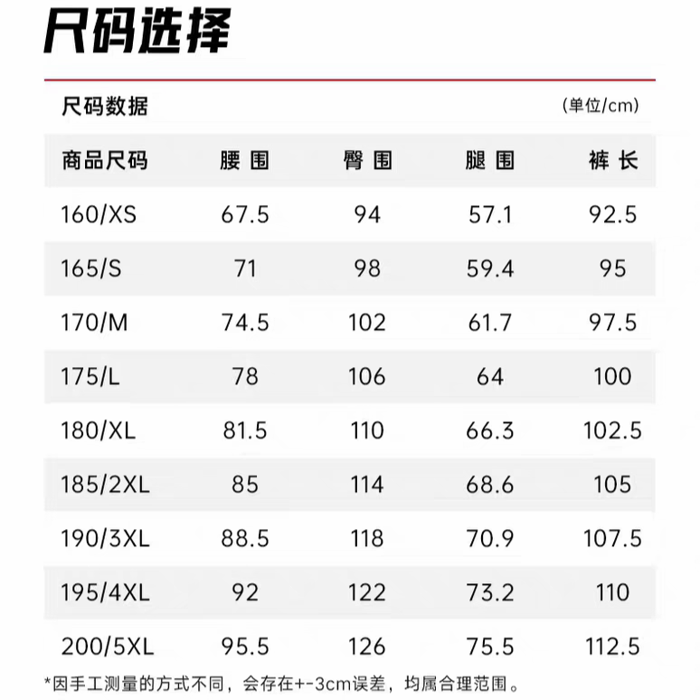 Outseam (cm) 99 cm 101.5 cm 104 cm 106.5 cm 109 cm