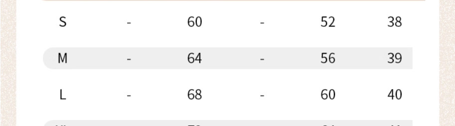 China (cm) 160-165/84-86 165-170 / 88-90 167-172 / 92-96 168-173 / 98-102 170-176 / 106-110