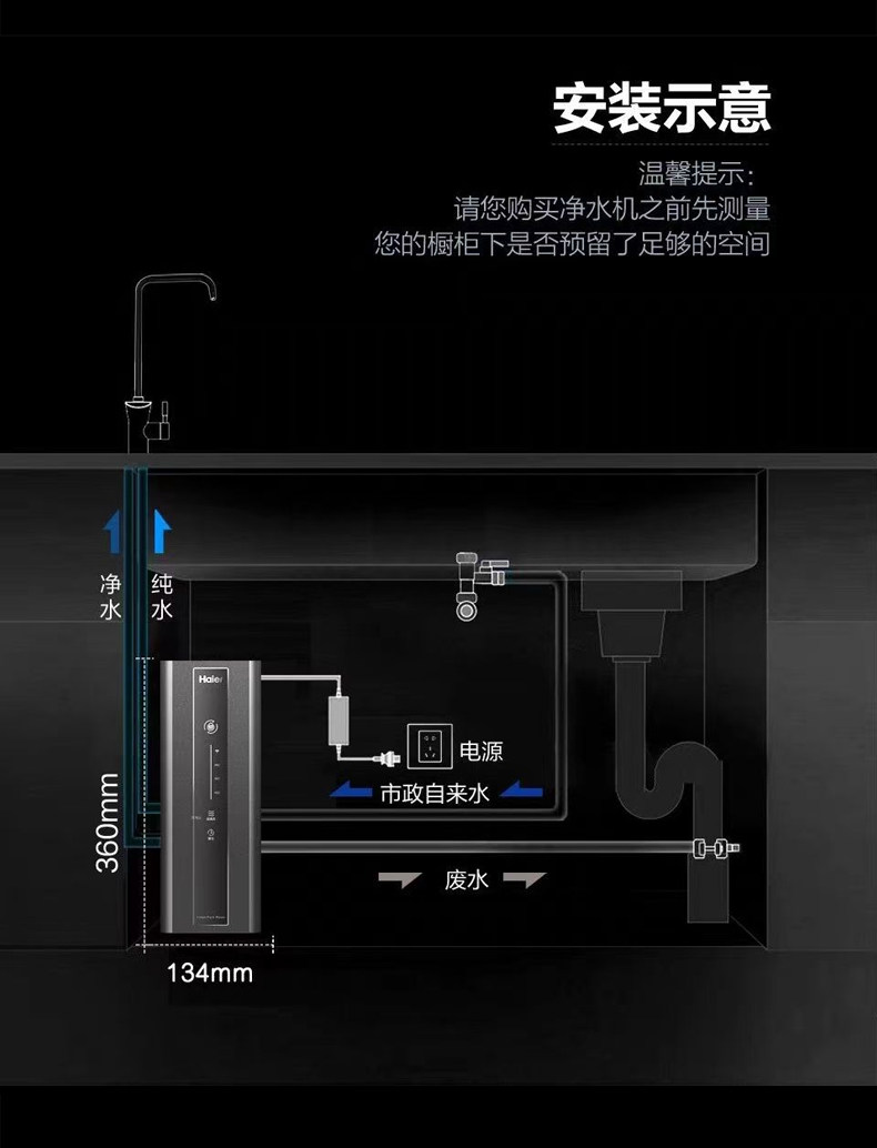 Haier Household Water Purifier Ro Reverse Osmosis Filtration 800g Under-Counter Water Purifier Set