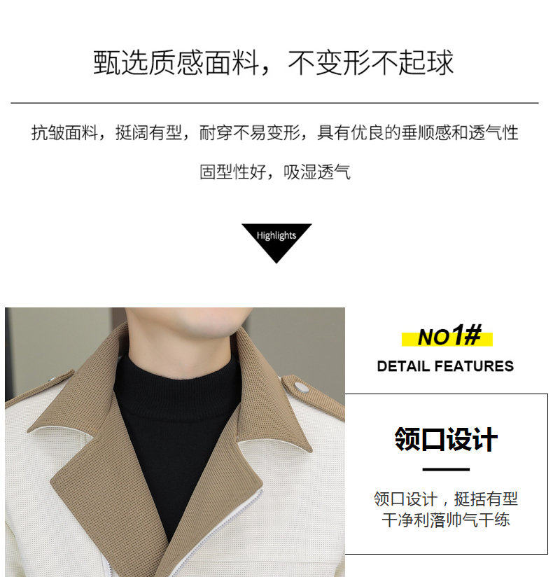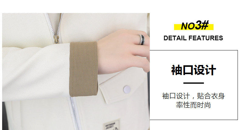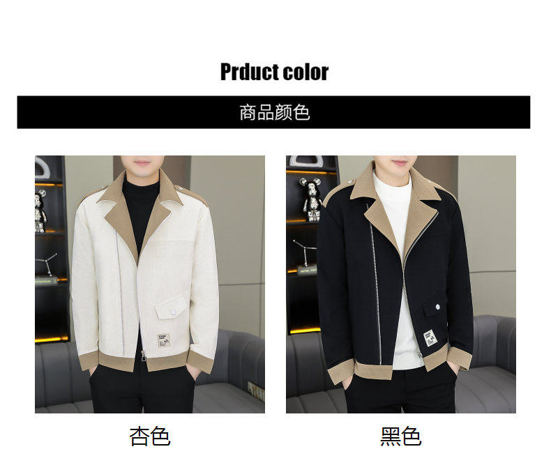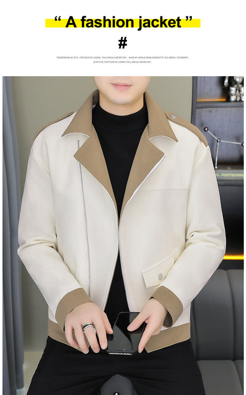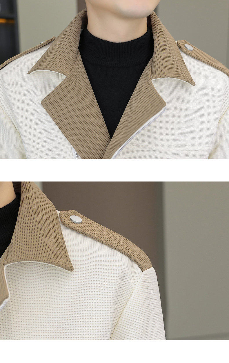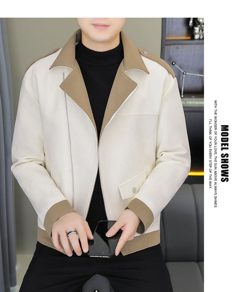 2025 Autumn New Style Lapel Color-Block Diagonal Zipper Waffle Jacket Men's Youth Slim Fit Versatile Coat