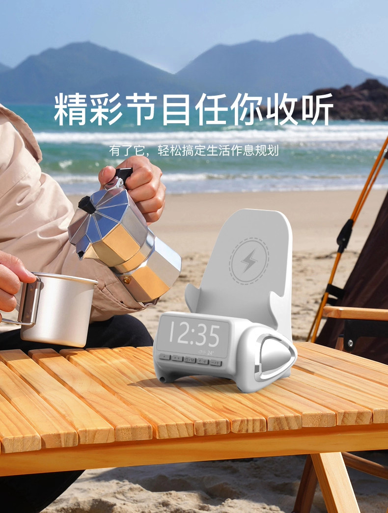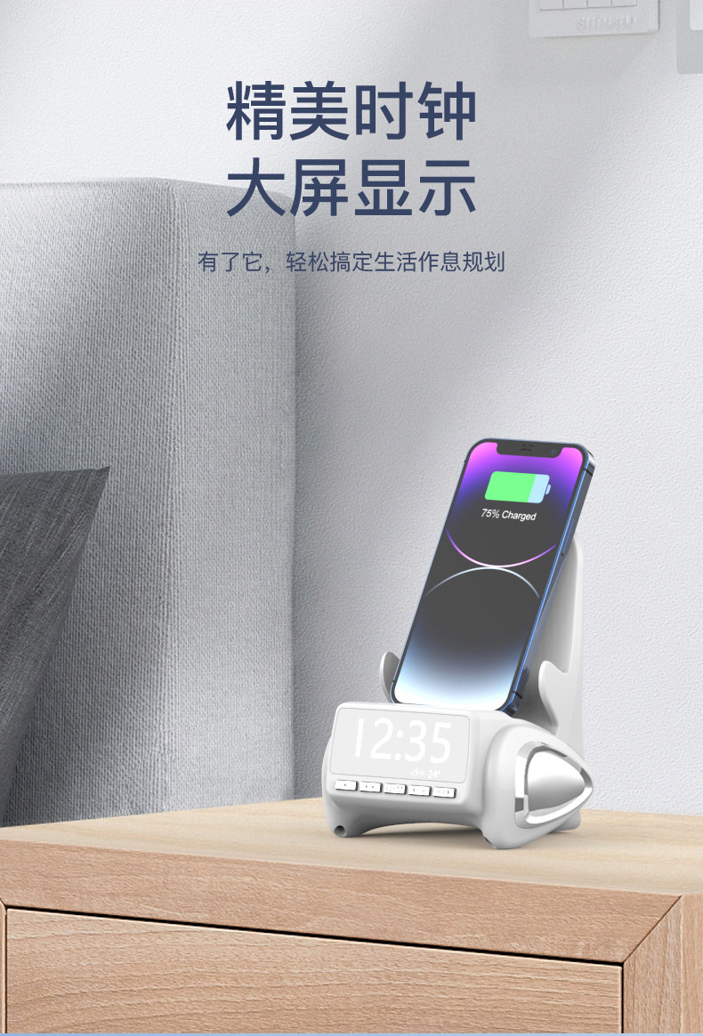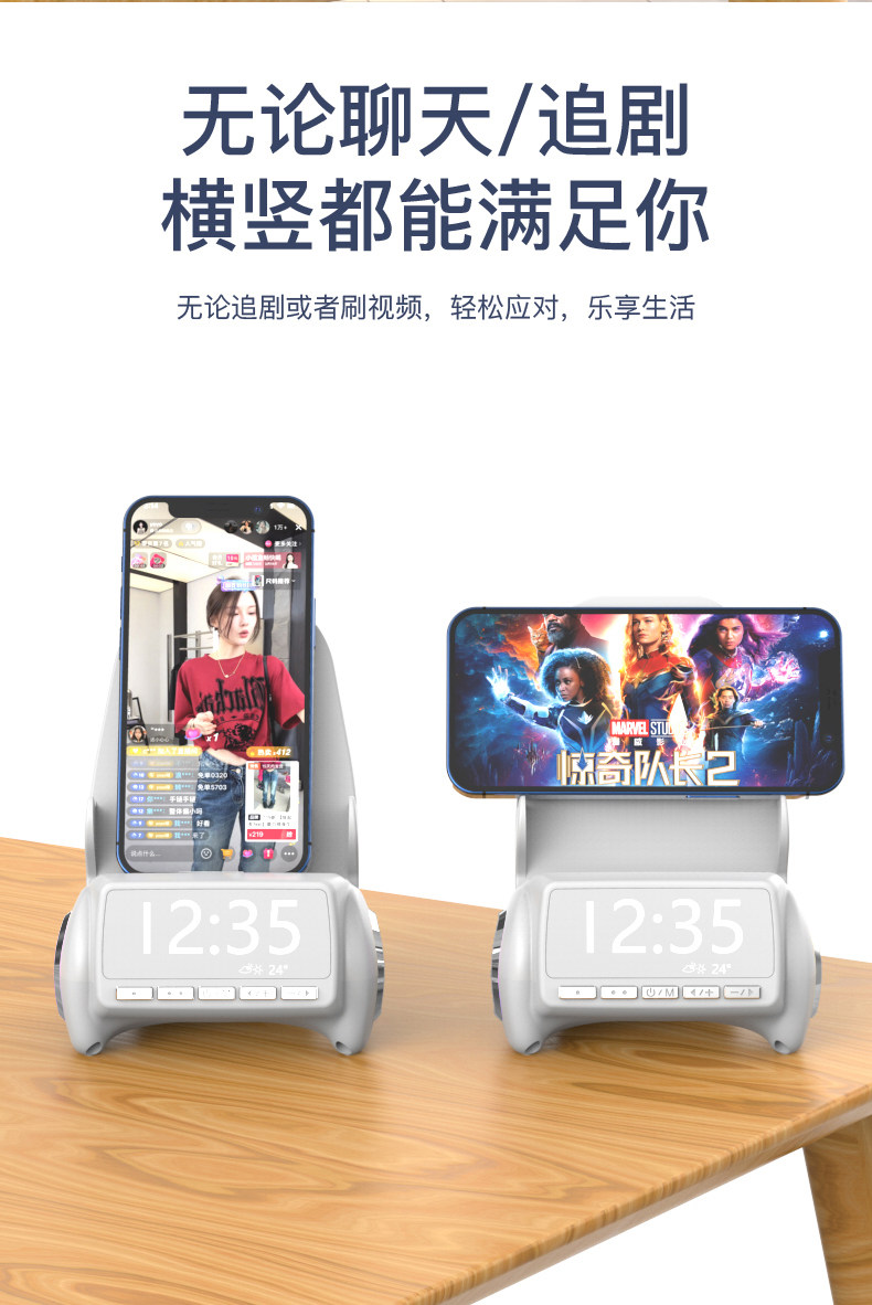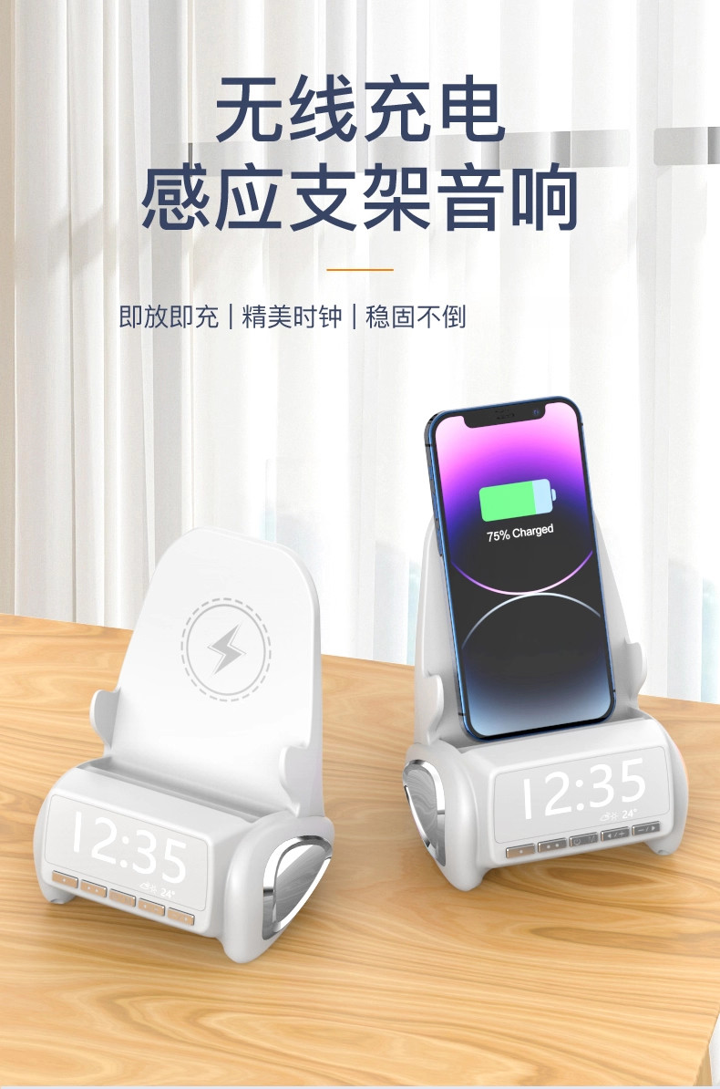 2025 New Wireless Charging Phone Stand Bluetooth Speaker Charging 5-in-1 Portable Multifunctional Universal Foldable Desktop Stand Alarm Clock High-Quality Sound Internet Celebrity Lazy Watching Tv Gadget
