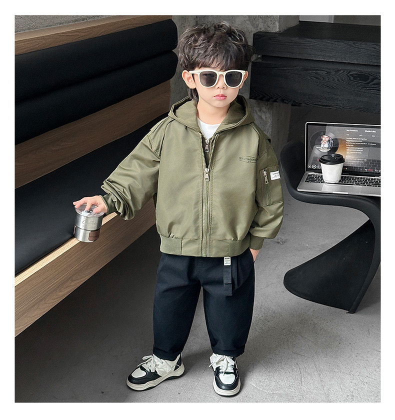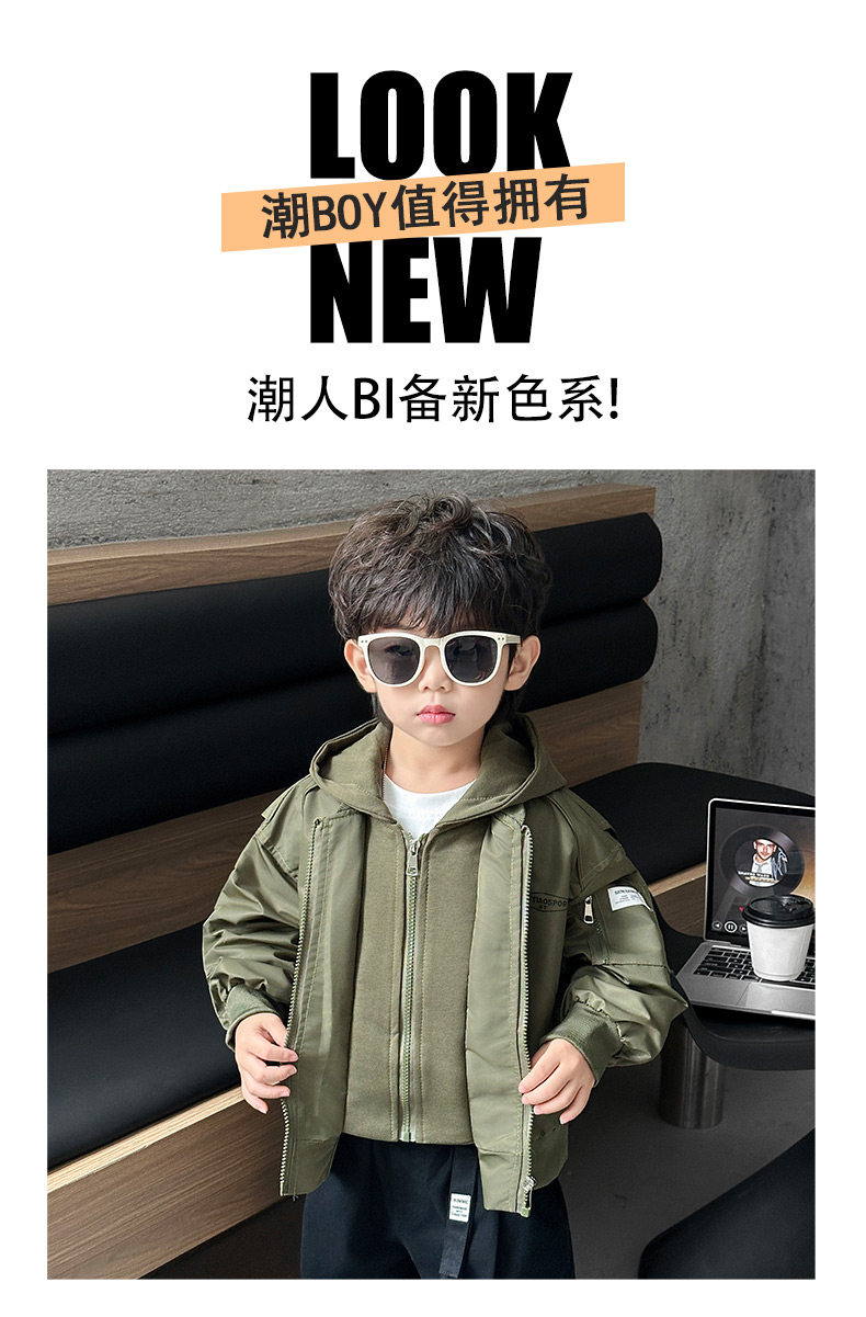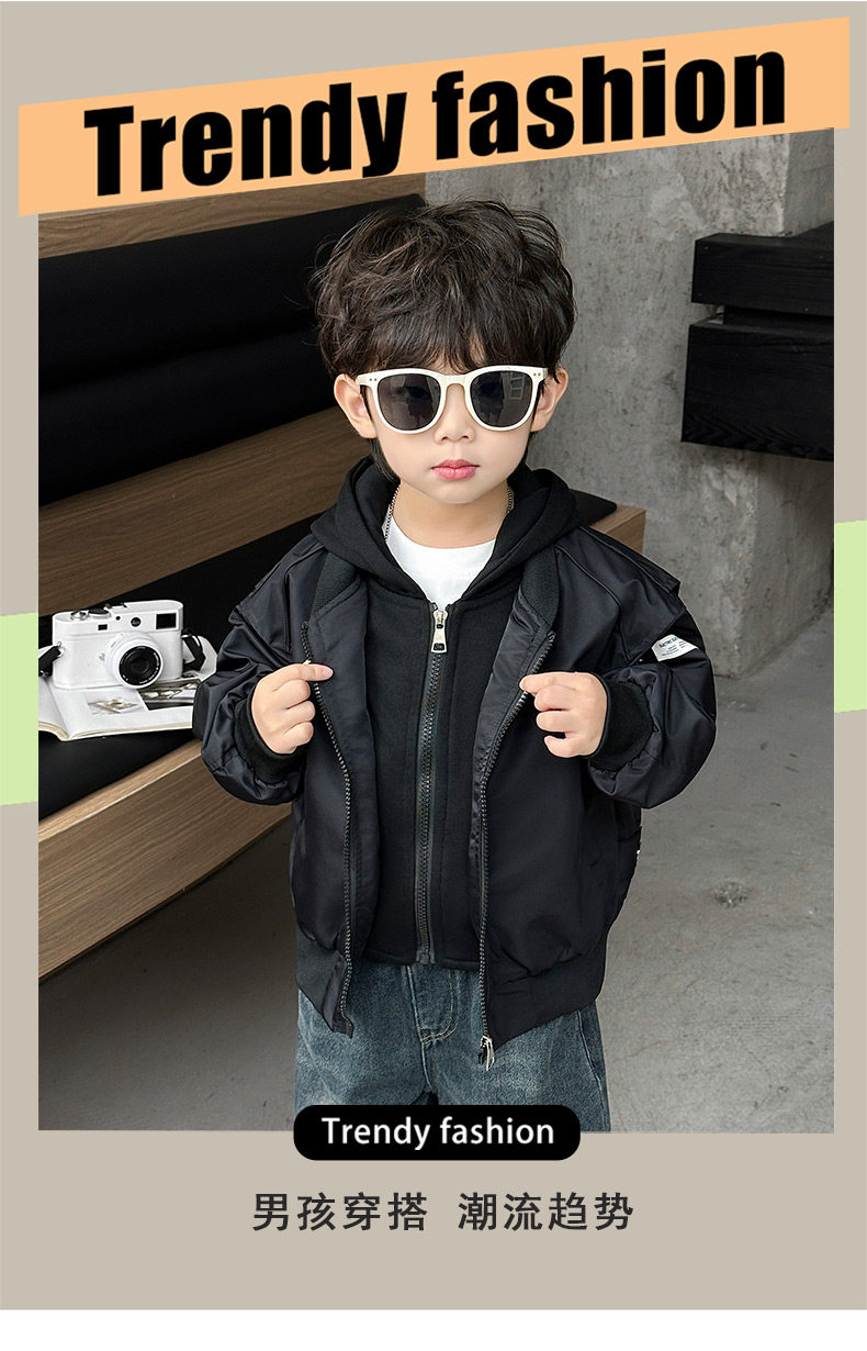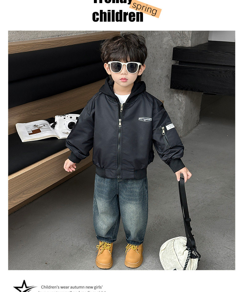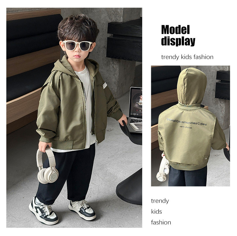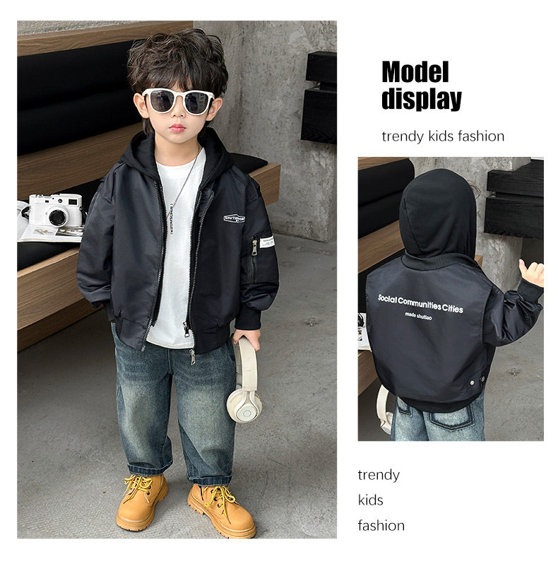 Boys' Hooded Jacket, Autumn 2025 New Style, Children's Fake Two-Piece Windbreaker, Little Boys' Spring and Autumn Fashionable Baseball Jacket