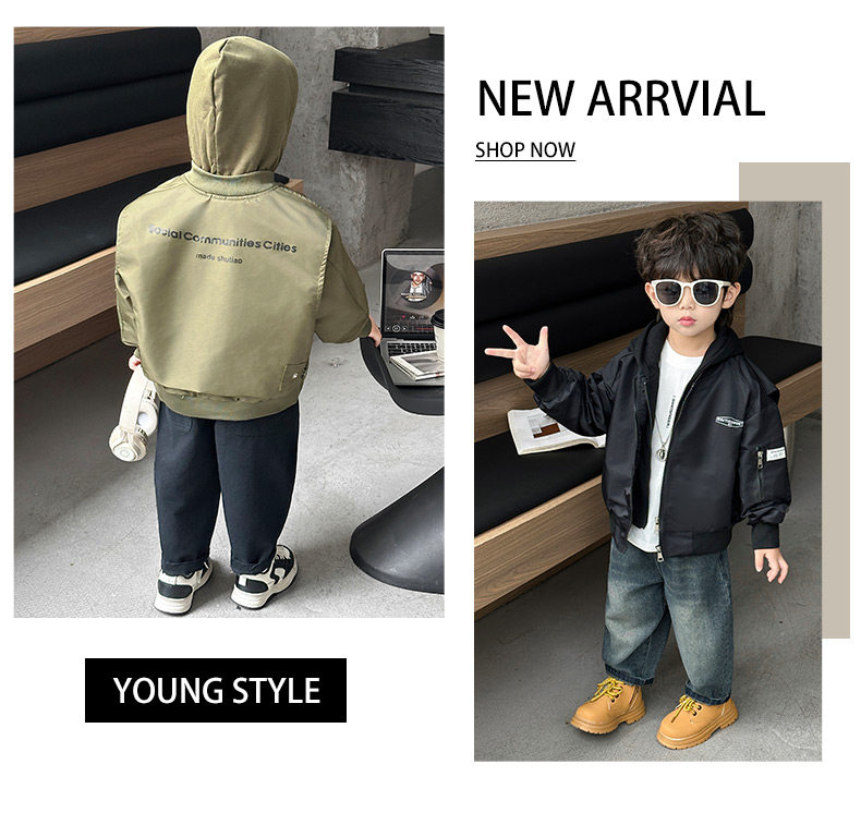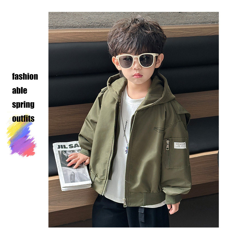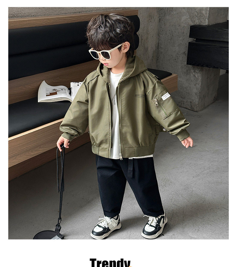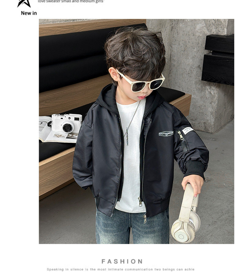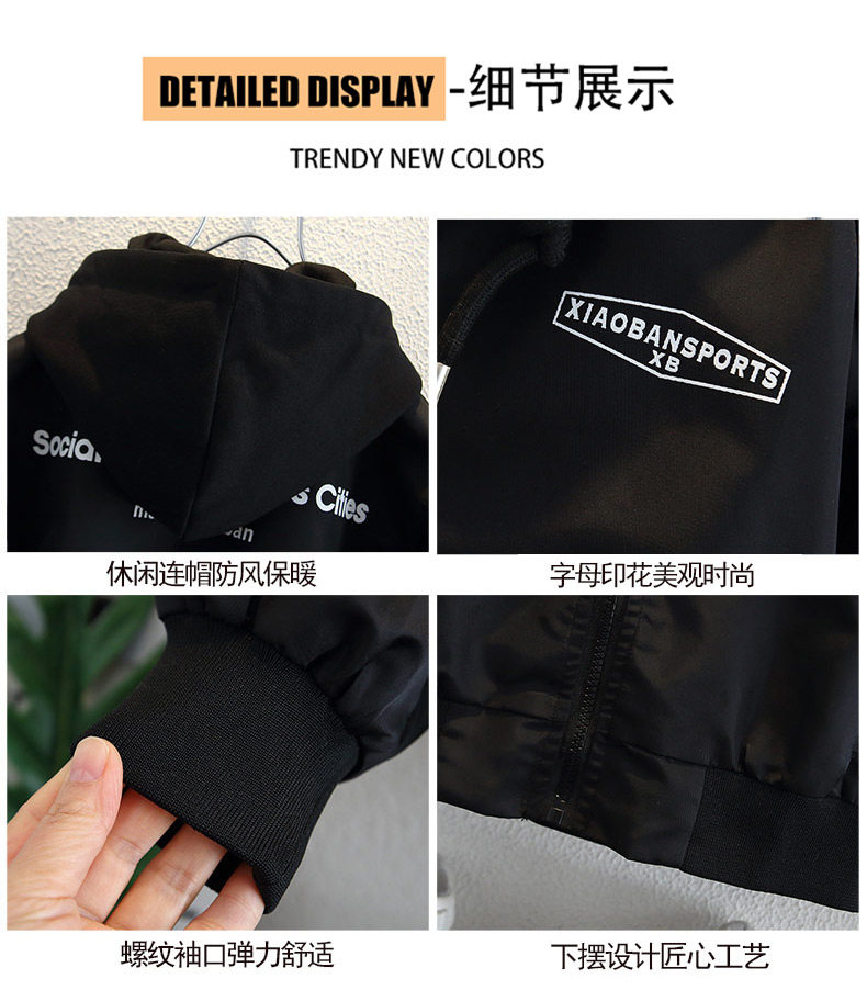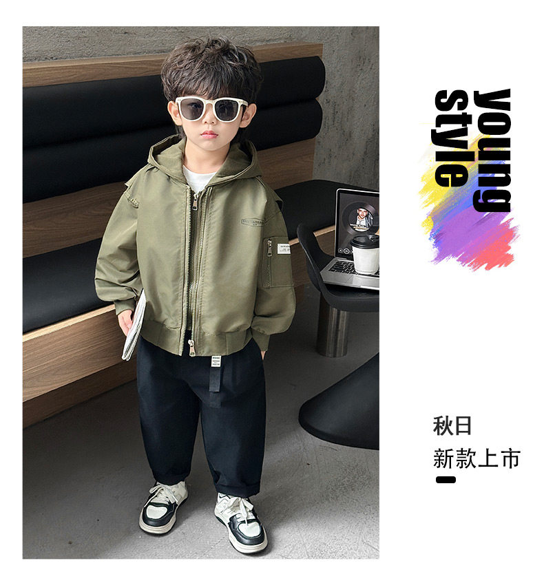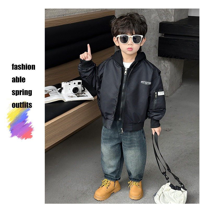 Boys' Hooded Jacket, Autumn 2025 New Style, Children's Fake Two-Piece Windbreaker, Little Boys' Spring and Autumn Fashionable Baseball Jacket