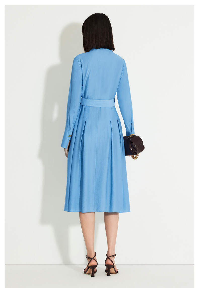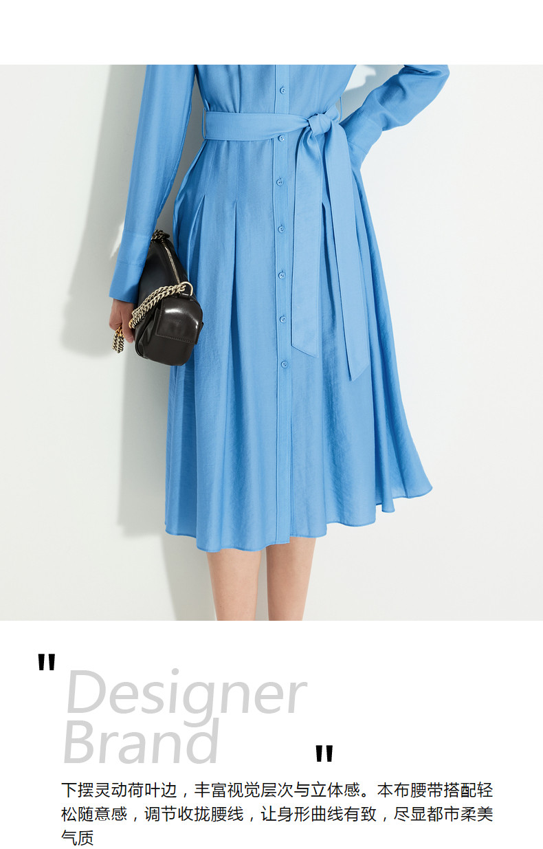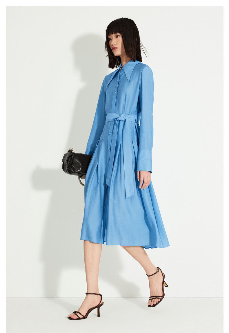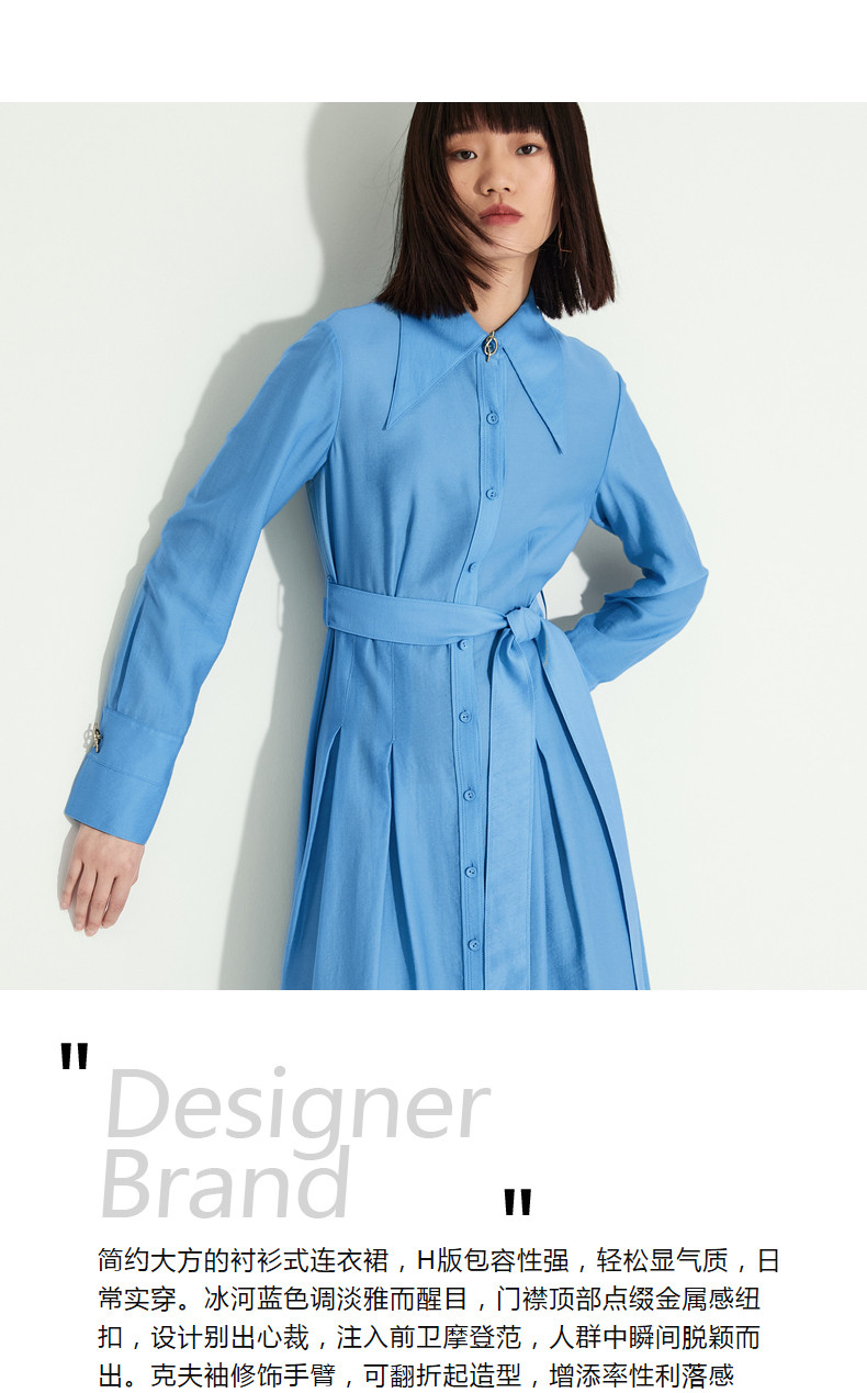 Idpan Outlet Elegant and Graceful Glacier Blue Long-Sleeve Dress for Women, Early Autumn, Simple and Versatile for Commuting