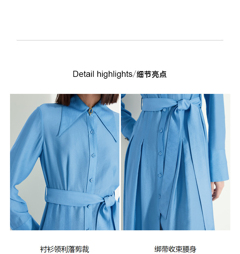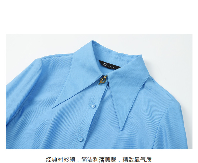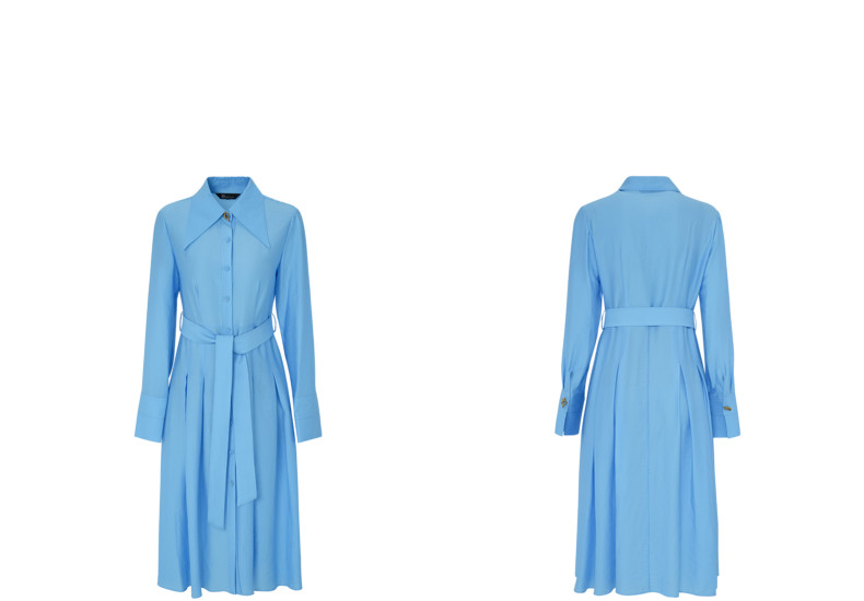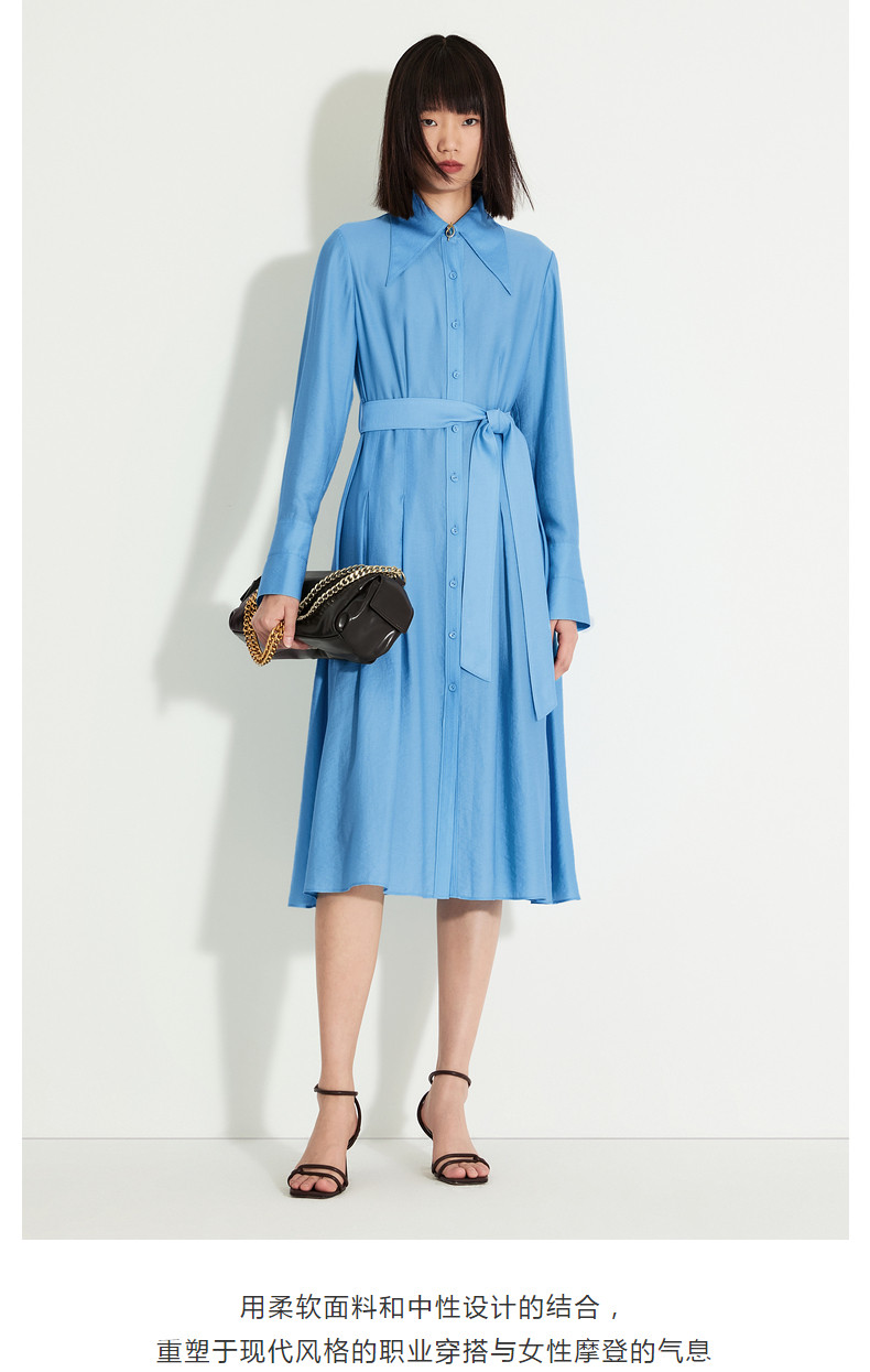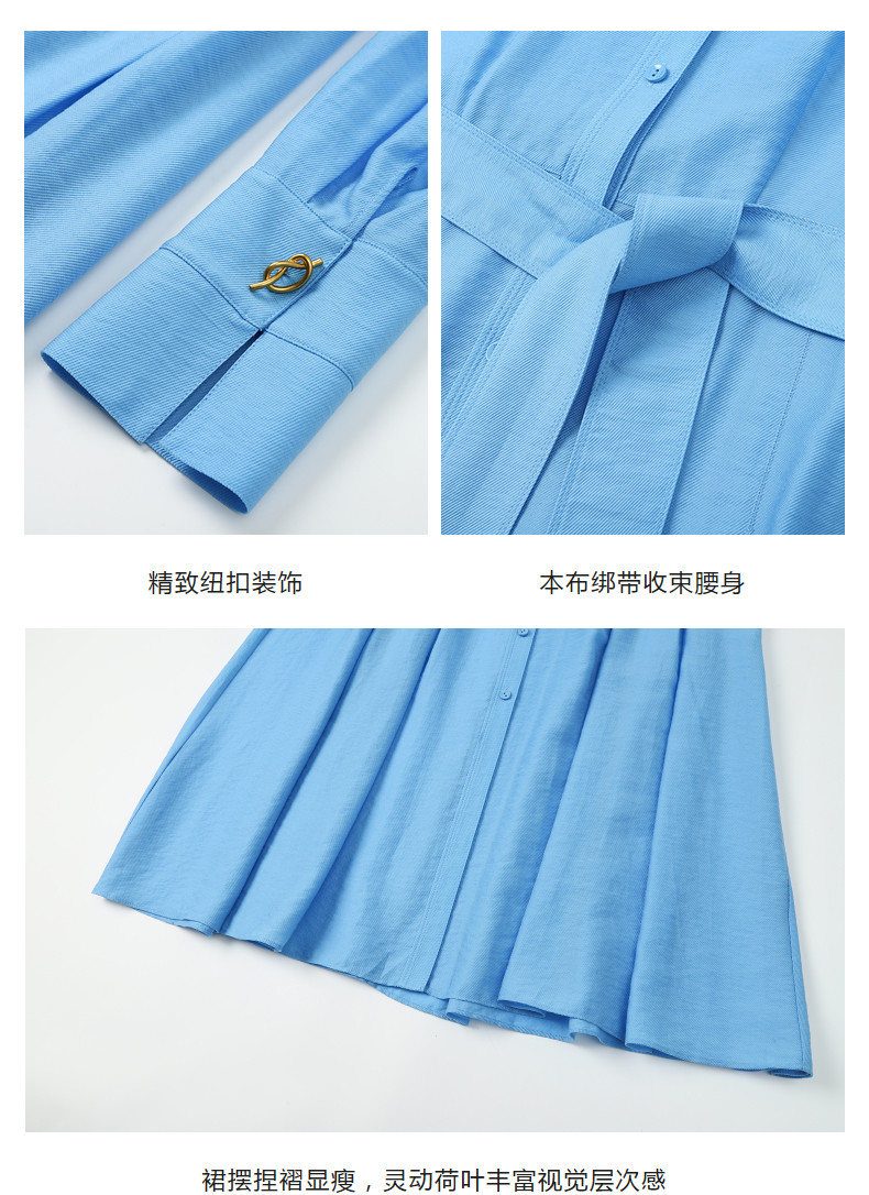 Idpan Outlet Elegant and Graceful Glacier Blue Long-Sleeve Dress for Women, Early Autumn, Simple and Versatile for Commuting
