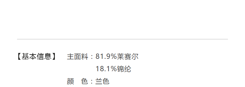 Material Composition Lyocell Fiber (Lyocell) 81.9% Polyamide Fiber (Nylon) 18.1%