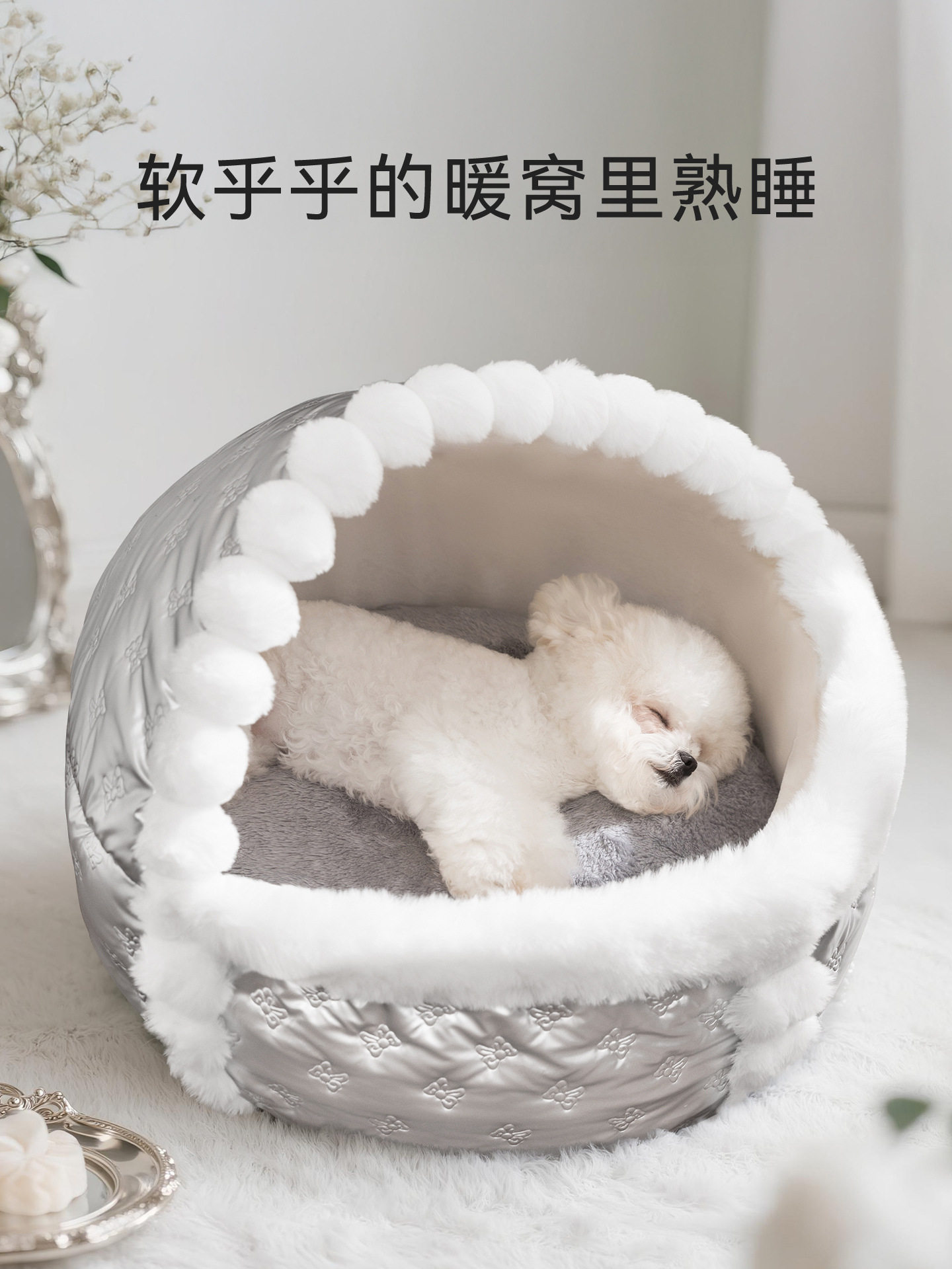 Small Fragrant-Style Dog Bed, Winter Warm Cradle Cat Bed, Semi-Enclosed Safe Dog Bed for Small and Medium-Sized Dogs, Bichon Dog House