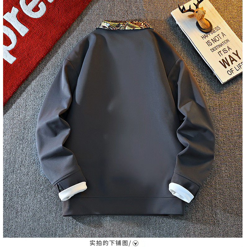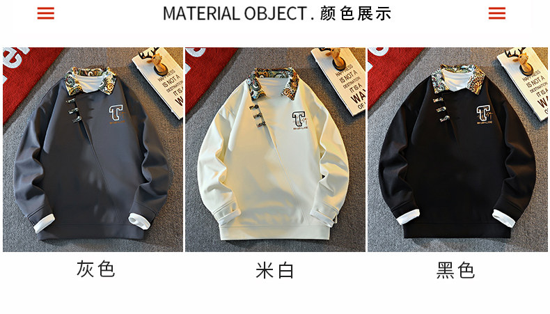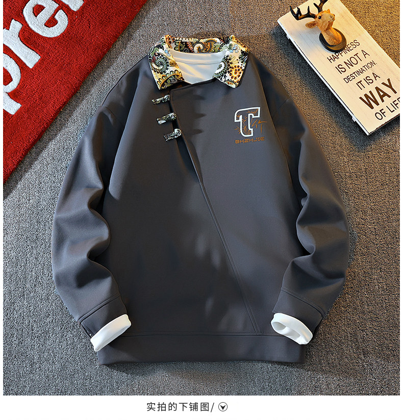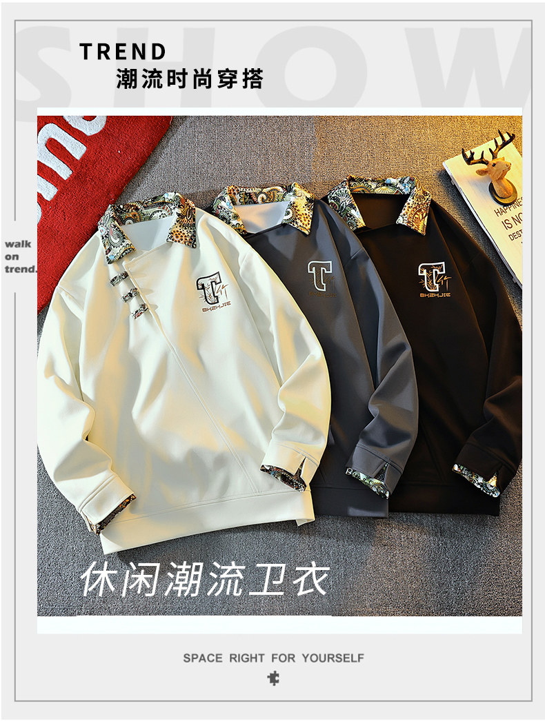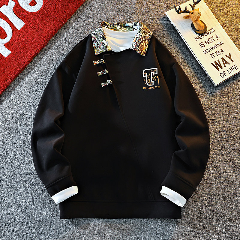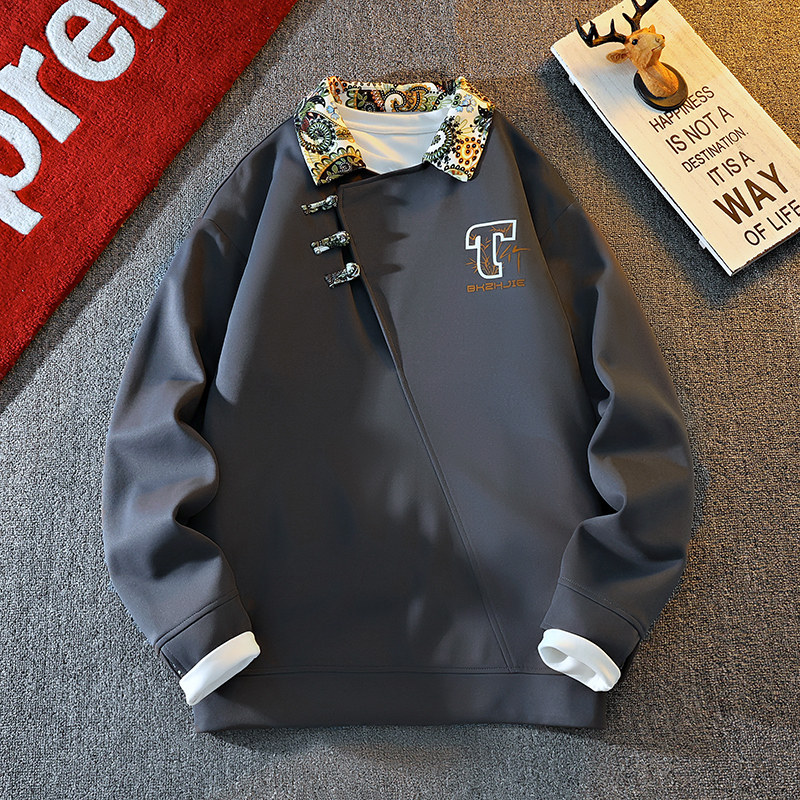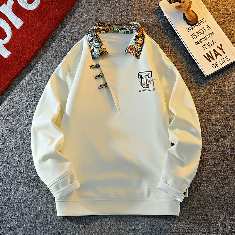 New Chinese Style Sweatshirt for Men, Spring and Autumn Design, Lapel Jacket, Top Clothing for Teenagers, National Trend Button-Up Pullover