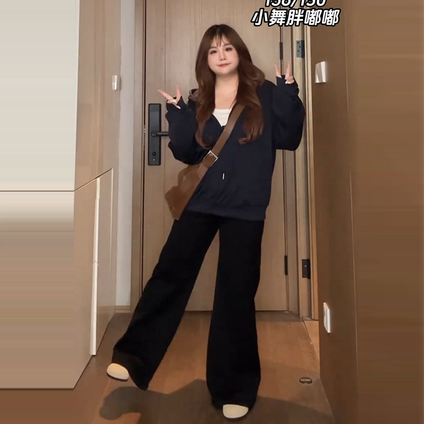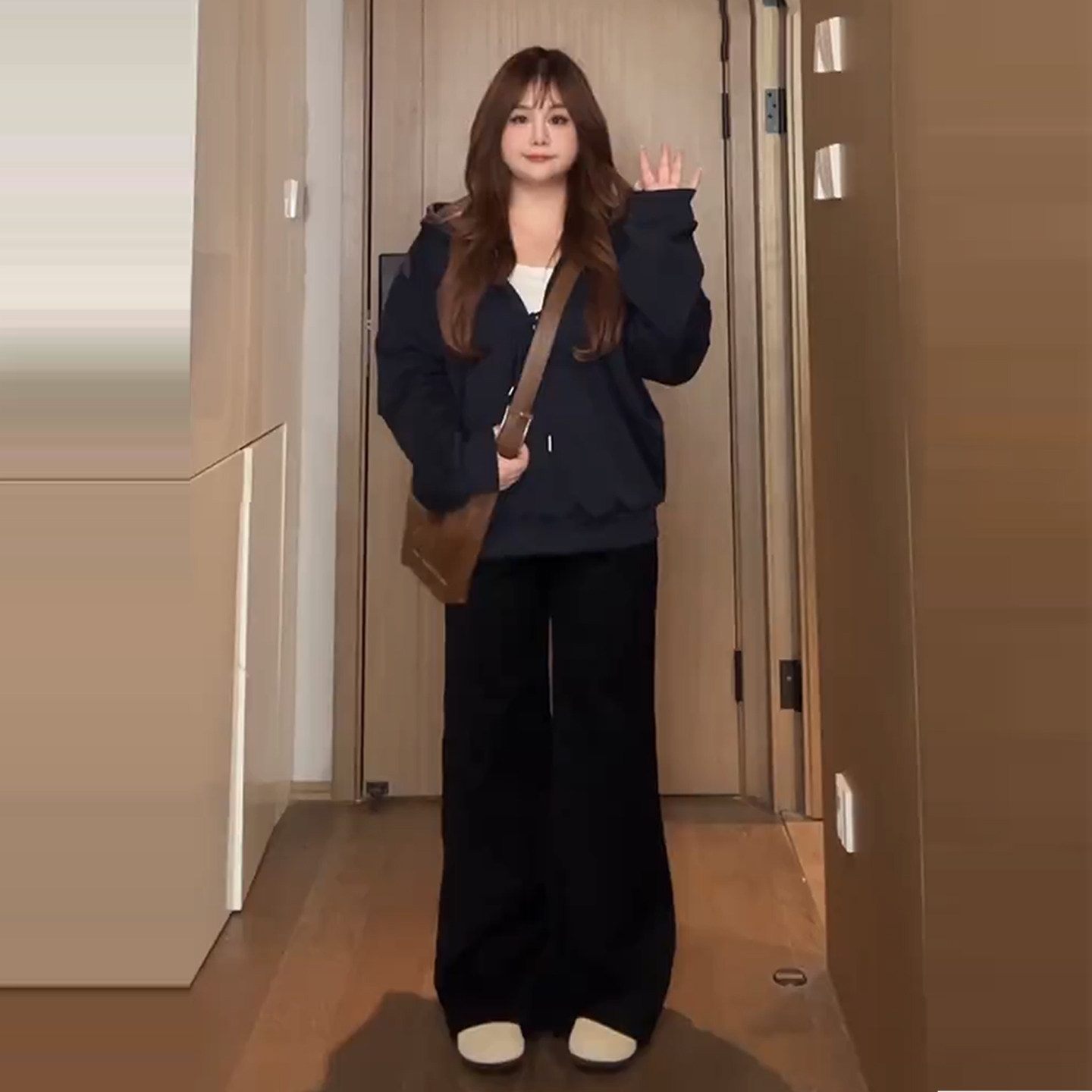Plus-Size Casual Wide-Leg Jeans for Women, Autumn and Winter, Slimming, Versatile, Flared Bootcut Pants, High-Waisted, Floor-Length Pants