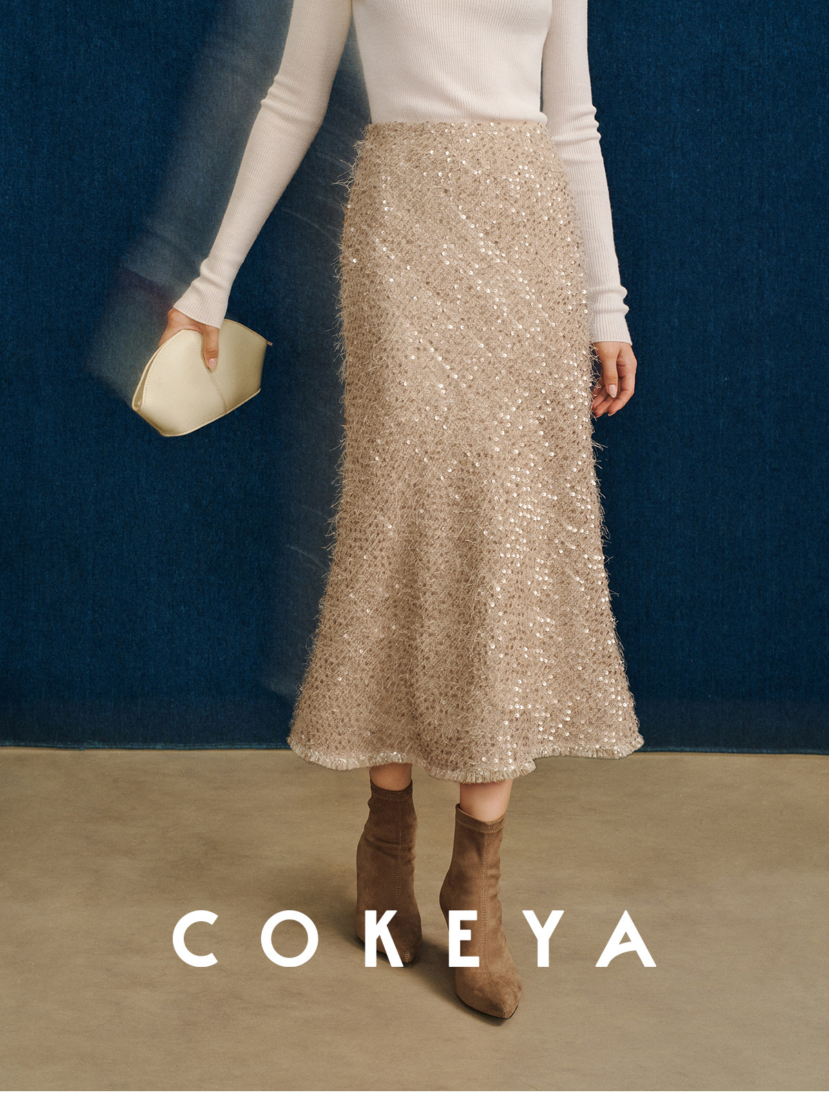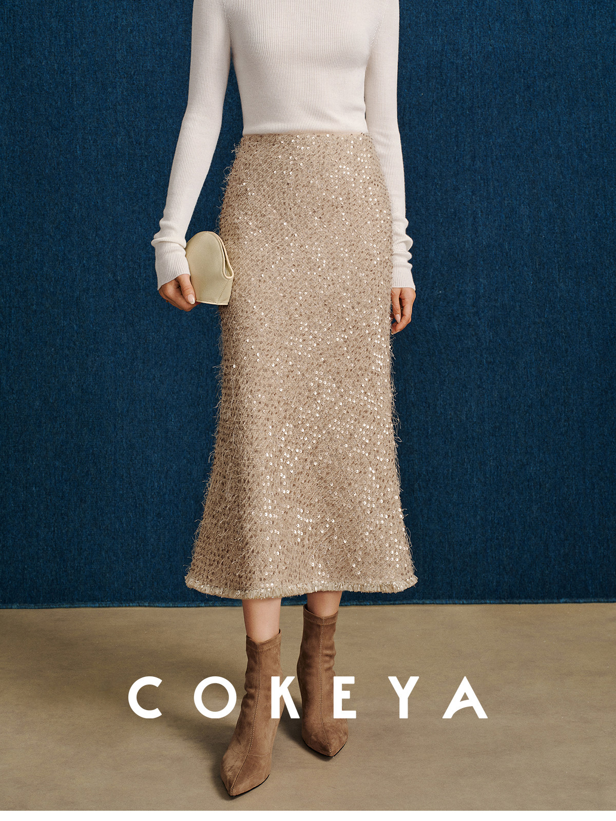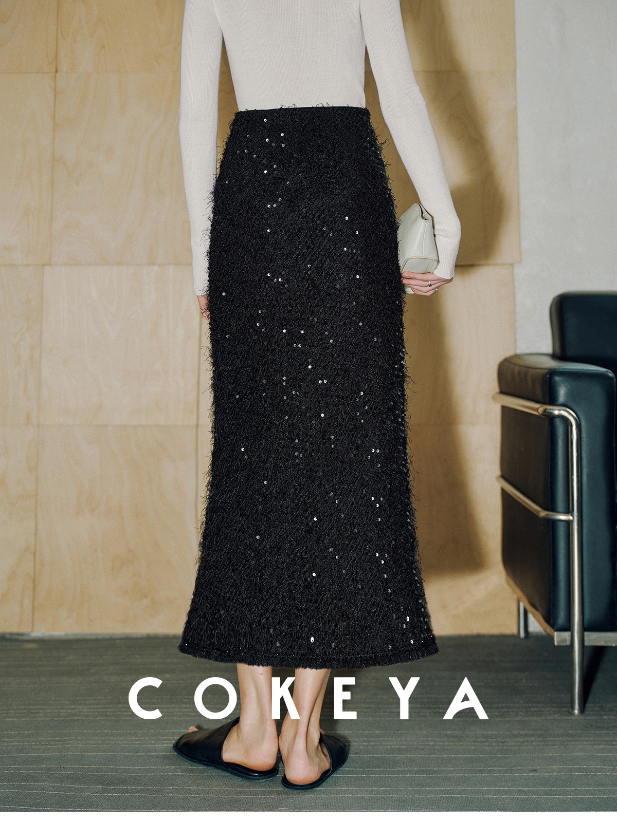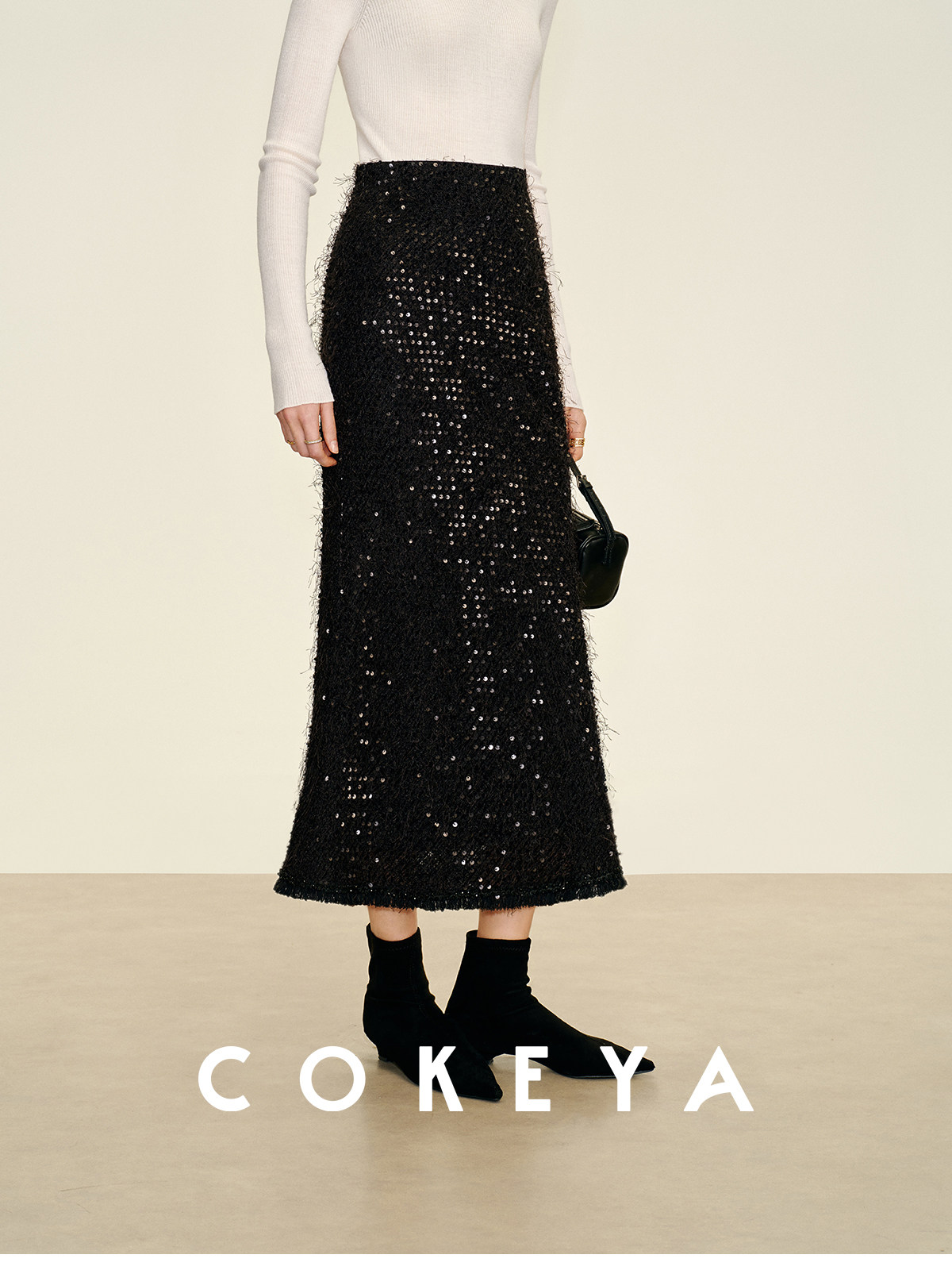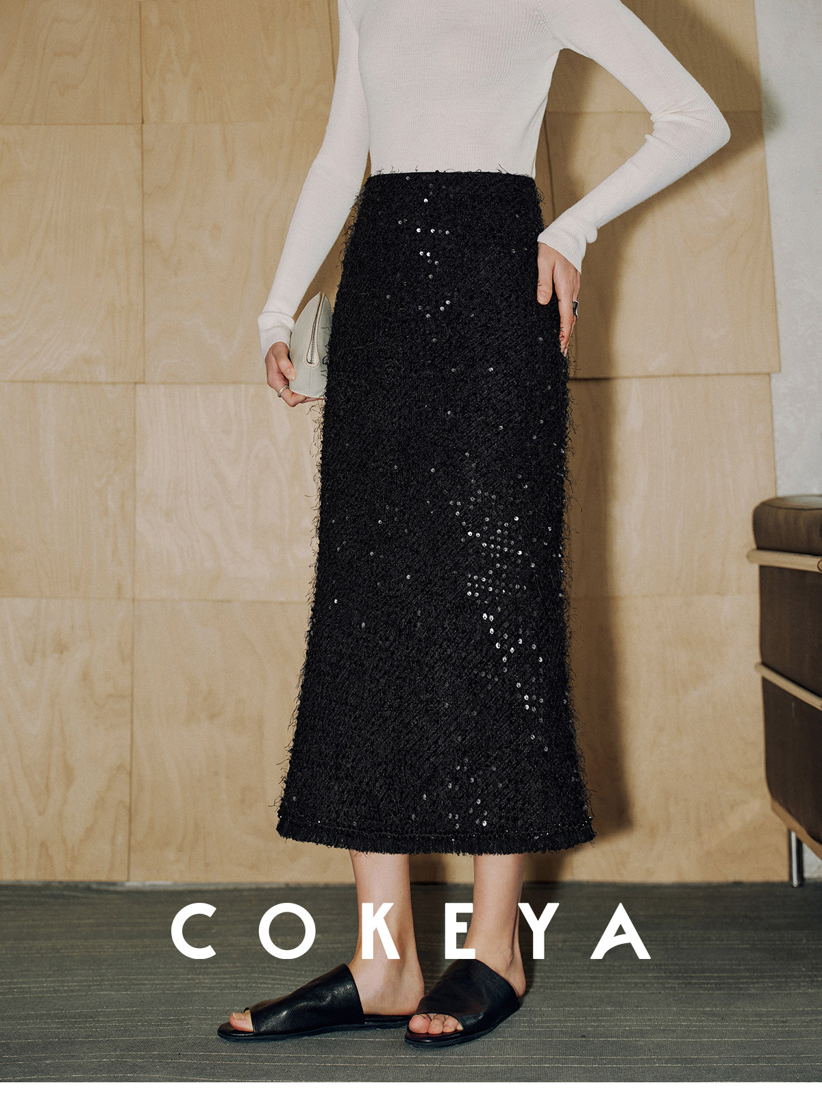 Cokeya/Night in Paris~ Sequin Tassel High-Waisted Slimming Hip-Hugging Fishtail Long and Short A-Line Skirt for Women in Spring