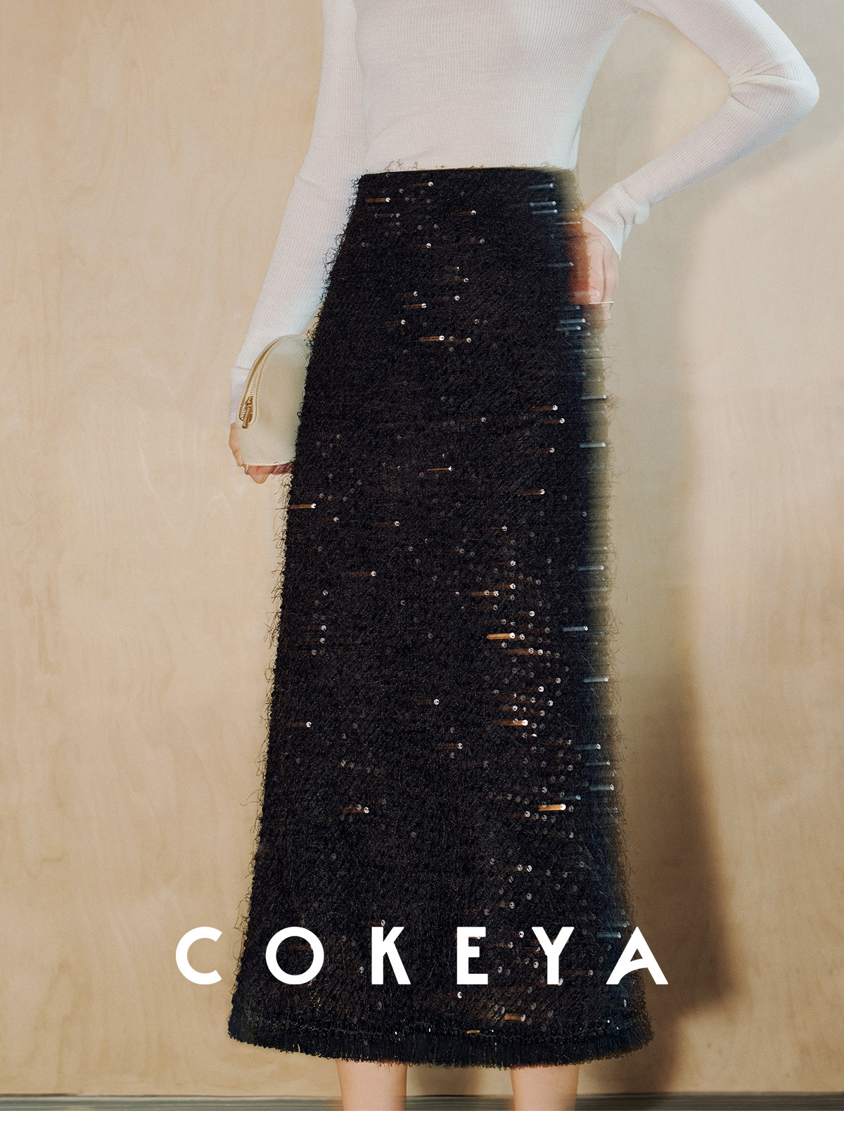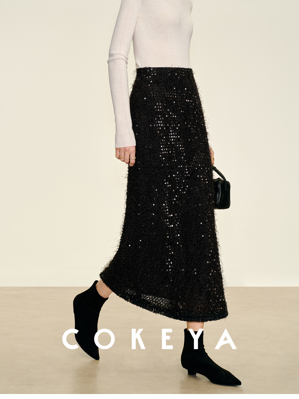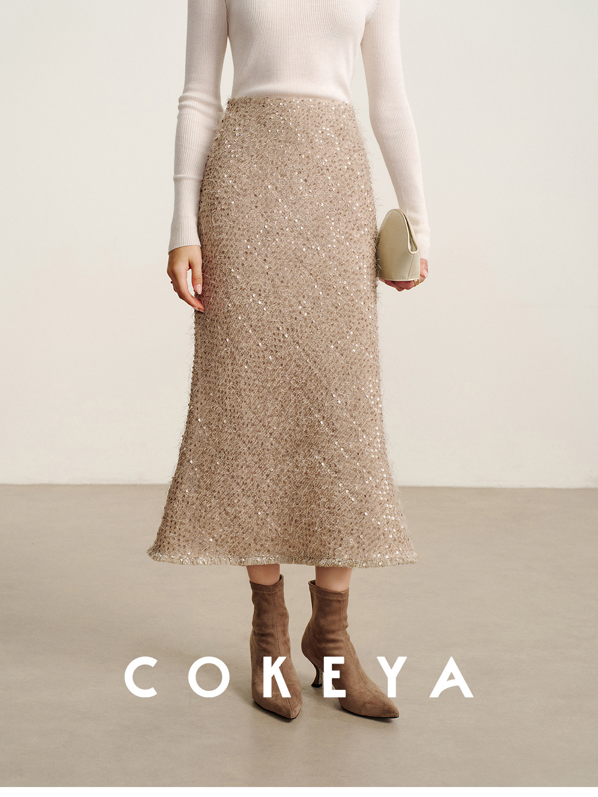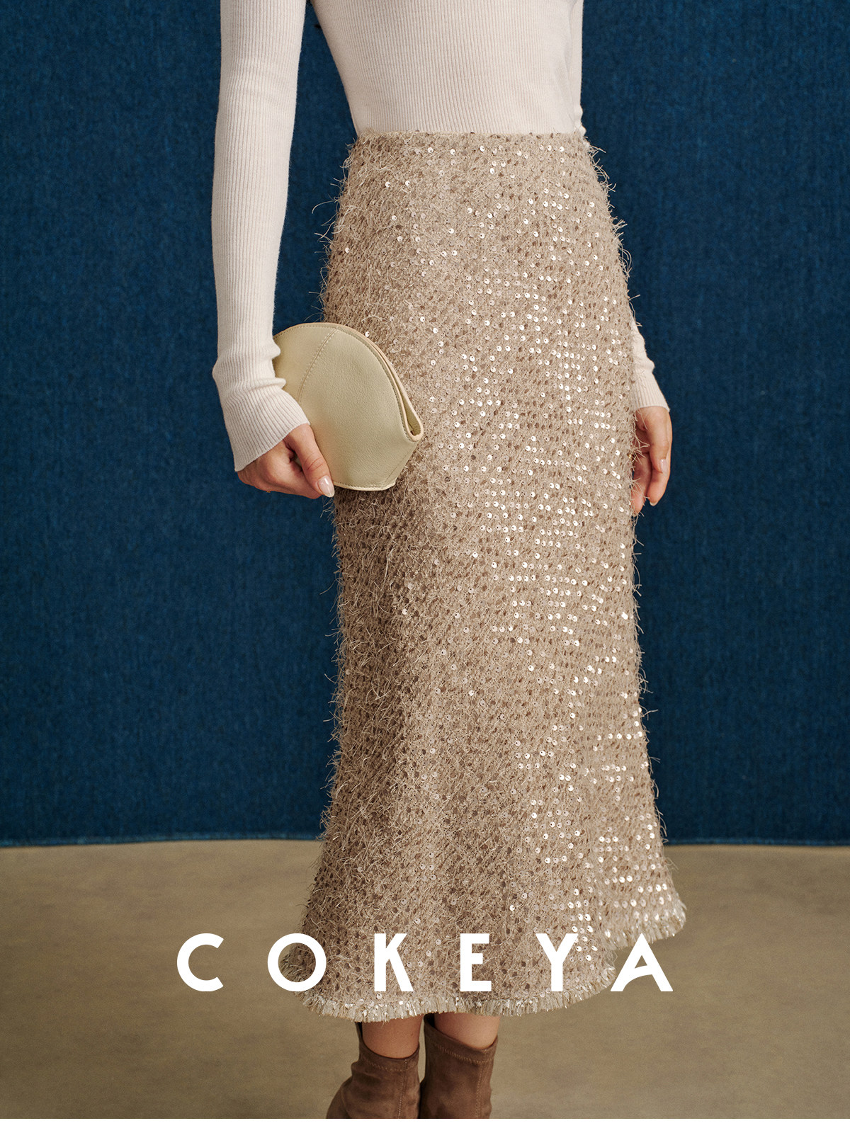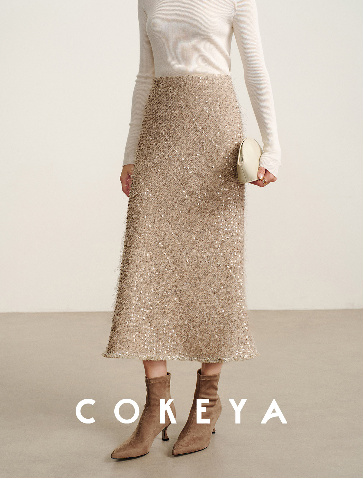 Cokeya/Night in Paris~ Sequin Tassel High-Waisted Slimming Hip-Hugging Fishtail Long and Short A-Line Skirt for Women in Spring