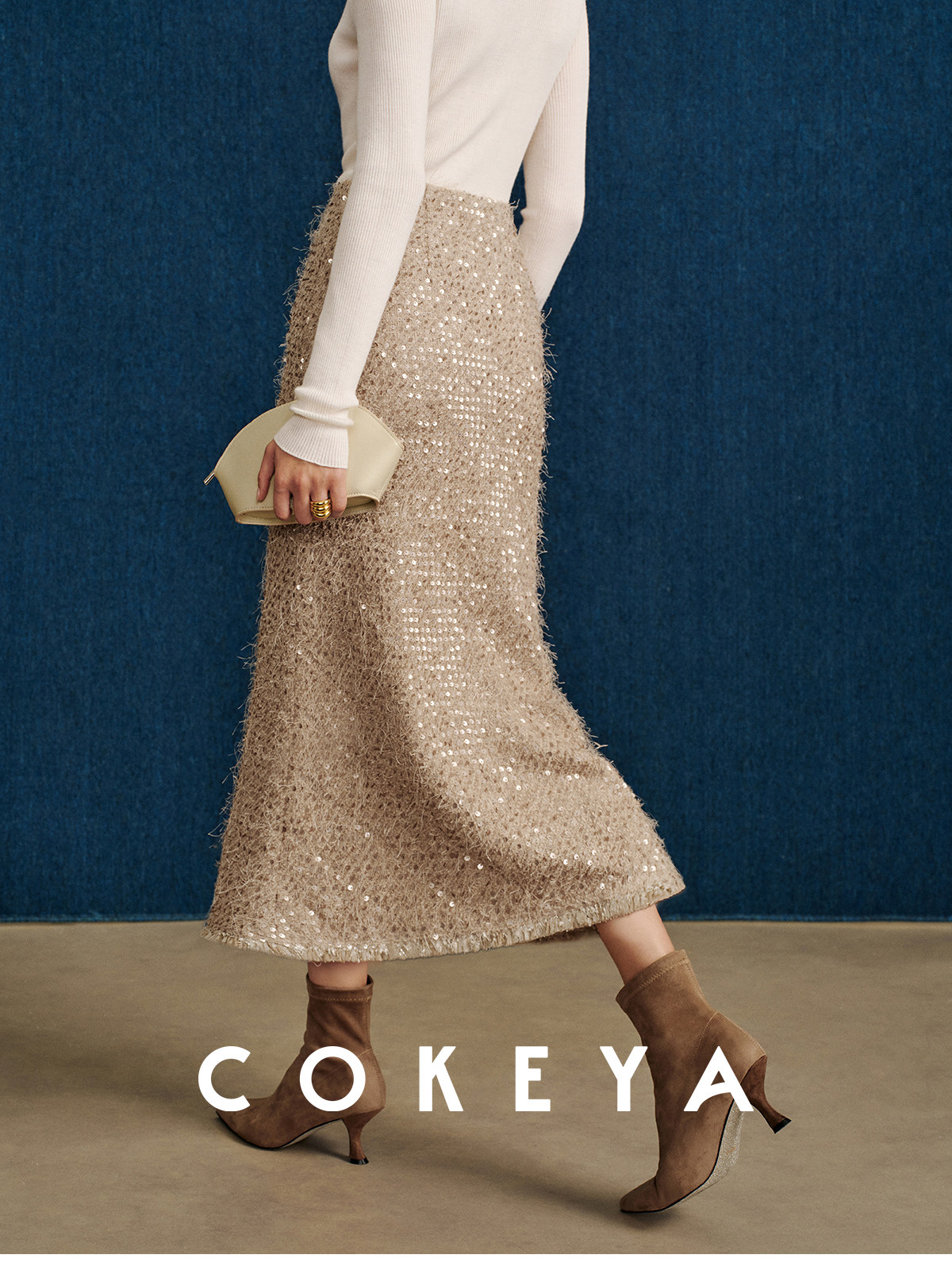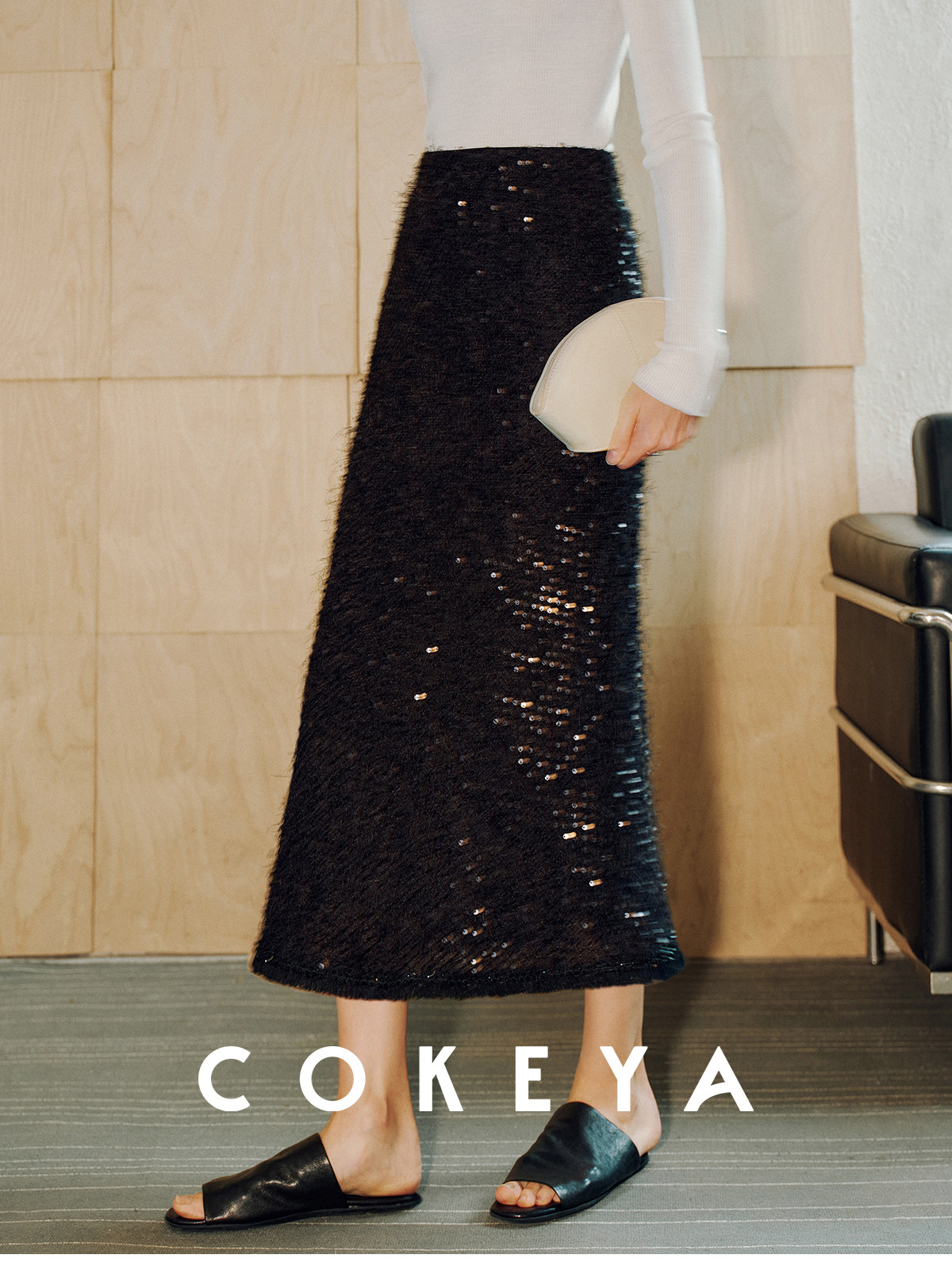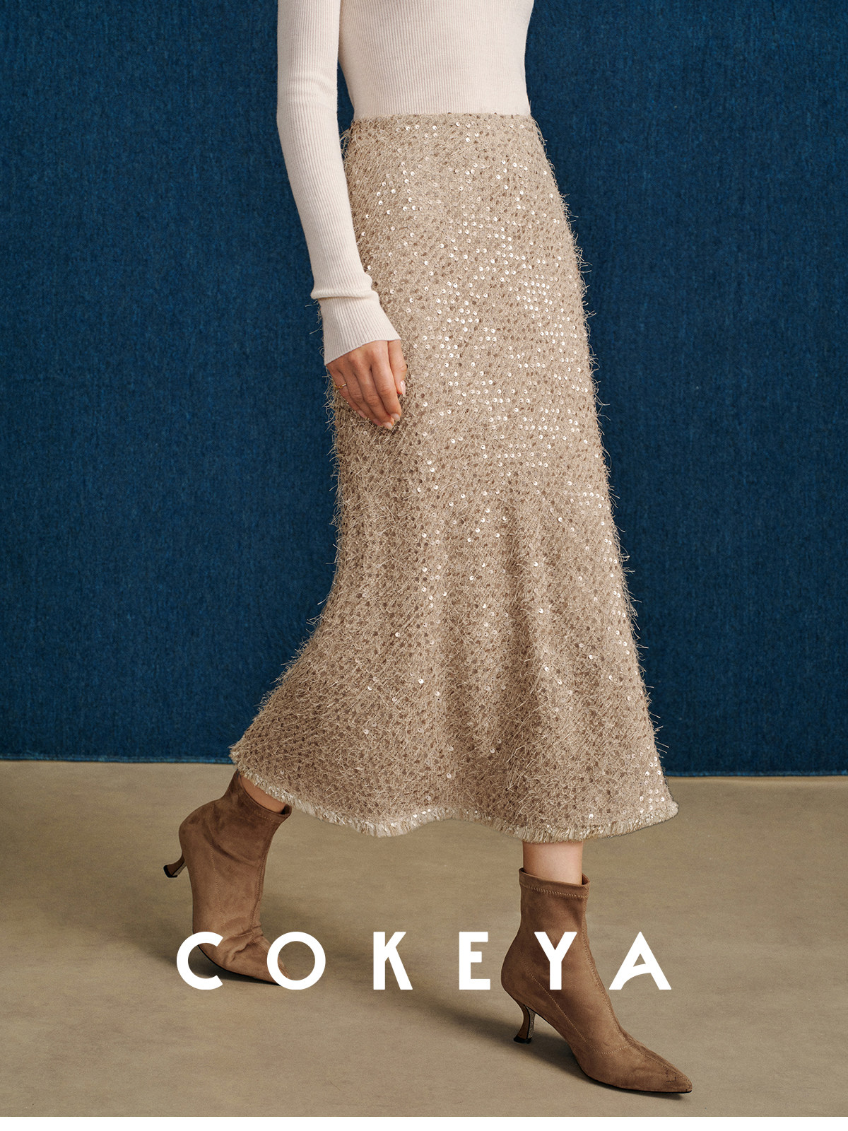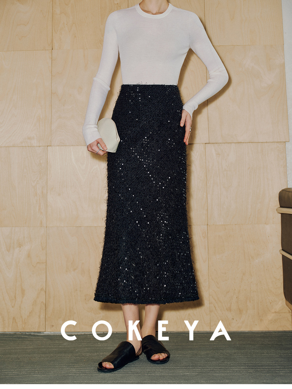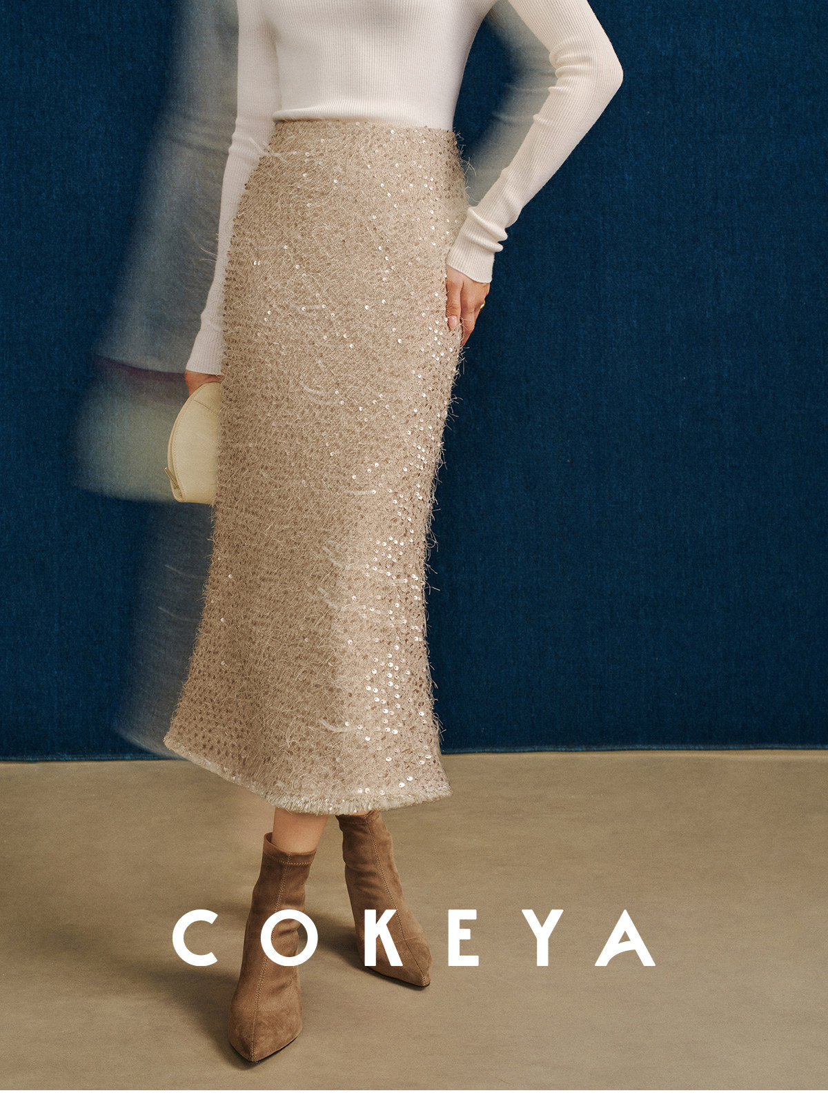 Cokeya/Night in Paris~ Sequin Tassel High-Waisted Slimming Hip-Hugging Fishtail Long and Short A-Line Skirt for Women in Spring