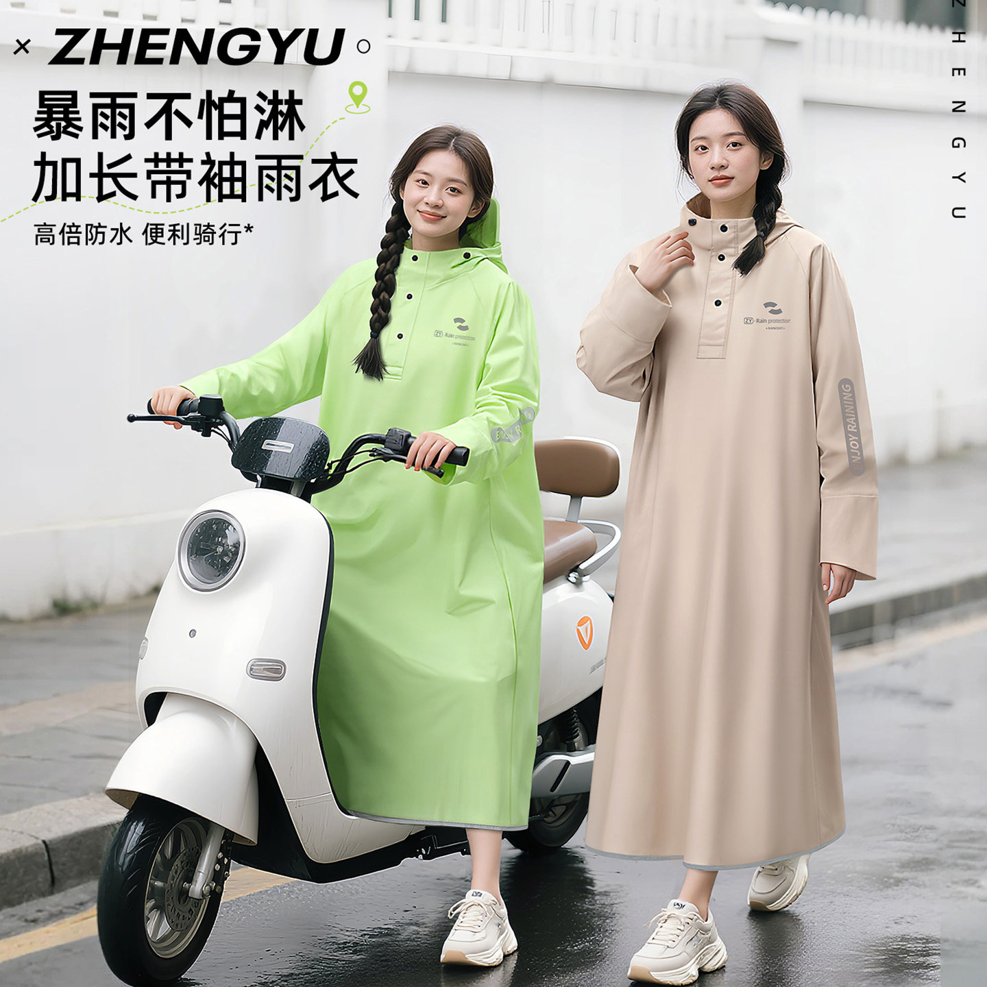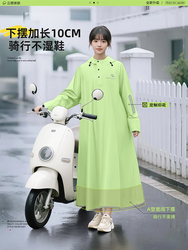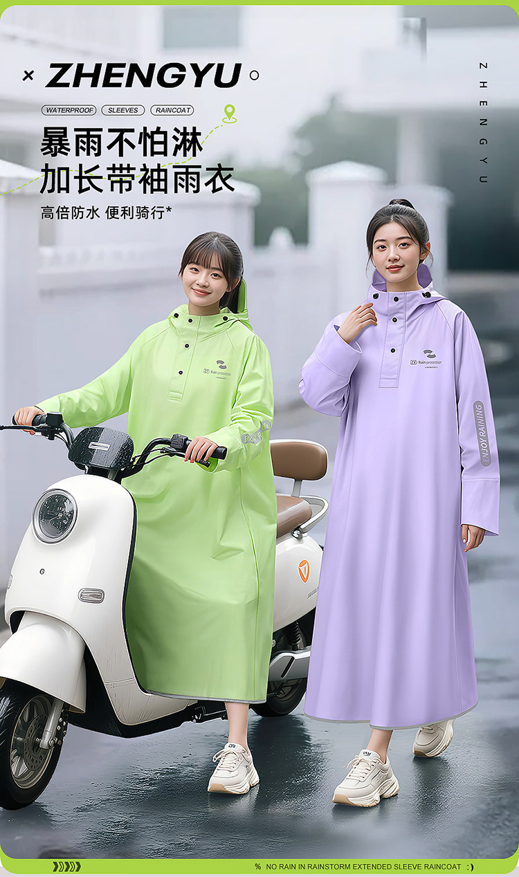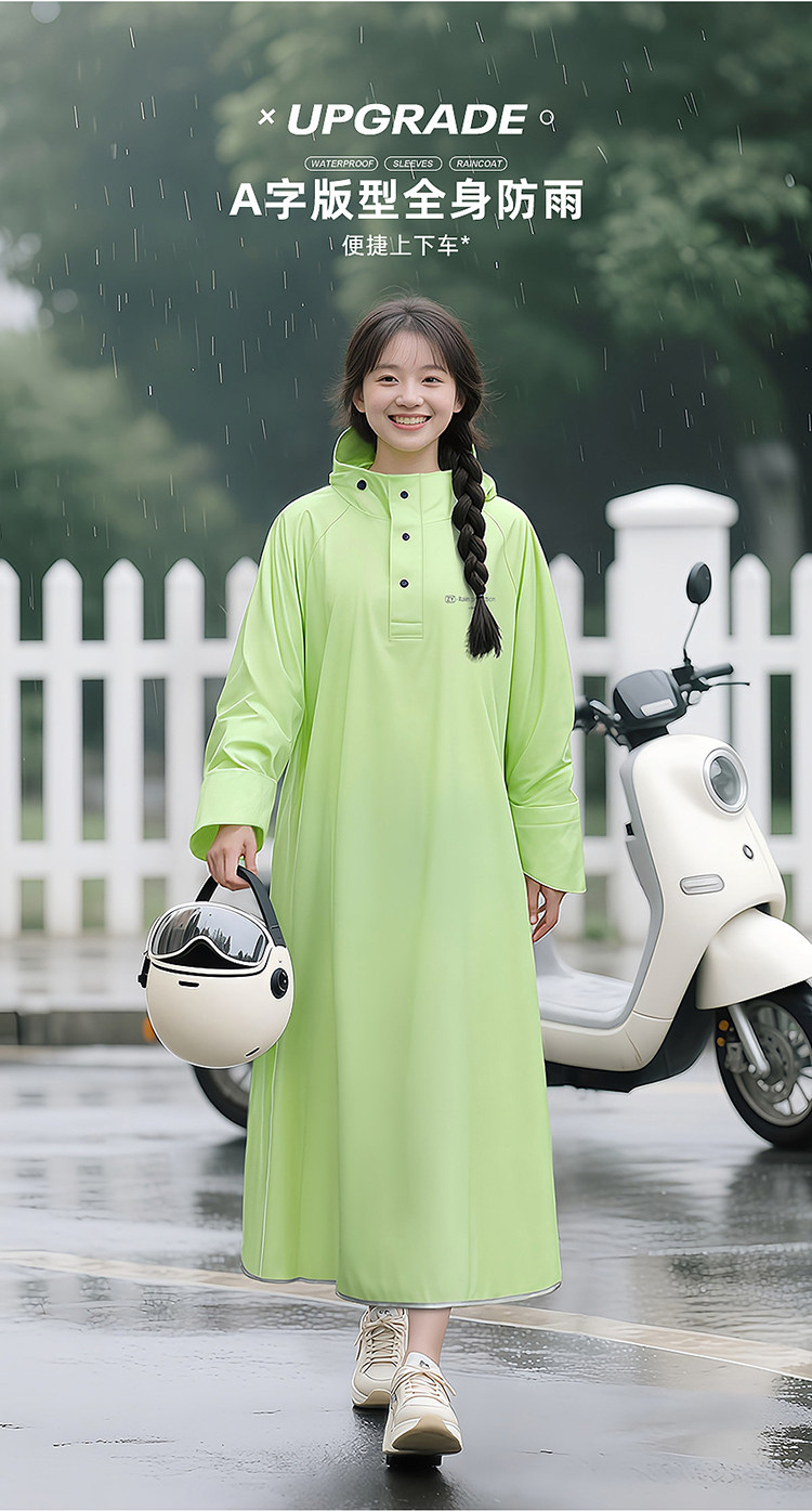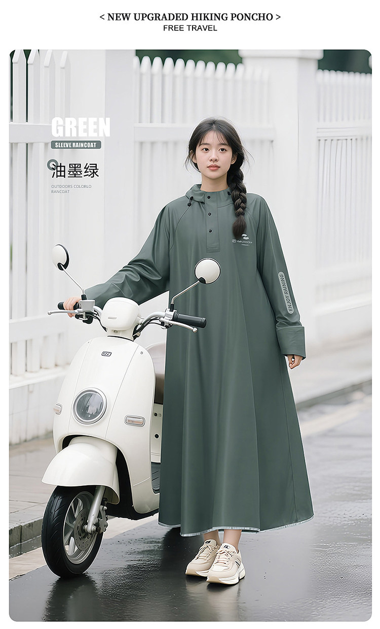 Electric Vehicle Raincoat, Single-Person, Unisex, Long Style, Full-Body Storm-Proof, Adult Size, Extra Thick, Separate Rider and Vehicle Design, Riding Rain Poncho