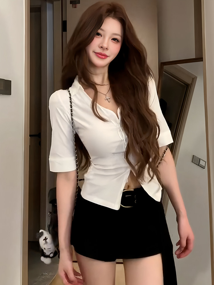 French-Style Pure Desire Polo Shirt, Mid-Sleeve T-Shirt for Women, Summer and Autumn, Waist-Cinching, Slimming, Simple, Elegant, High-End T-Shirt Top