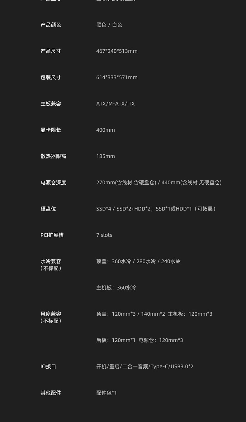 Color Classification Dalan Screen Display Version Black,Dalan Screen Display Version White,Black +Z13 Argb Fan [1 Front and 6 Reverse],Black + Z13 Argb Fan [4 Front and 6 Reverse],White+Z13 Argb Fan [1 Front and 6 Reverse],White+Z13 Argb Fan [4 Front and 6 Reverse],Black + Starry Ev850W Platinum Power Supply,White + Starry Ev850W Platinum Power Supply,Black + Starry Ev1000W Platinum Power Supply,White + Starry Ev1000W Platinum Power Supply,Black + 7 Z13 Fans + Sx360 Water Cooling,White + 7 Z13 Fans + Sx360 Water Cooling,Black + 7 Z13 Fans + R360 Water Cooling,White + 7 Z13 Fans + R360 Water Cooling,Black + Star Cube 360 ​​Water Cooling,White + Star Cube 360 ​​Water Cooling