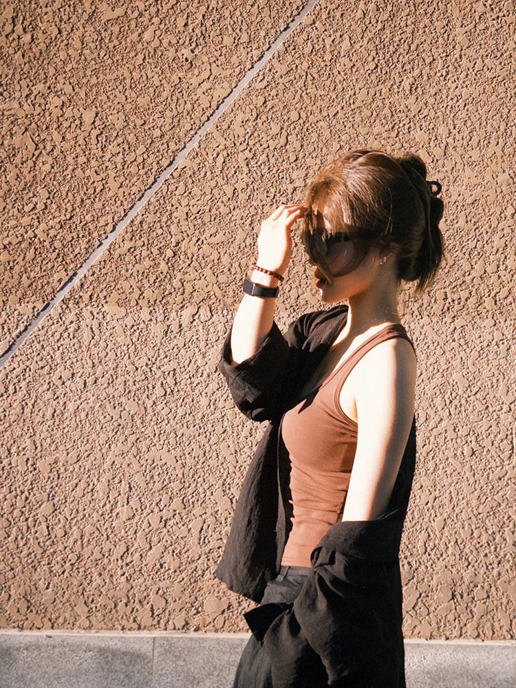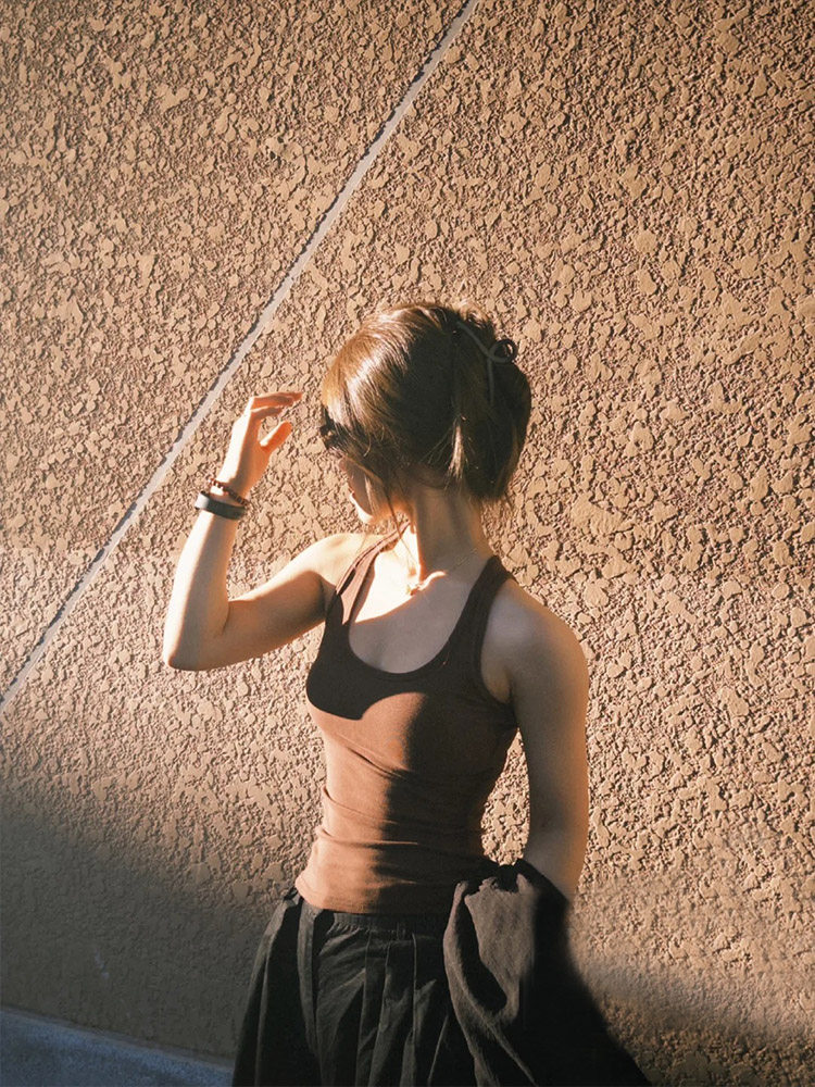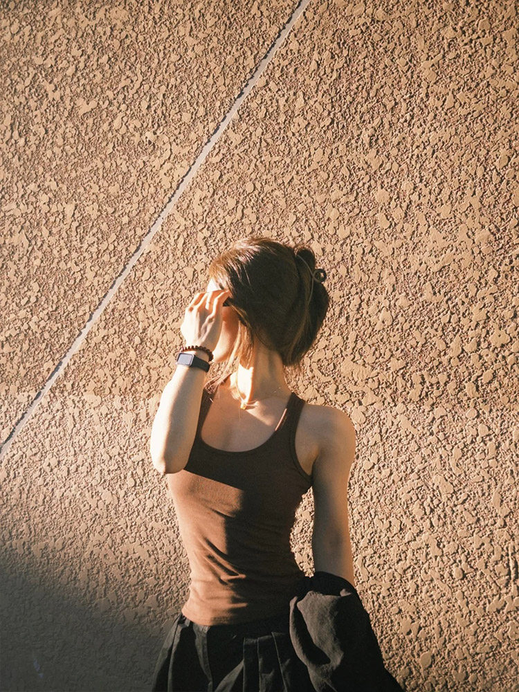 American Street Style Sleeveless Top for Women, Early Autumn Design, Stylish Outerwear, Sporty Coffee Color, Inner Wear U-Neck Tank Top