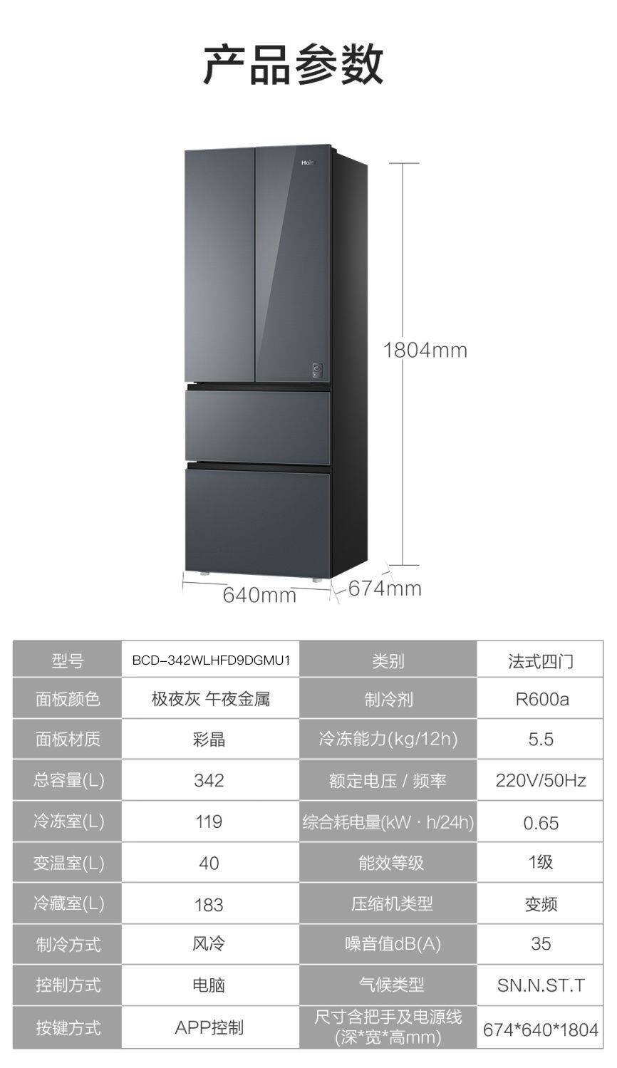 Haier Refrigerator 342L French-Style Multi-Door Household First-Class Dual-Inverter Frost-Free Bcd-342Wlhfd9Dgmu1
