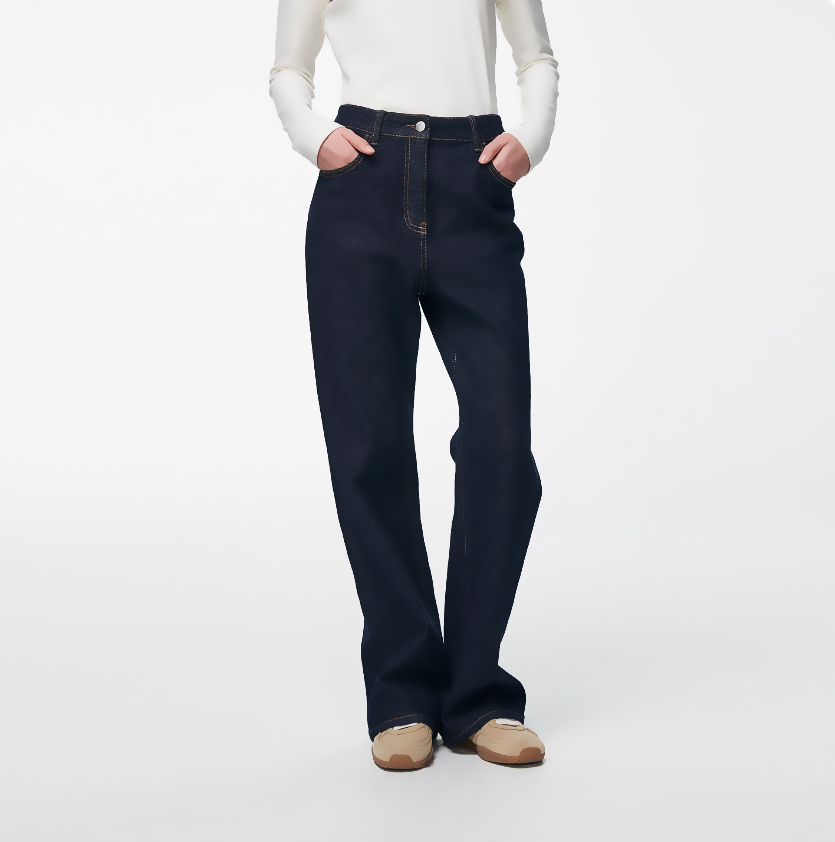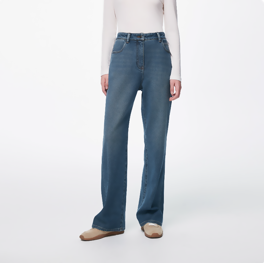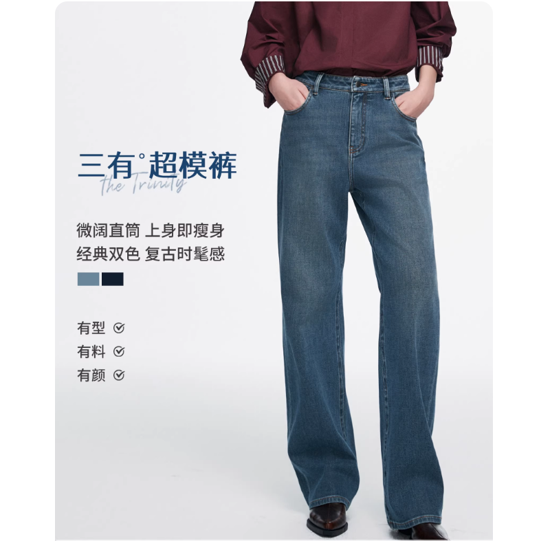 [San You Supermodel Pants]Heavyweight Washed Classic Blue Straight-Leg Jeans for Women, Autumn/Winter 2025, Stretch Slimming Long Pants