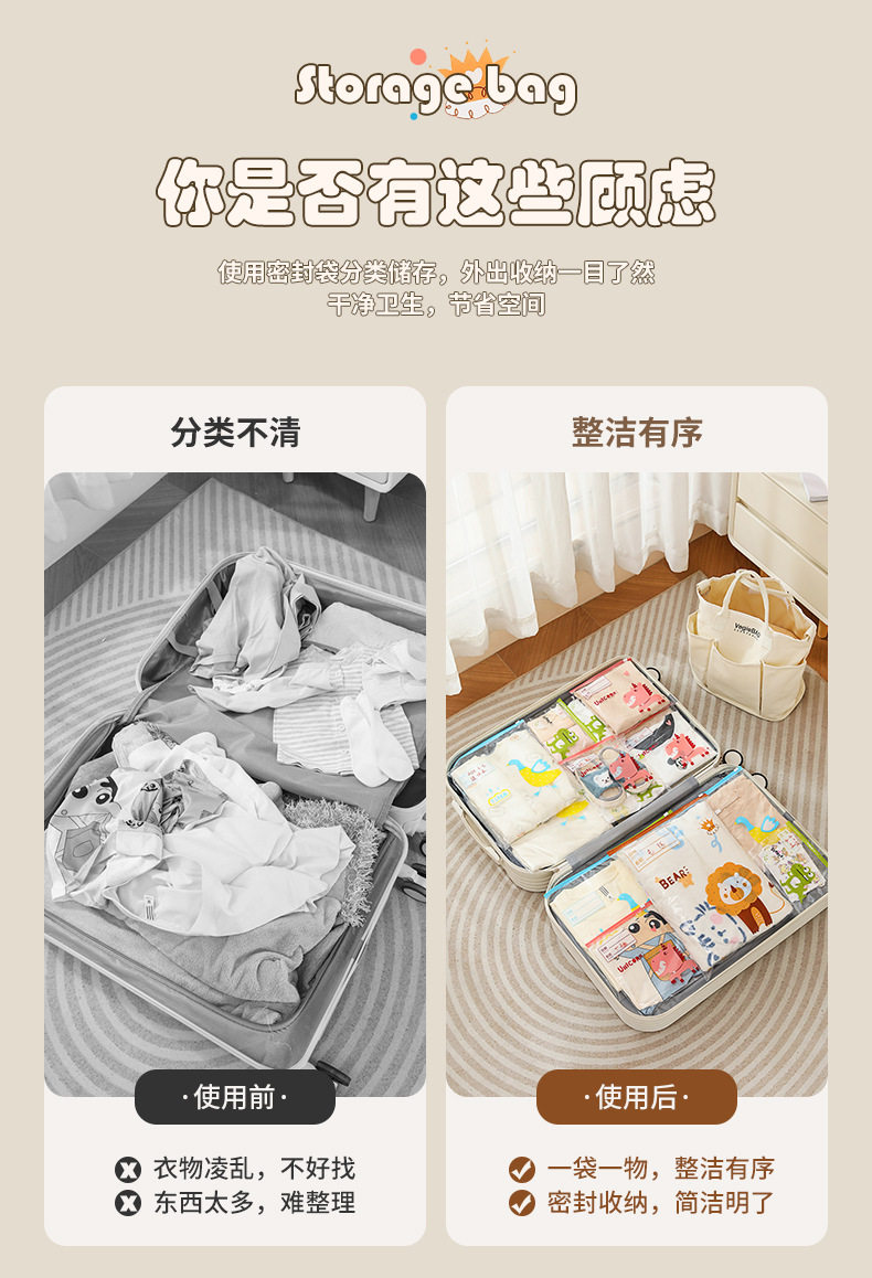 Kindergarten Clothing Storage Bag, Kidsren's Clothing Sealing Bag, Baby's Preparation for Kindergarten Supplies, Waterproof Packaging Bag