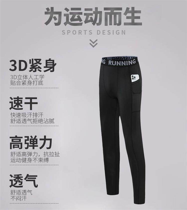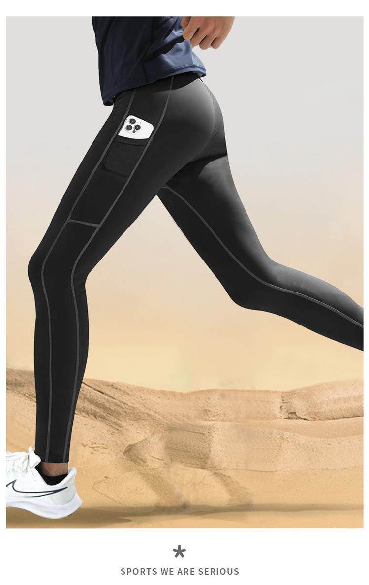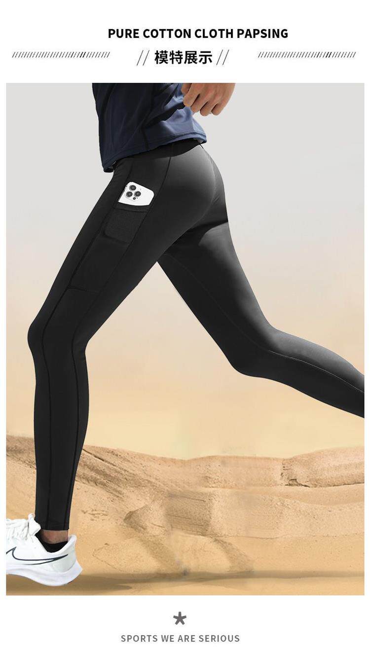 Marathon Professional Running Compression Pants for Men, Quick-Drying Tight-Fitting Sports Pants, Autumn and Winter High-Elastic Training Pants That Can Hold a Phone