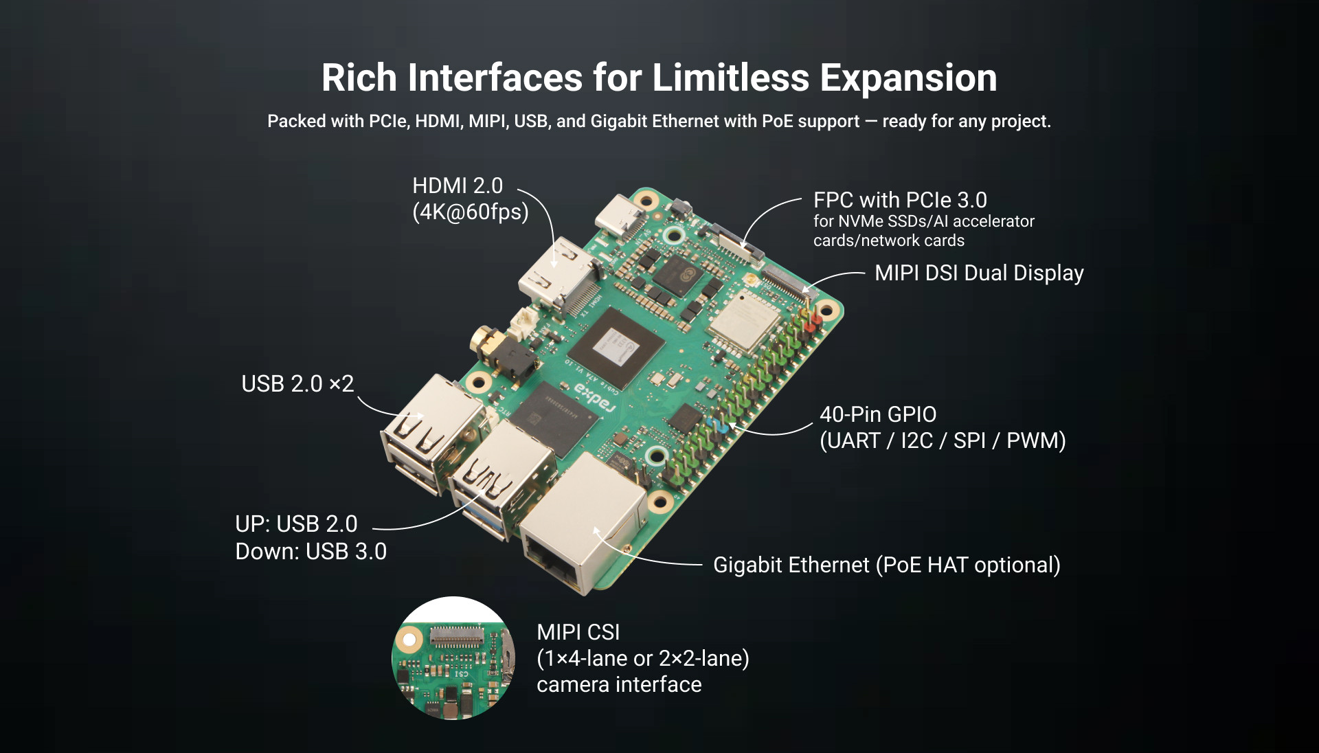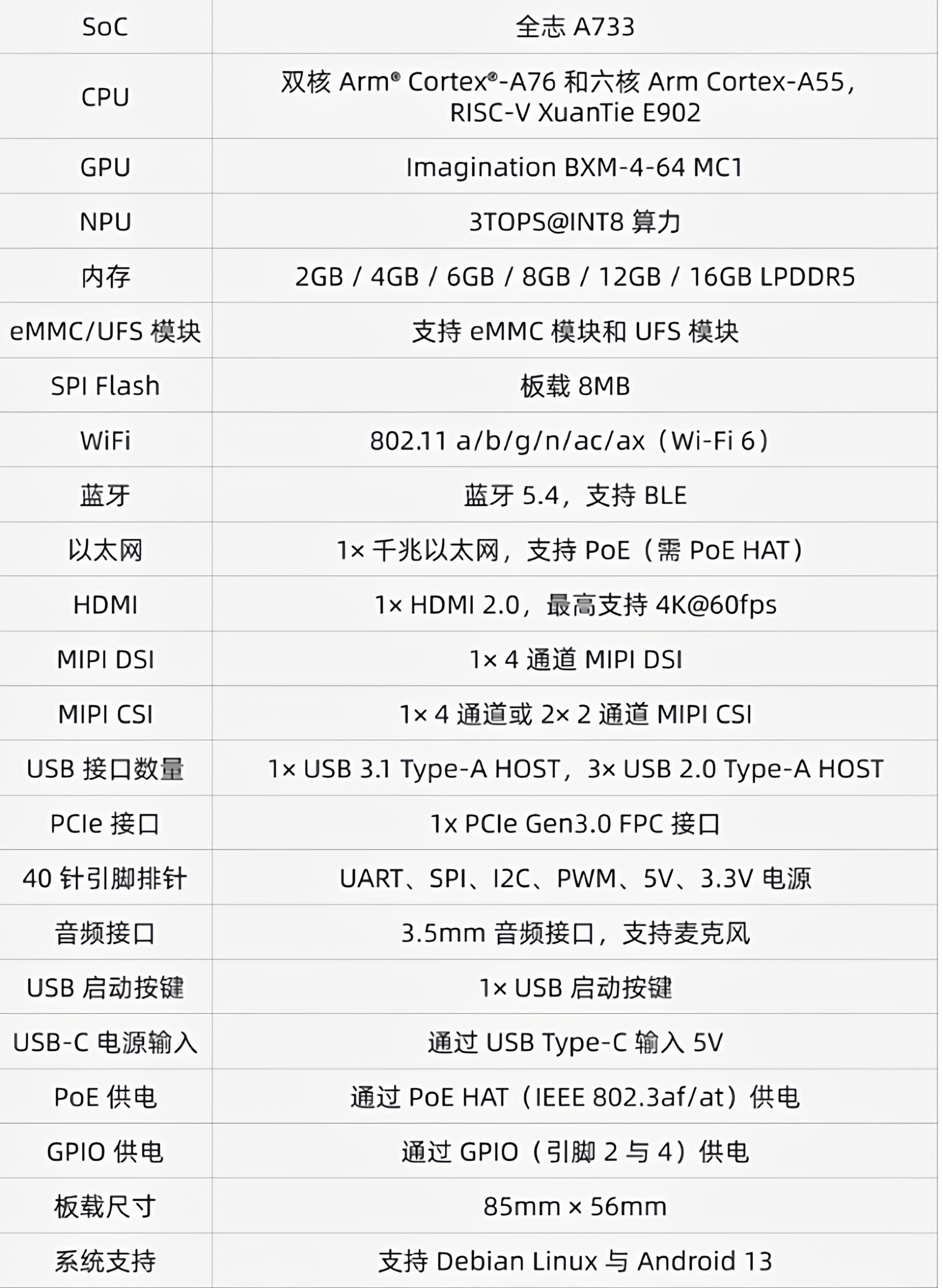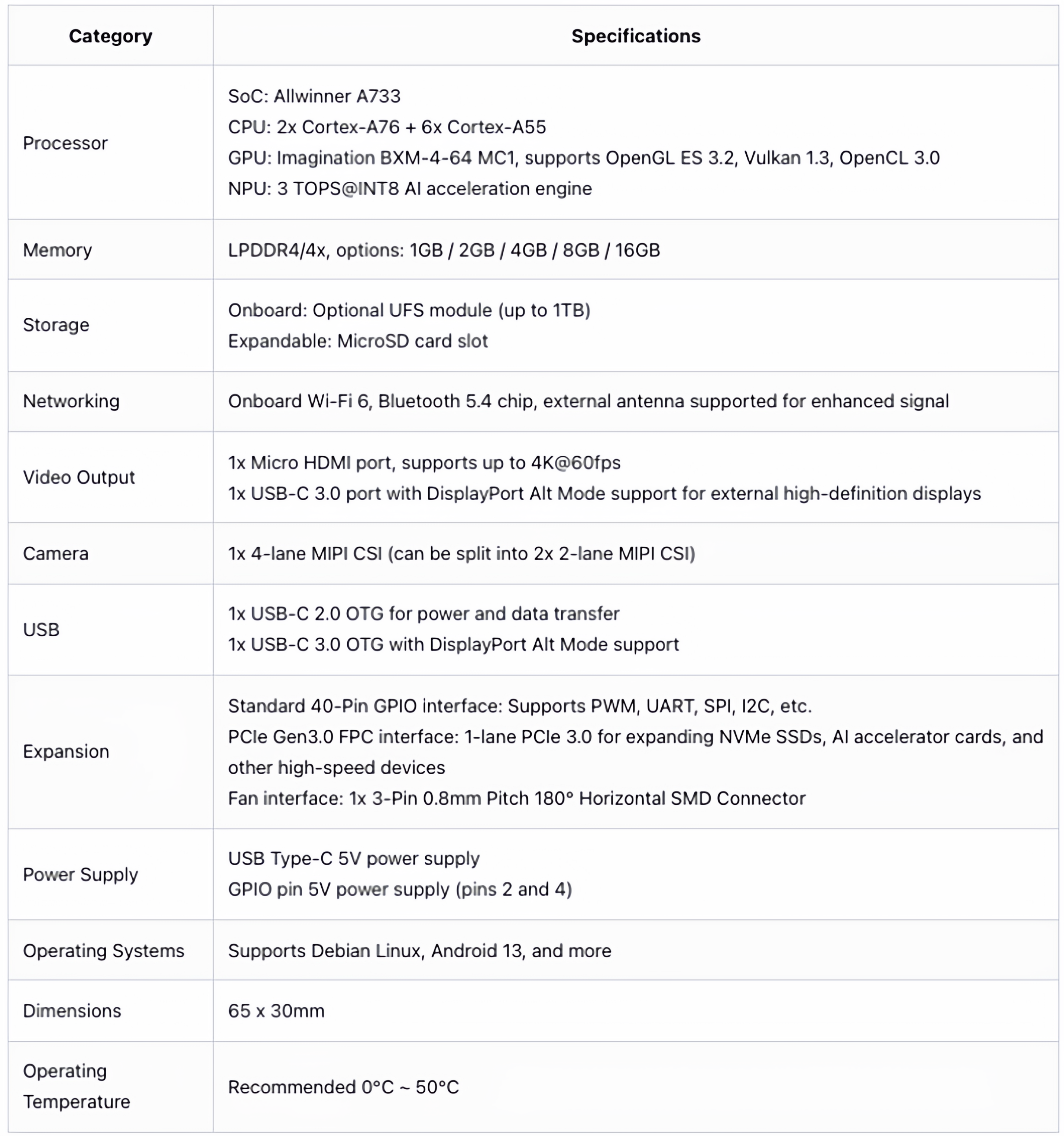 Radxa Cubie A7A Development Board Ruisa Allwinner Octa-Core Soc 3Tops Ai Acceleration Risc-V