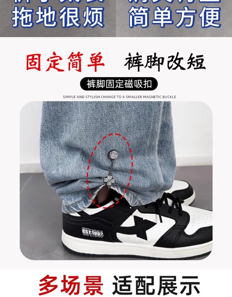 Magnetic Buckle for Shortening Pants Without Sewing, Fixing the Hem of Jeans to Prevent Them from Dragging on the Floor