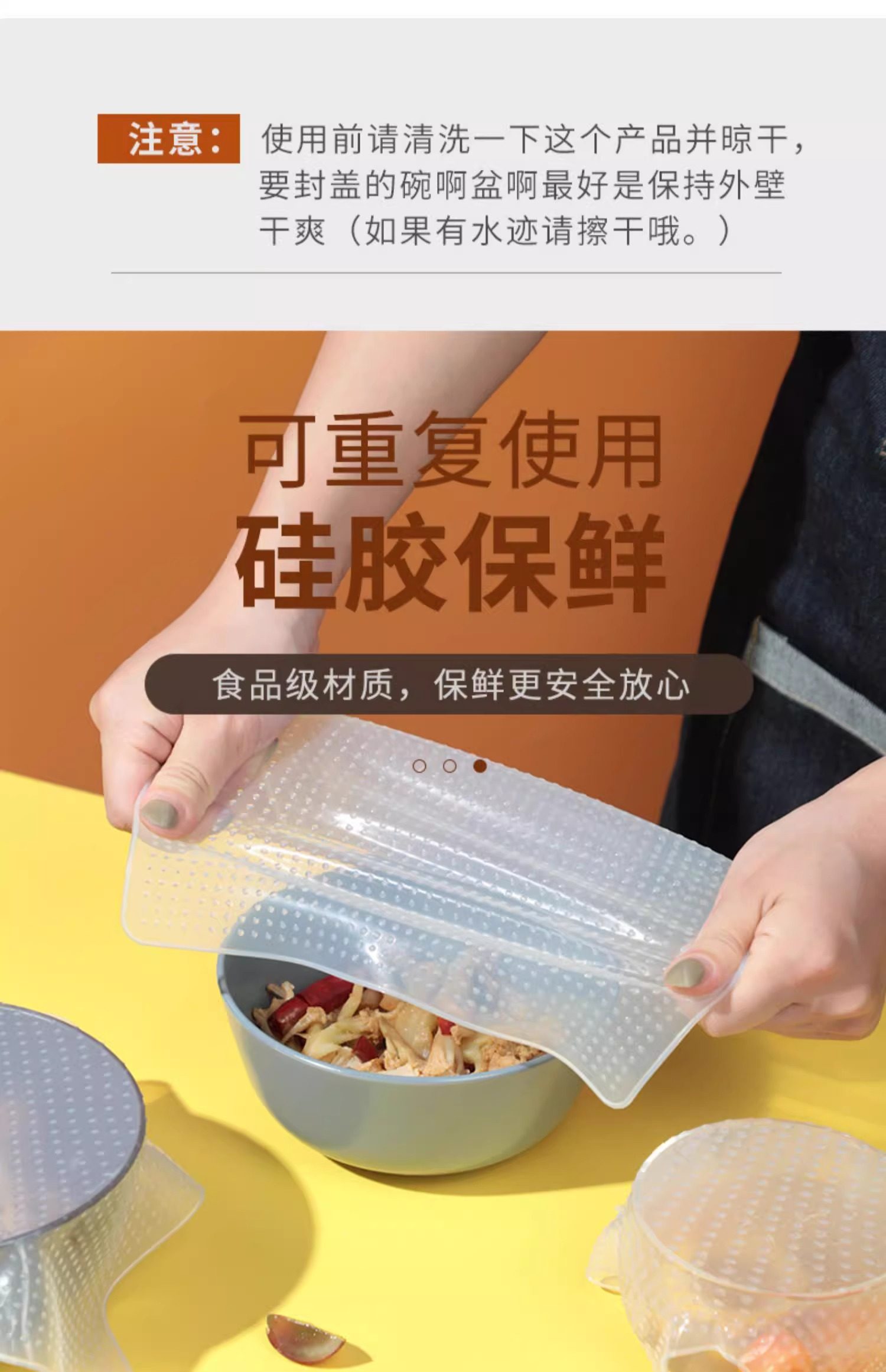 New A1820 Food-Grade Silicone Cling Film, Reusable Sealing Cling Film 0.035 Storage