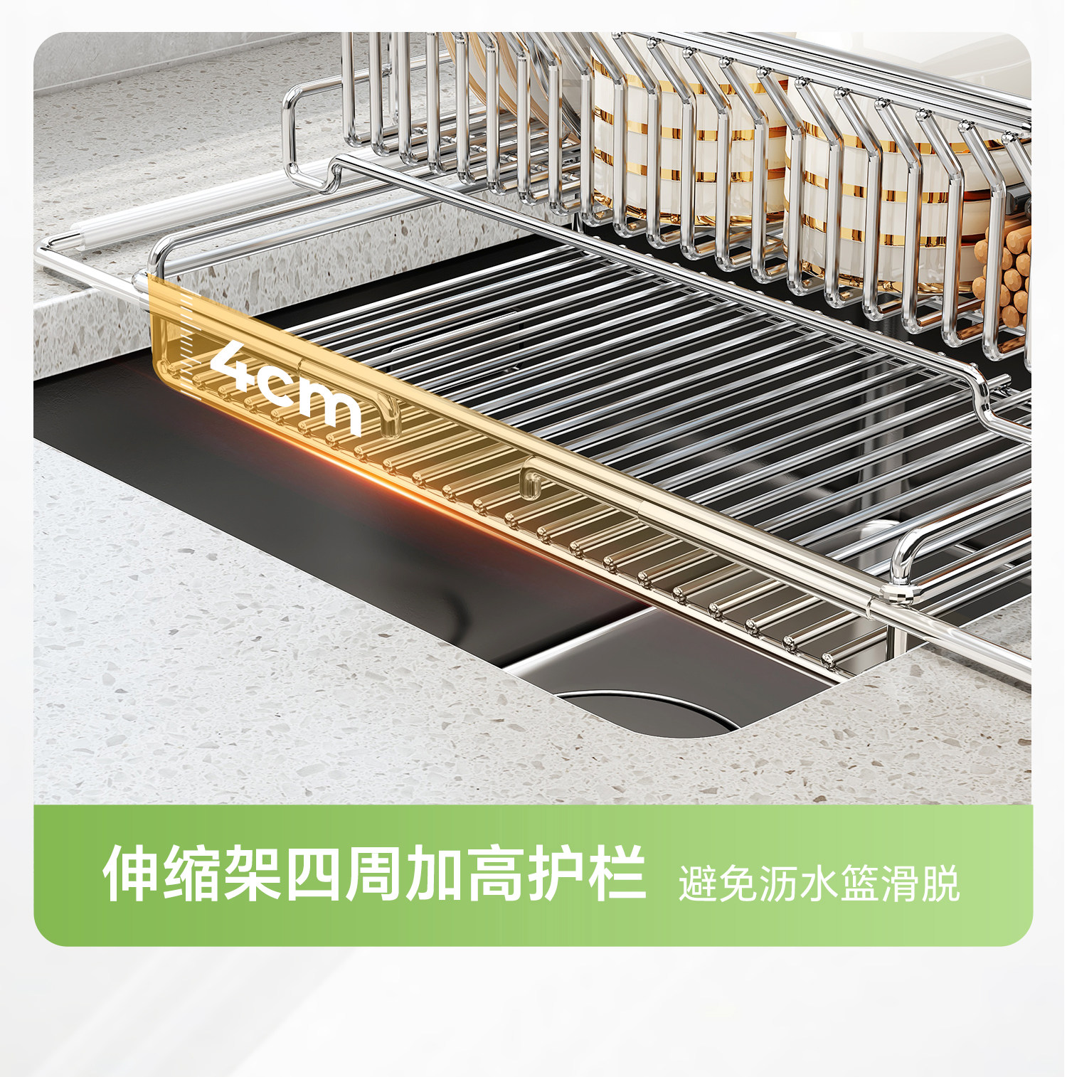 Swiss Joico 304 Stainless Steel Kitchen Drain Rack, Retractable Sink Dishwashing Basin, Multi-Functional Dish Storage Rack