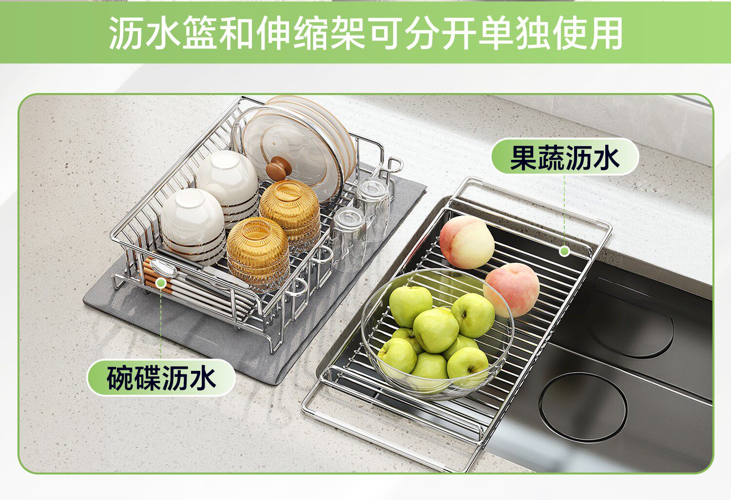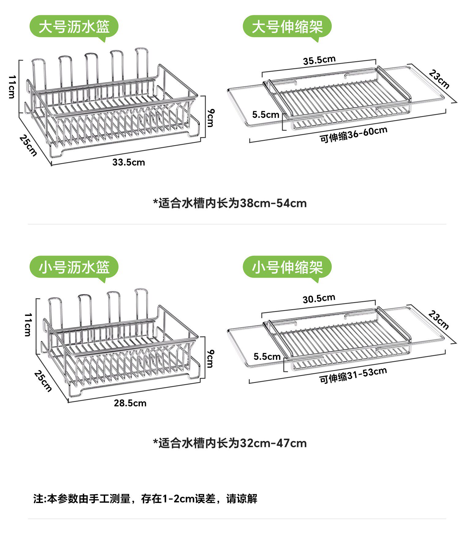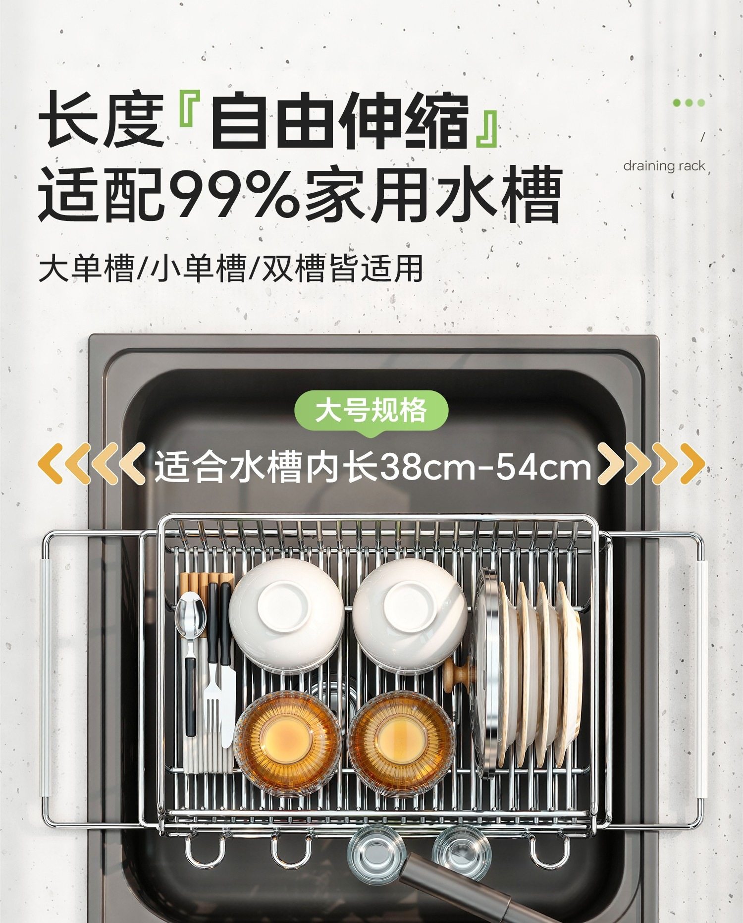 Color Classification Large Size[Multifunctional Drain Basket + Telescopic Rack]Thickened 304 Stainless Steel⭐(Applicable to Sink Length 38~54cm),Small Size[Multifunctional Drain Basket + Telescopic Rack]Thickened 304 Stainless Steel⭐(Applicable to Sink Length 32~47cm),[Multifunctional Drain Basket + Telescopic Rack]