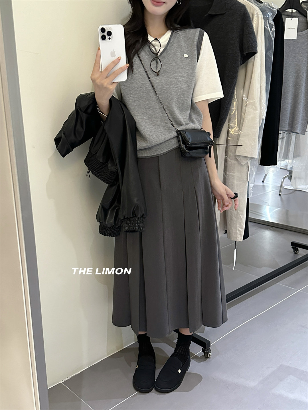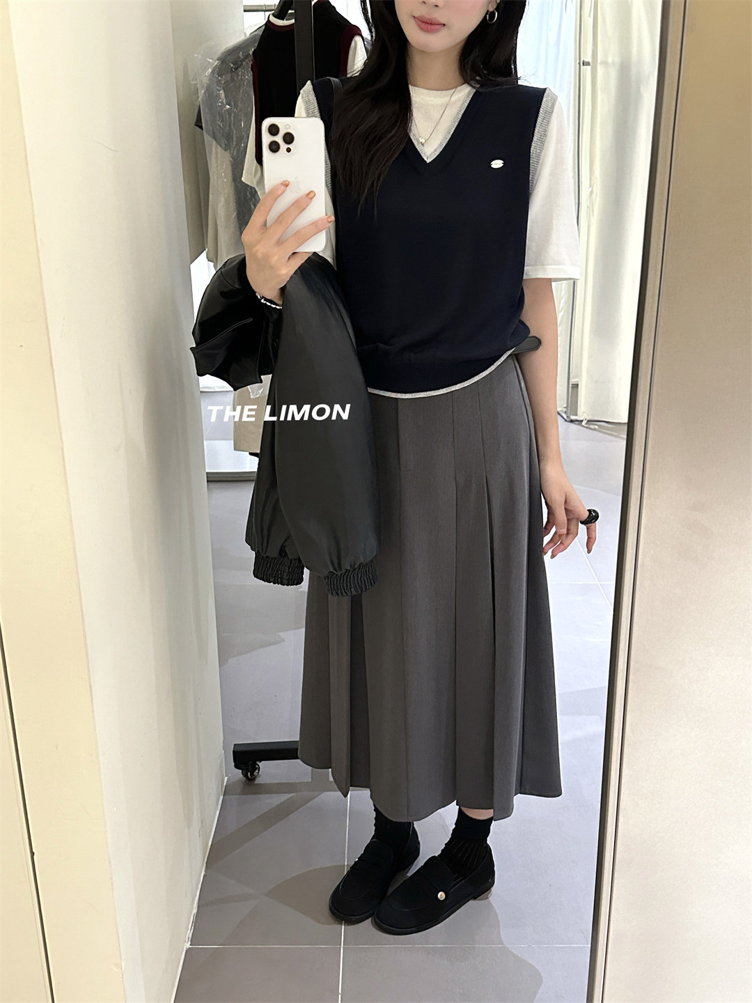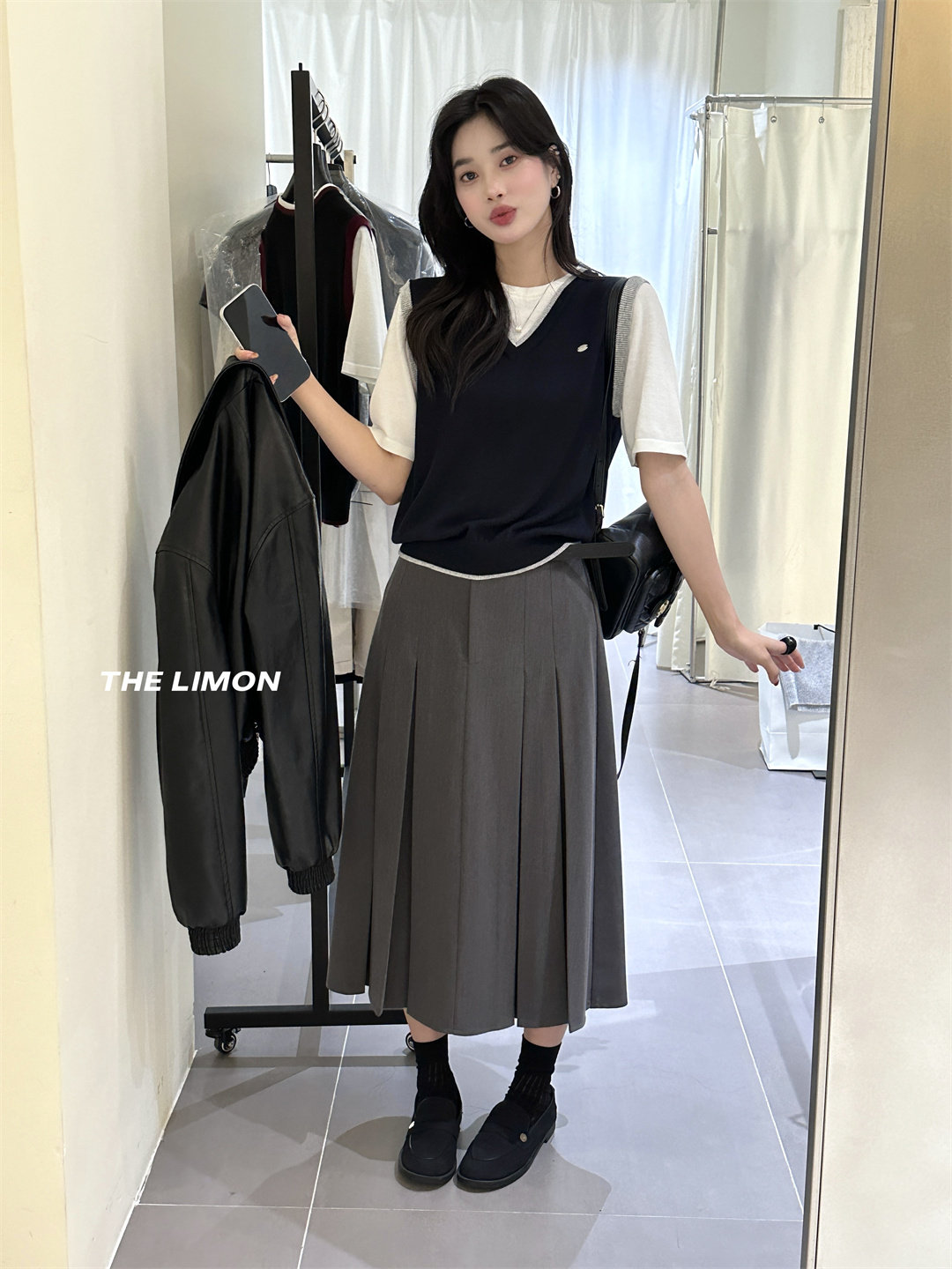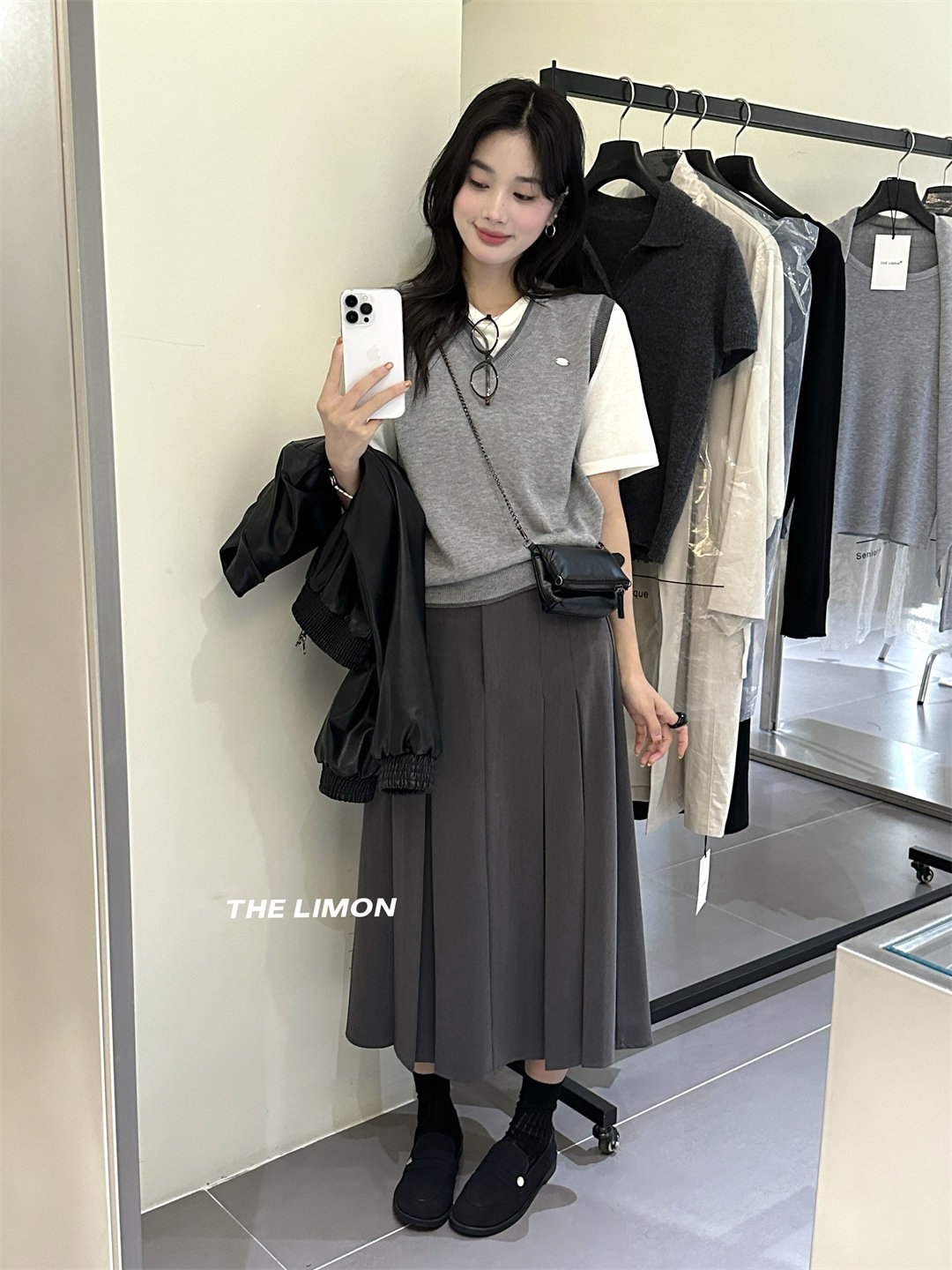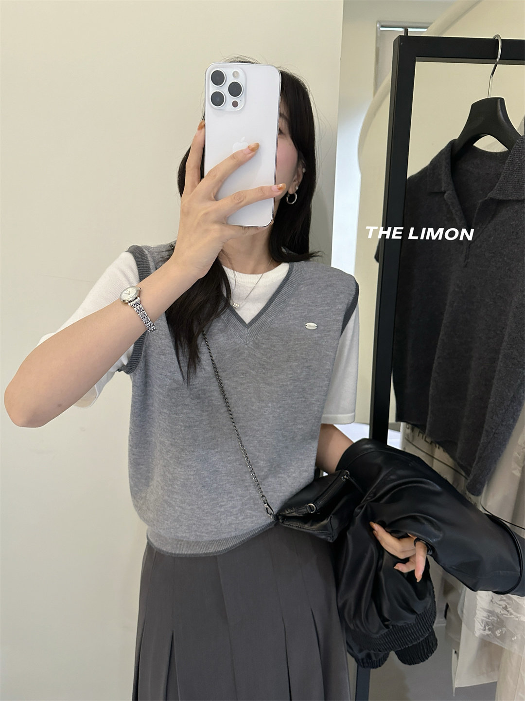 Designed with Contrasting Colors, a Fake Two-Piece Knitted Vest with Short-Sleeved T-Shirt for Women, Suitable for Spring and Autumn, as an Inner Layer or Base Layer, with a Preppy Style