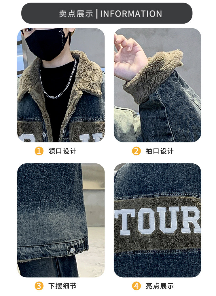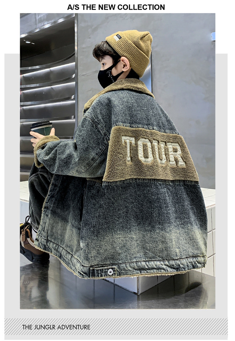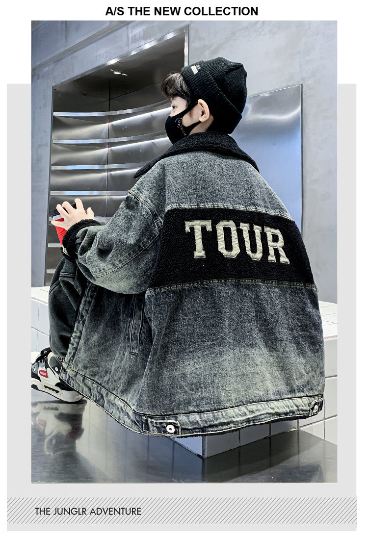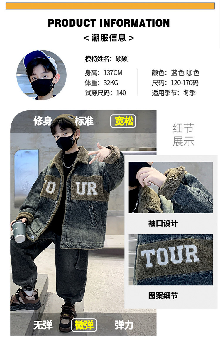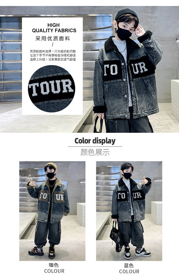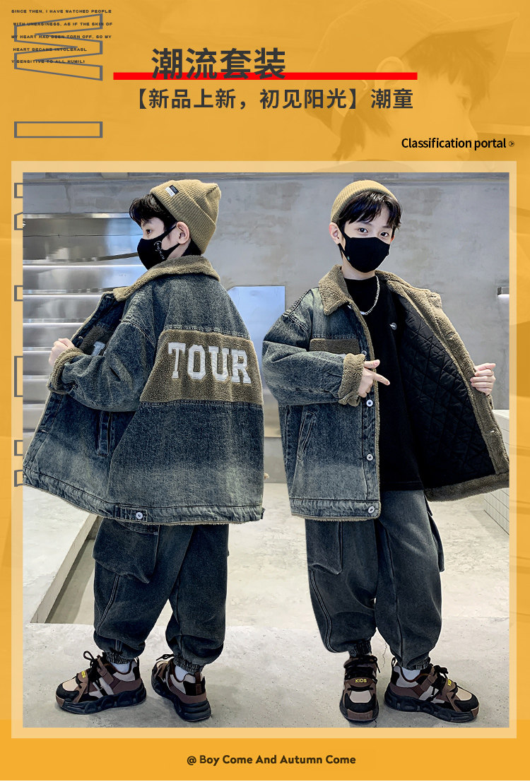 Boys' Winter Clothing Set 2025 New Style Boys' Padded Thickened Denim Jacket for Older Children Autumn and Winter Children's Clothing Trendy