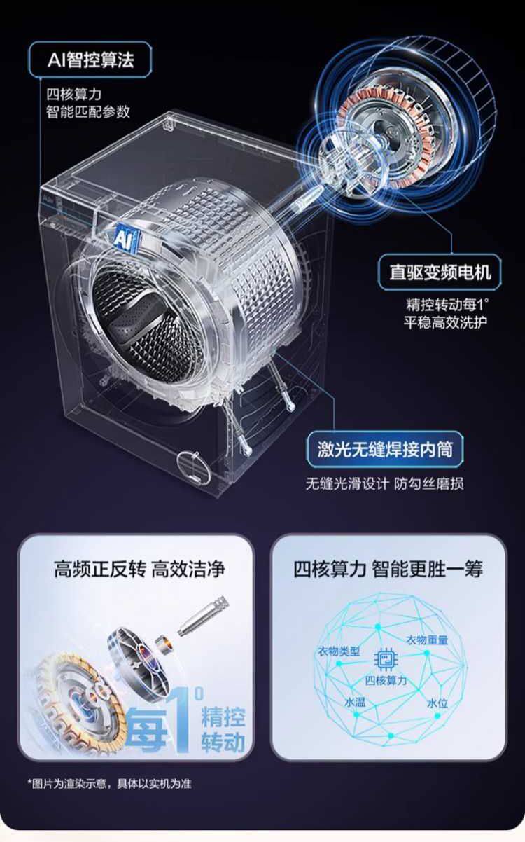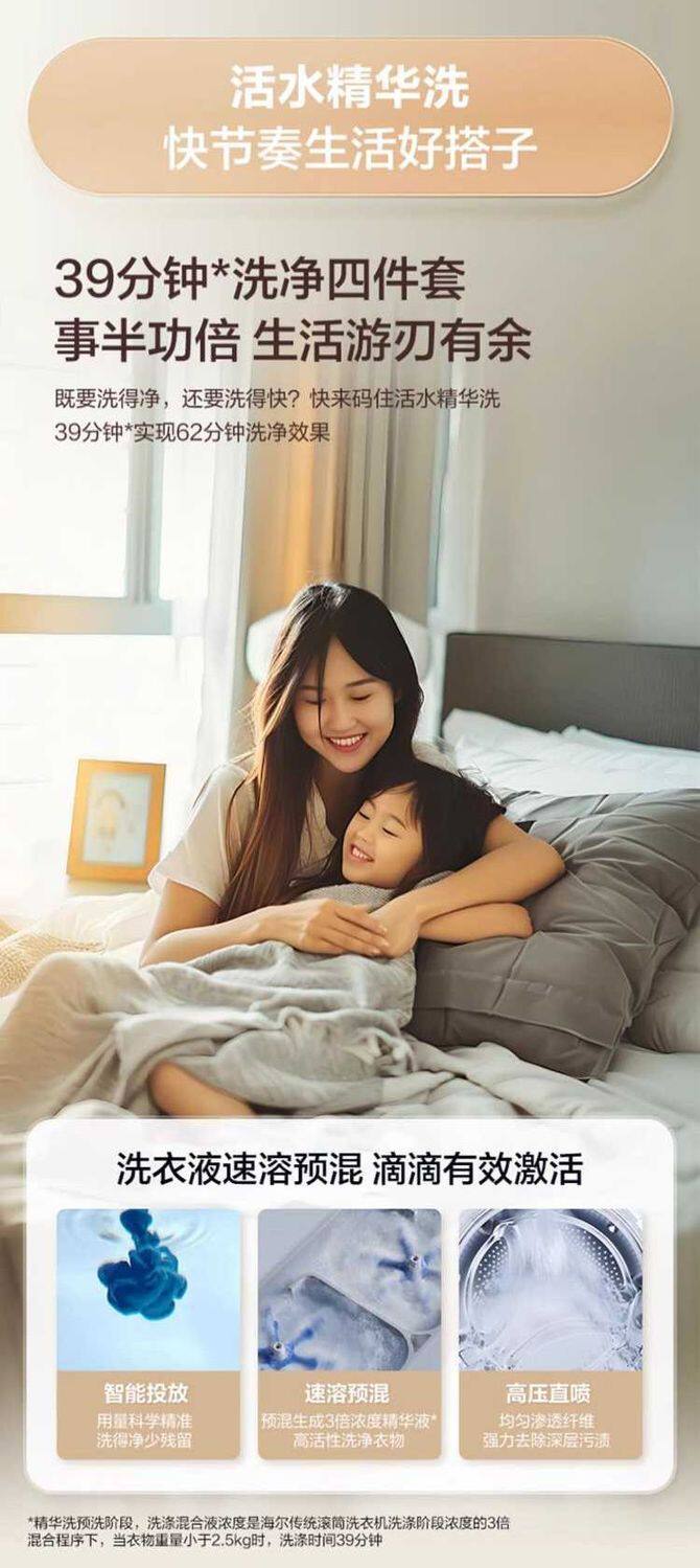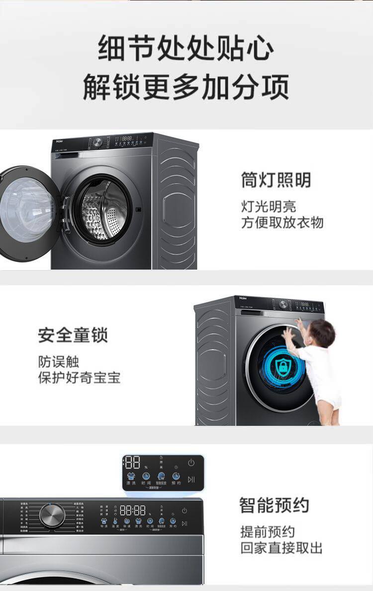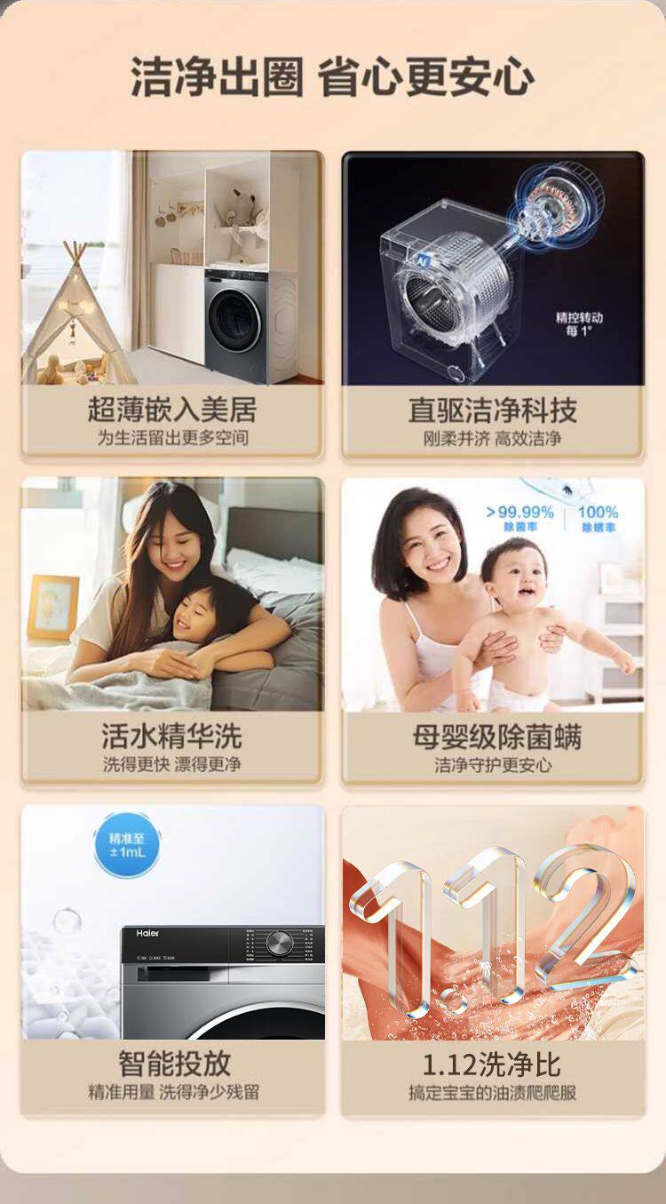 Haier Fully Automatic Washing Machine for Home Use 10kg Direct Drive Variable Frequency Ultra-Thin Drum with Mite Removal Function Xqg100-Bd38A1