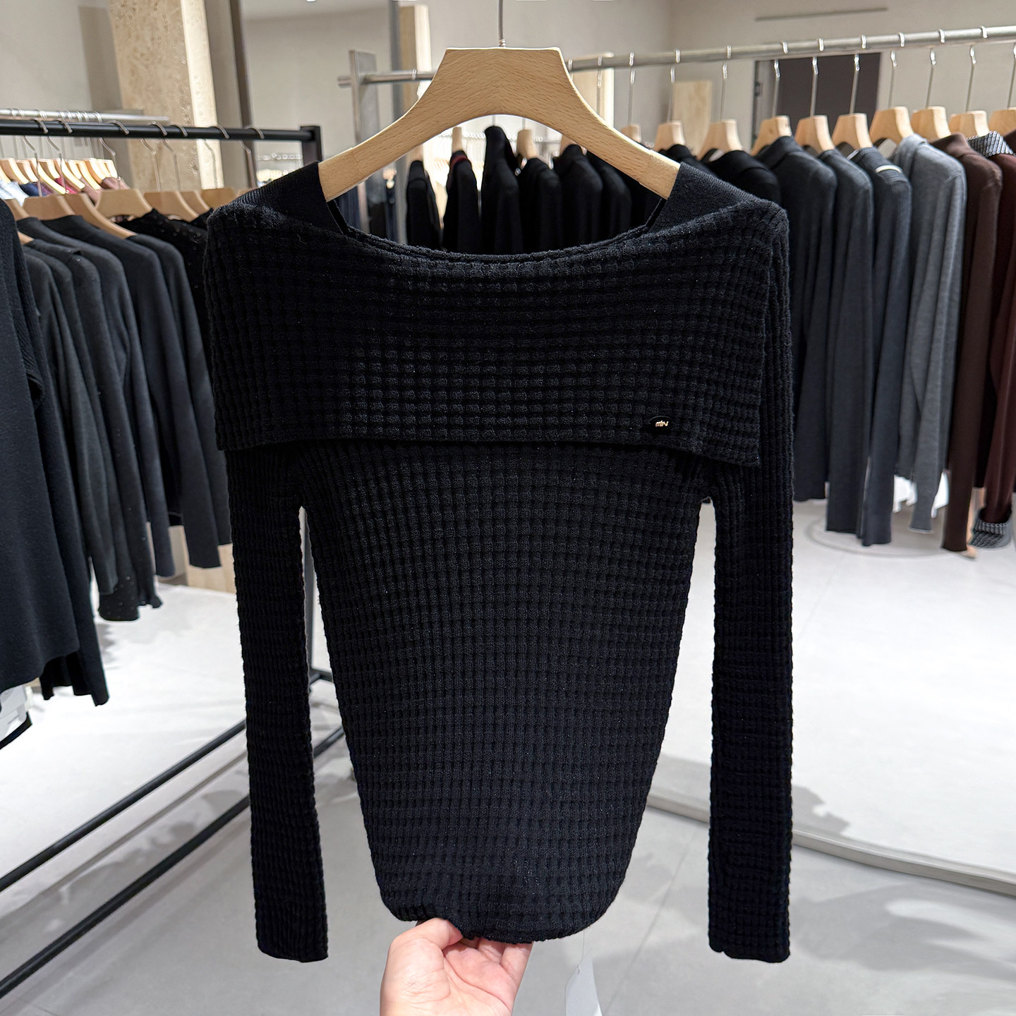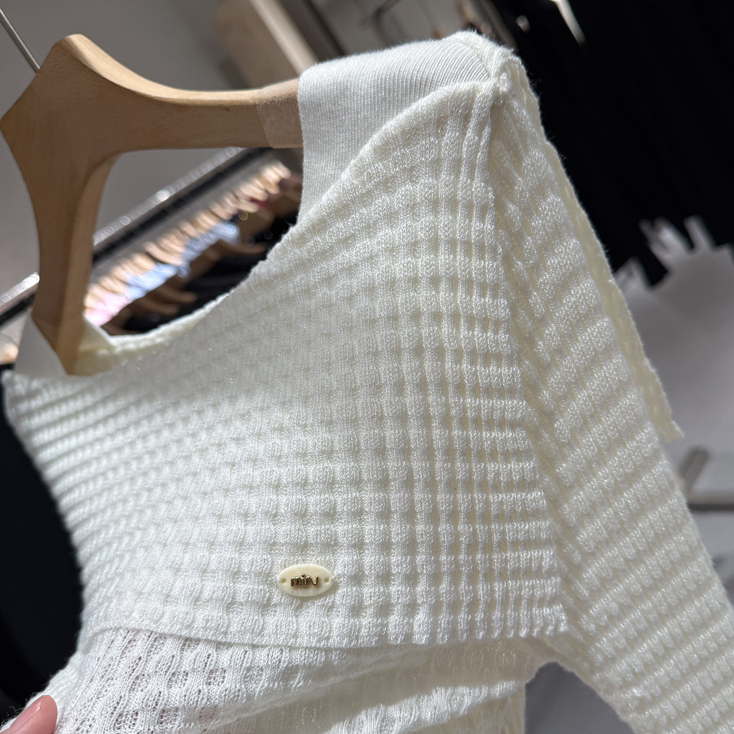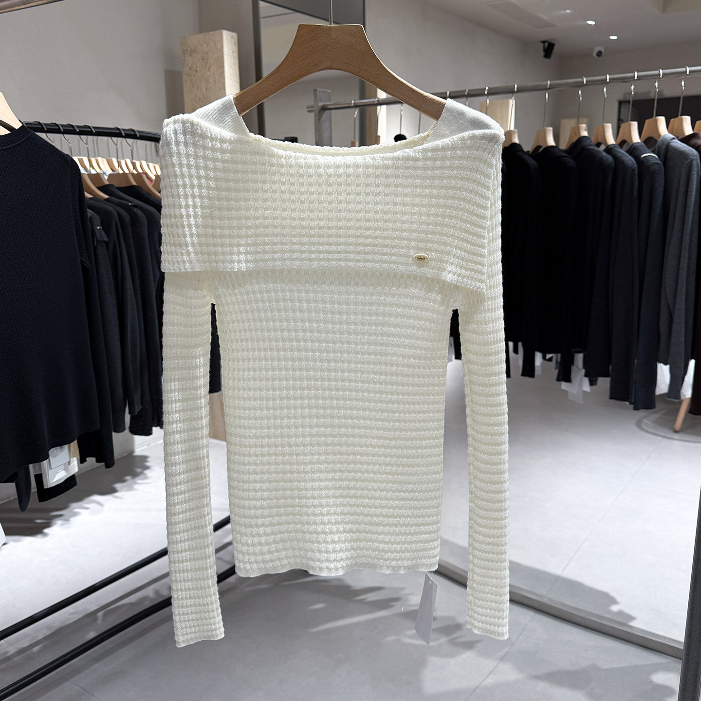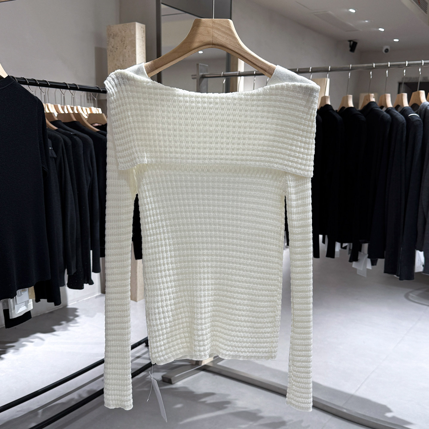 Wool sweater 2025 autumn new style letter logo flip lotus leaf one shoulder sweater top for women