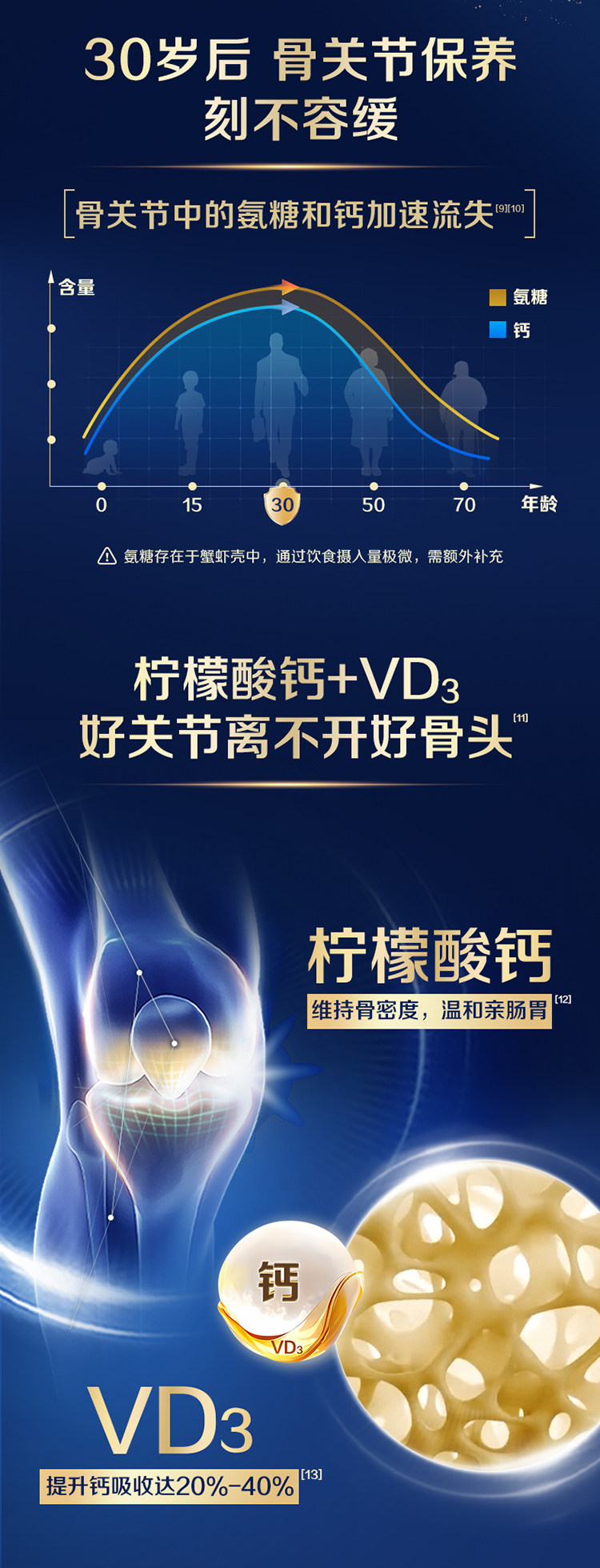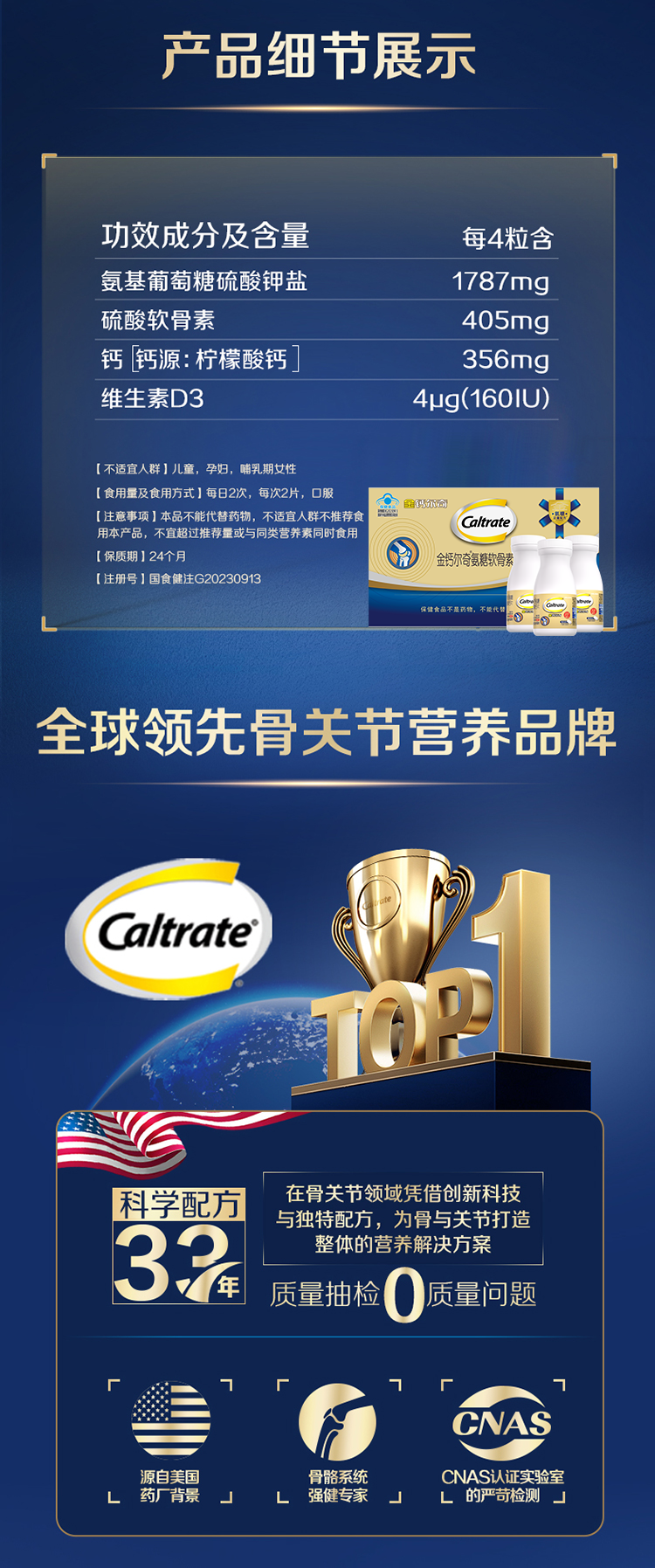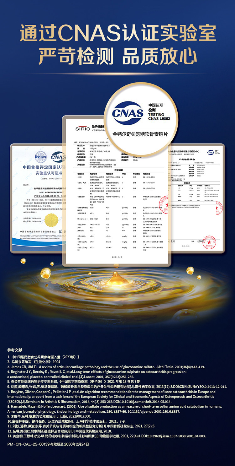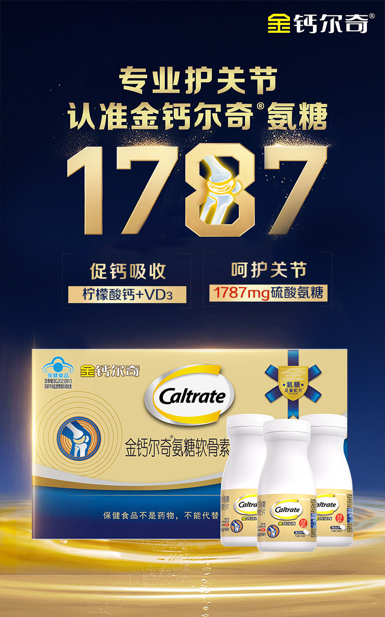 Golden Calcium 1787 Glucosamine Chondroitin Calcium Citrate Tablets Vitamin D for Middle-Aged and Elderly People to Strengthen Bones and Protect Joints