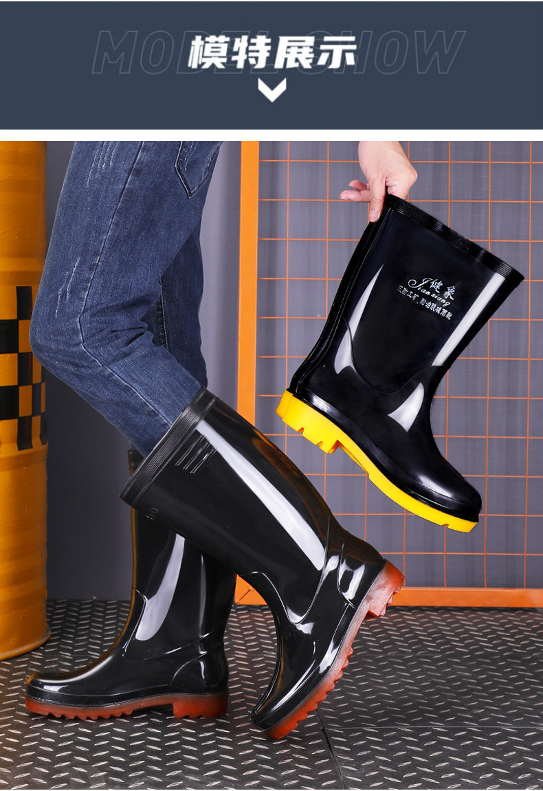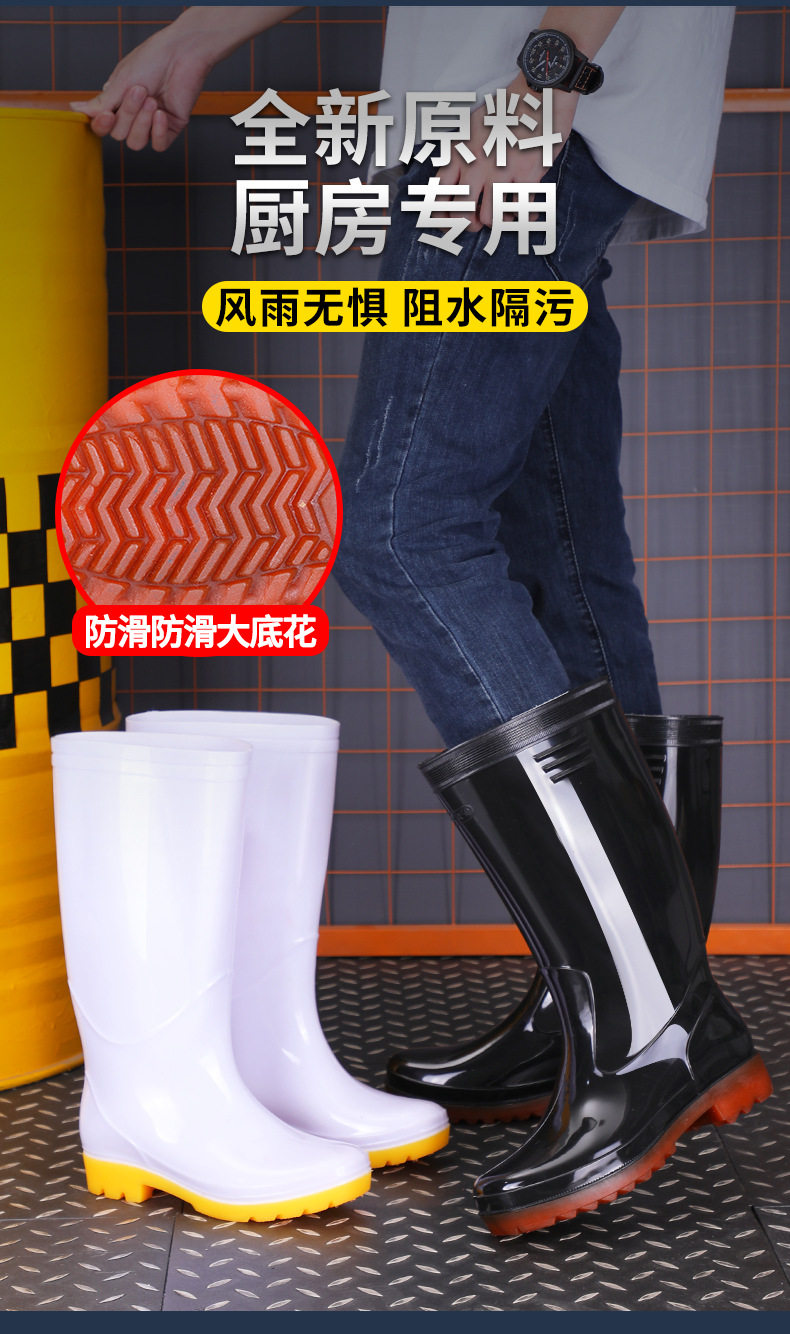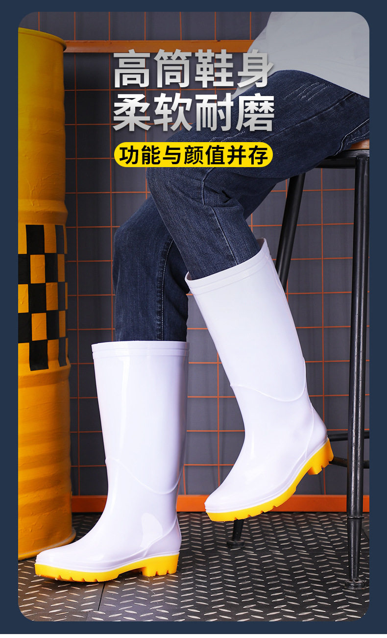 Men's high rain boots food factory men's and women's long water shoes workshop acid and alkali resistant shoes canteen anti-skid water boots kitchen