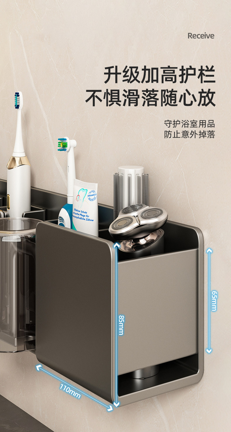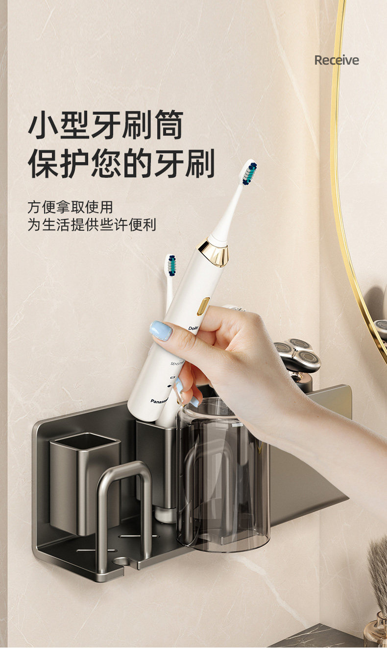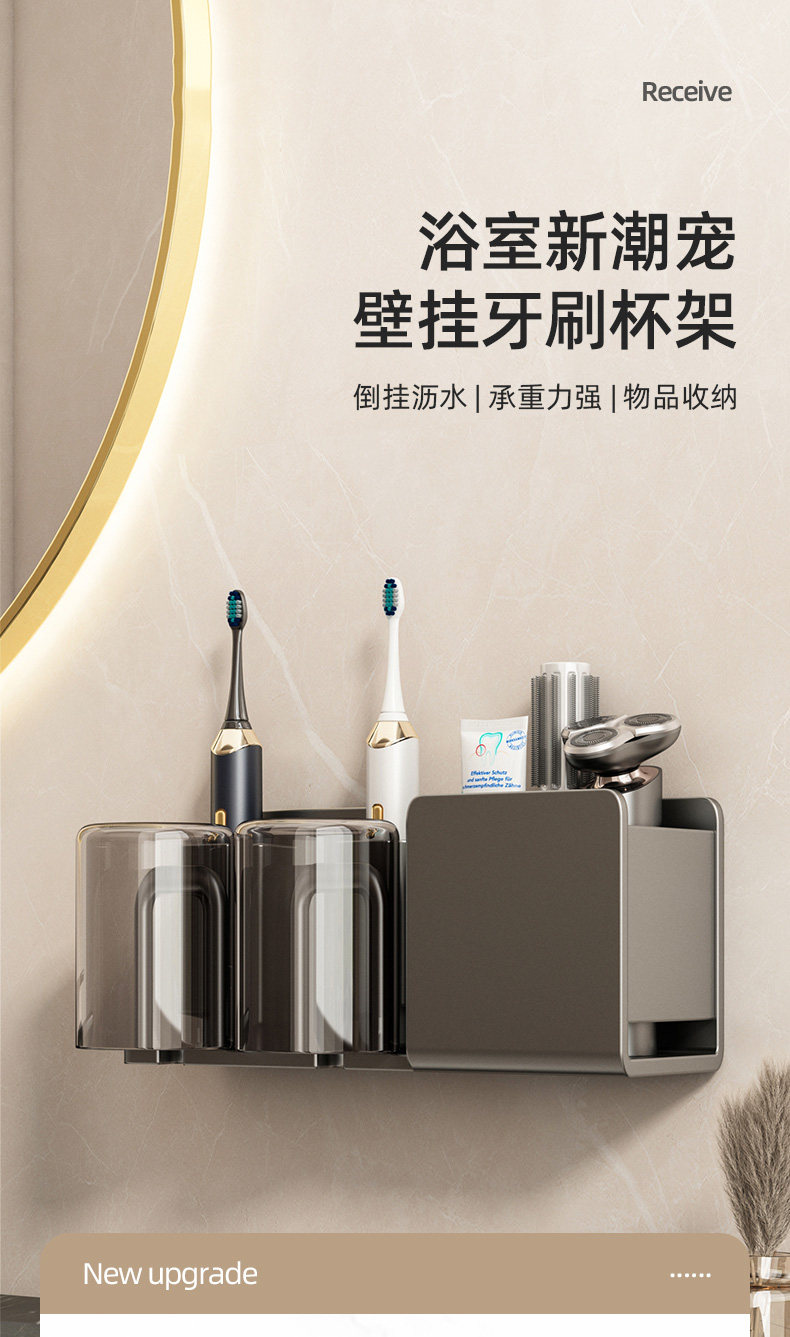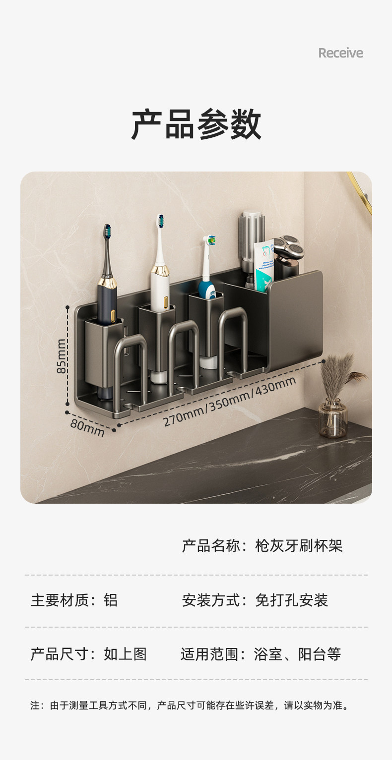 Toothbrush Holder Wall-Mounted No-Drill Bathroom Toothbrush Cup Mouthwash Cup Storage Family Electric Toothbrush Rack