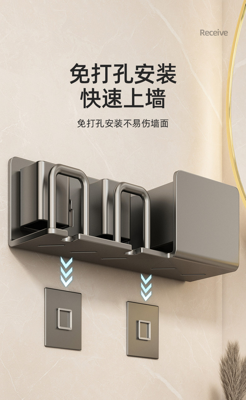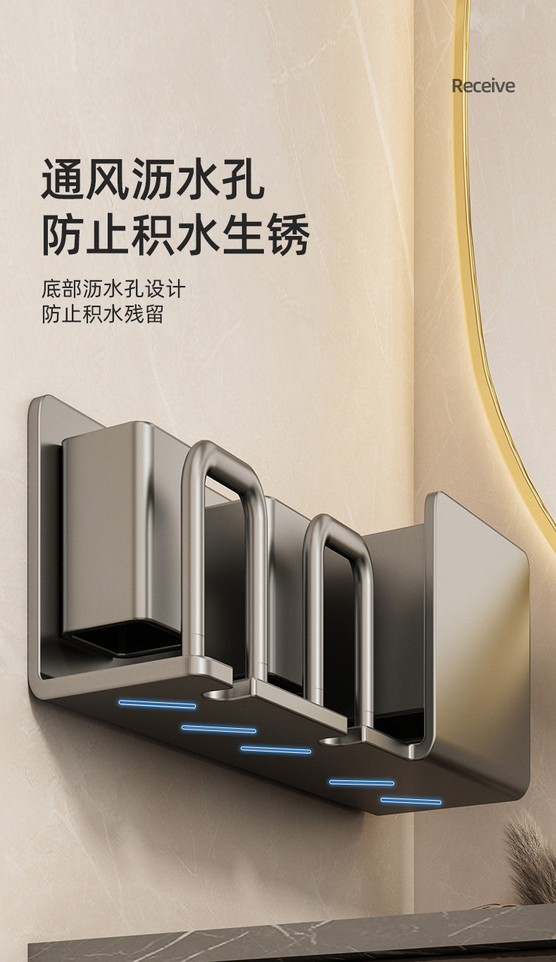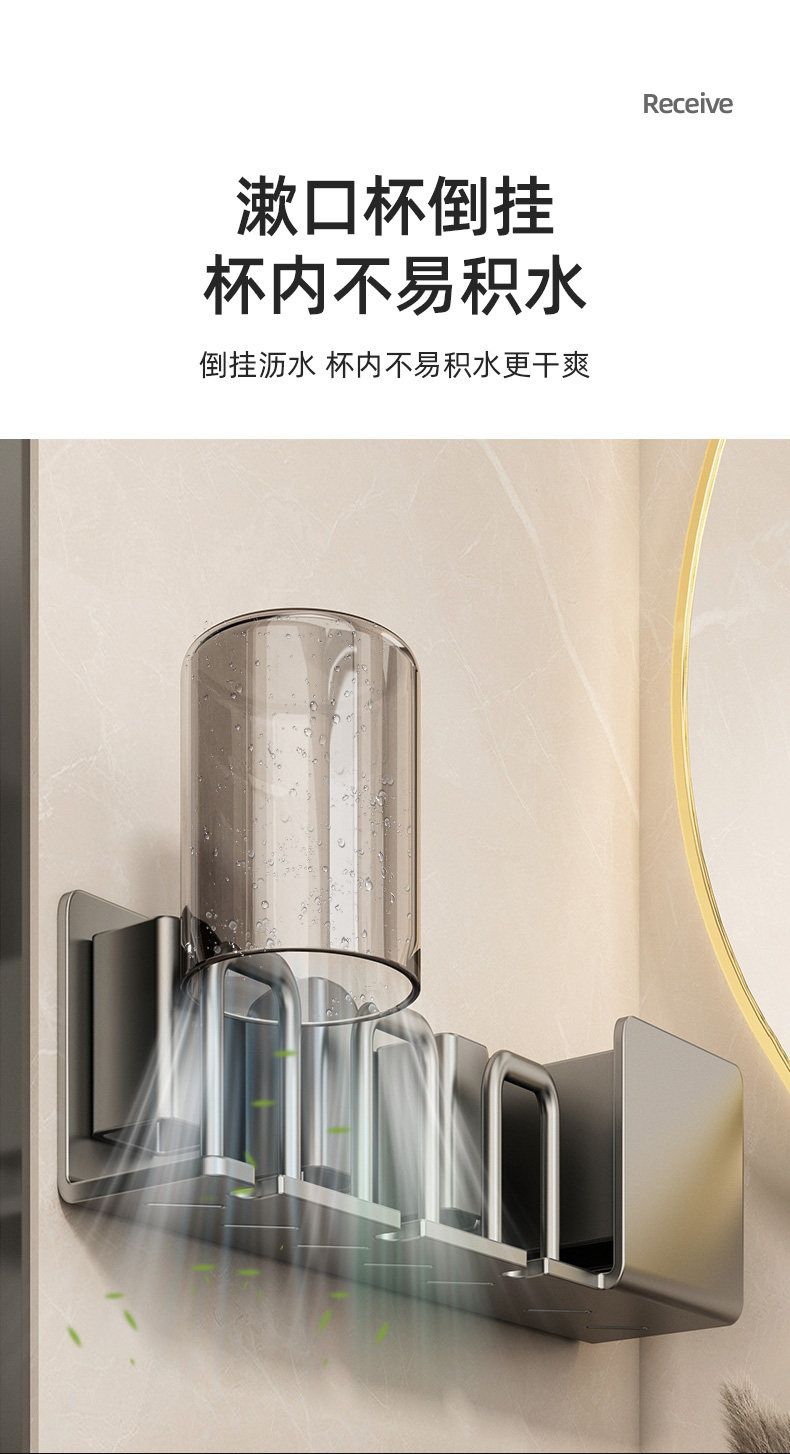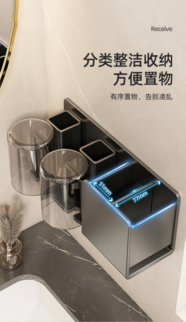 Toothbrush Holder Wall-Mounted No-Drill Bathroom Toothbrush Cup Mouthwash Cup Storage Family Electric Toothbrush Rack