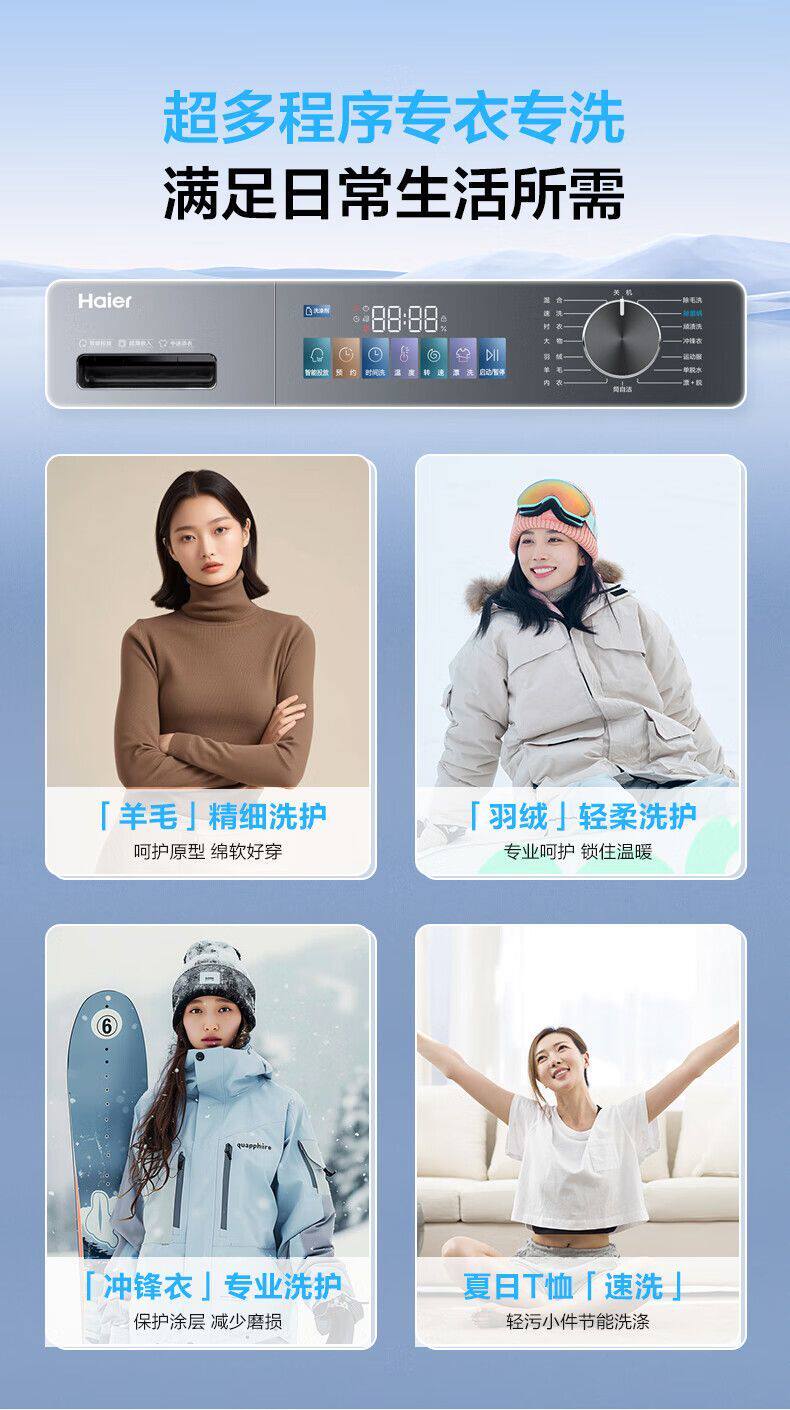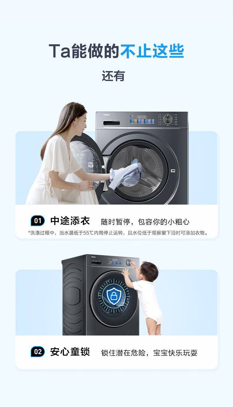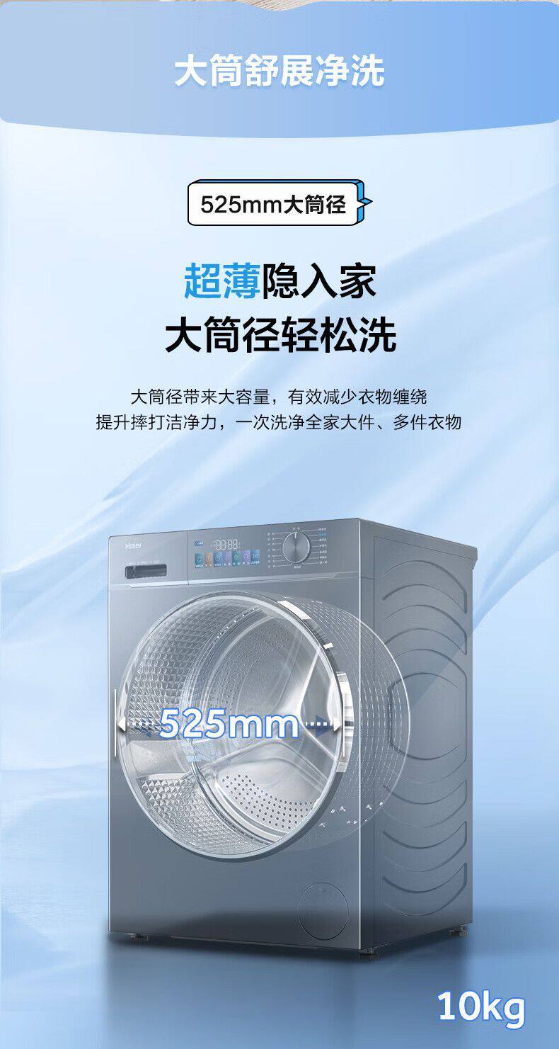 Haier Fully Automatic Household Washing Machine with Drum, 10kg Anti-Mite Washes, Intelligent Dosing, Inverter Eg100Bd68L