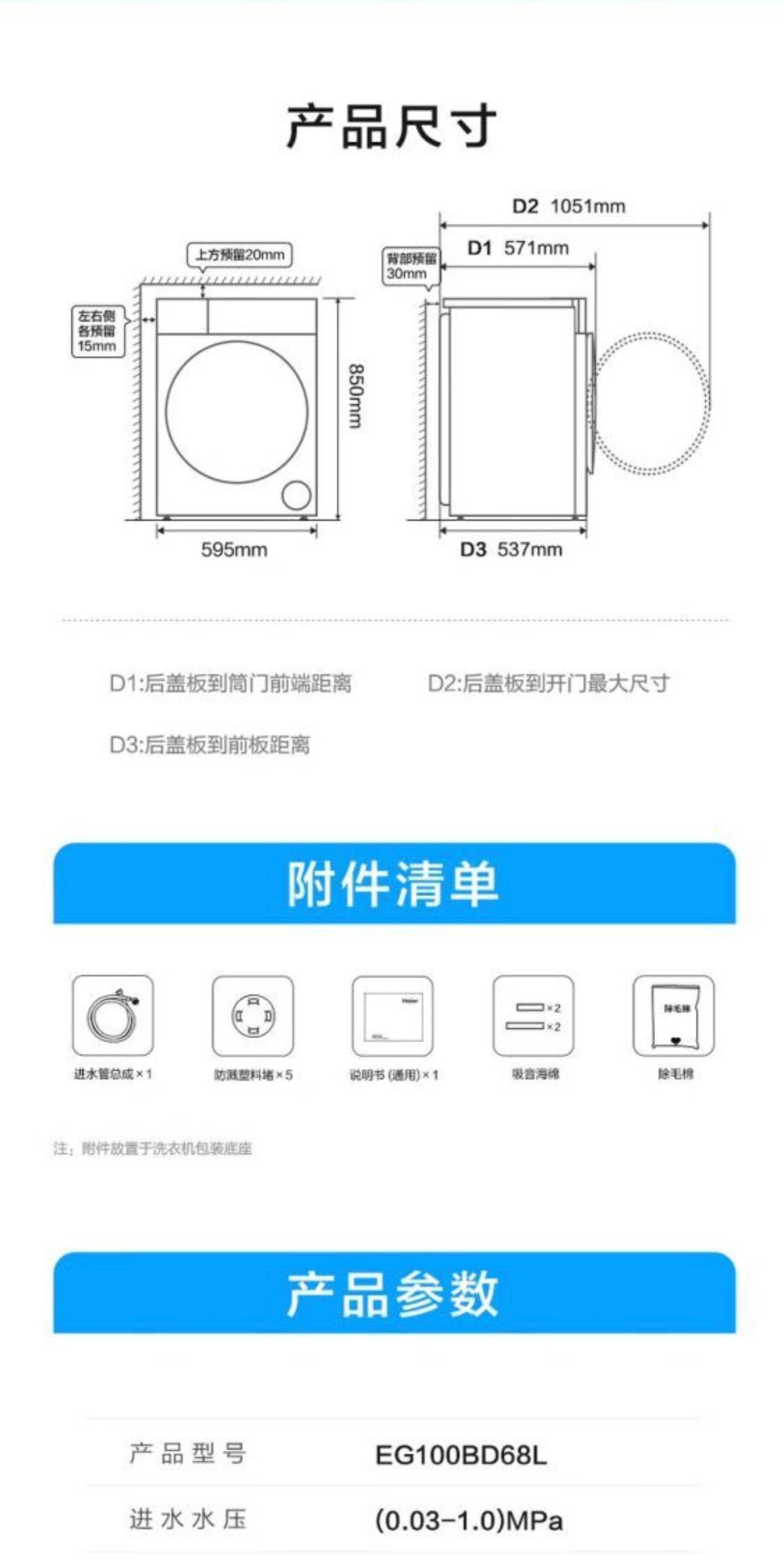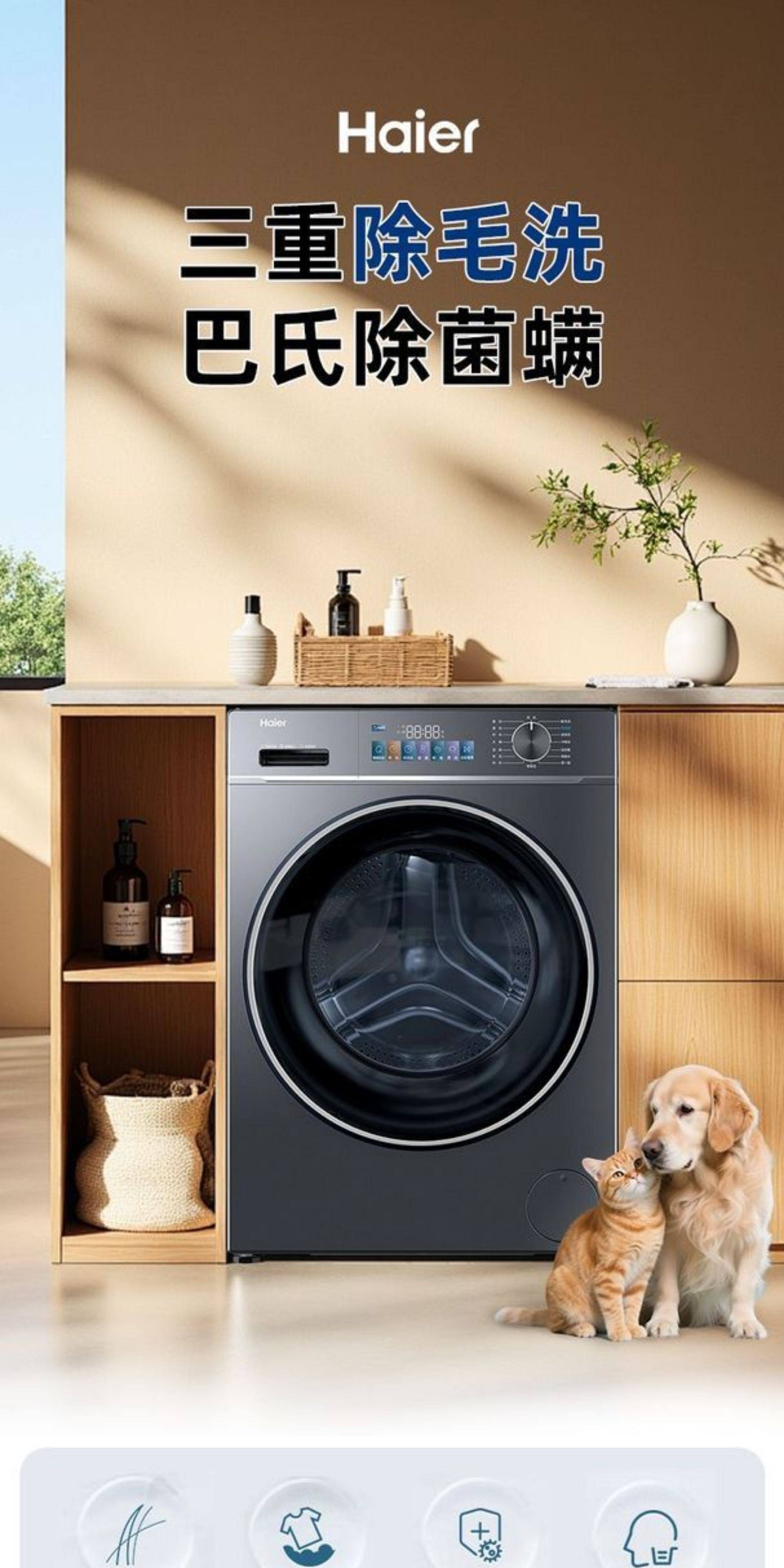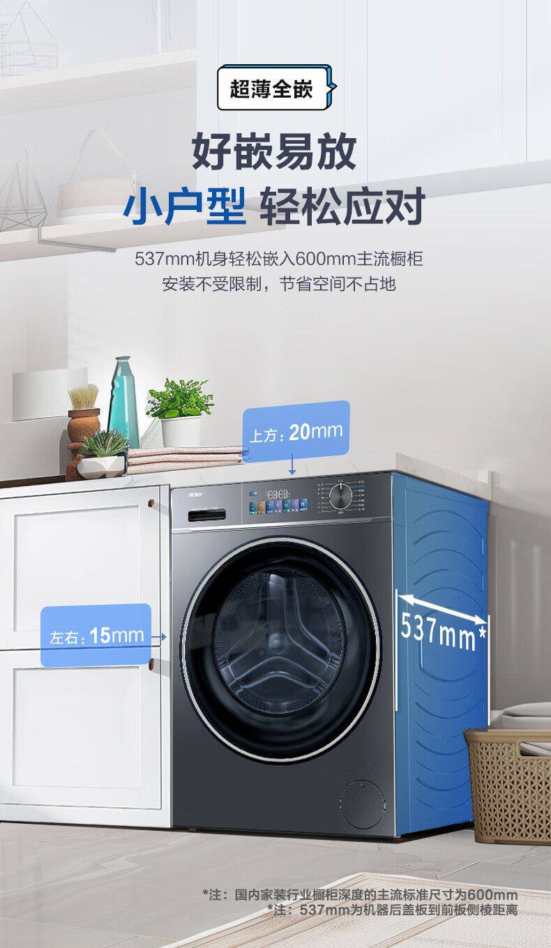 Haier Fully Automatic Household Washing Machine with Drum, 10kg Anti-Mite Washes, Intelligent Dosing, Inverter Eg100Bd68L