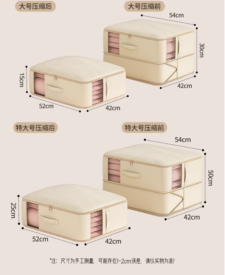 Sort by color Large size beige regular style 52*42*15CM,Large size pink regular style 52*42*15CM,Large Green Regular Style 52*42*15CM,Extra large beige regular style 52*42*25CM,Extra large pink regular style 52*42*25CM,Extra large green regular style 52*42*25CM,Large size beige compressed 54*42*30CM,Large pink compressed version 54*42*30CM,Large Green Compressed Model 54*42*30CM,Extra large beige compressed version 54*42*50CM,Extra large pink compressed version 54*42*50CM,Extra Large Green Compressed Style 54*42*50CM