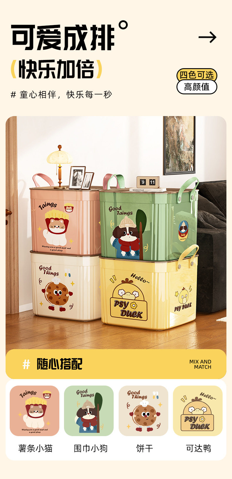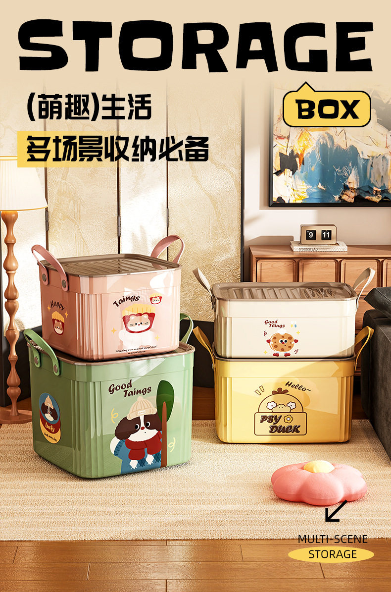 Multi-Functional Storage Box for Miscellaneous Items, Snacks, and Toys, Large-Capacity Cartoon Plastic Box for Home Use