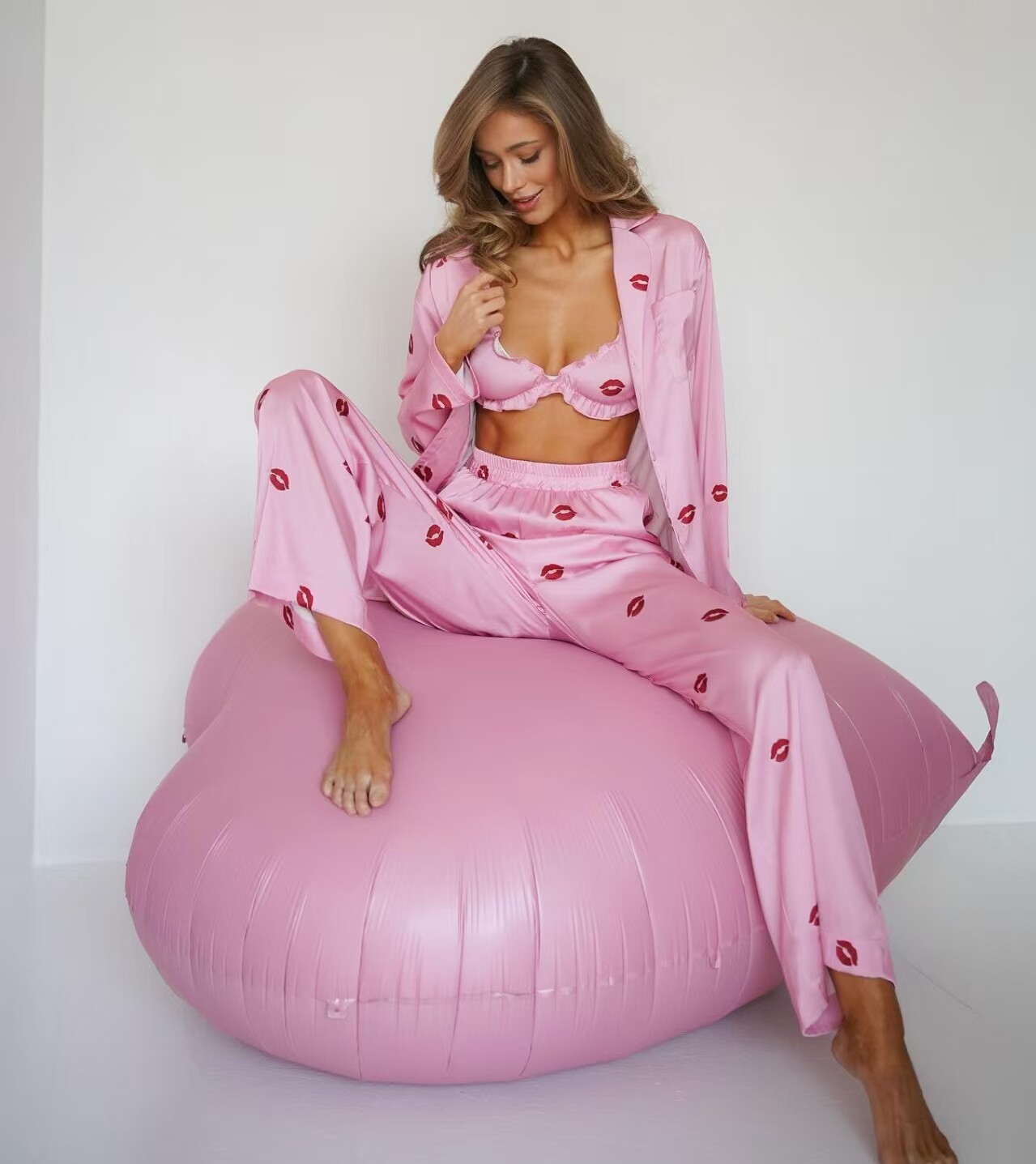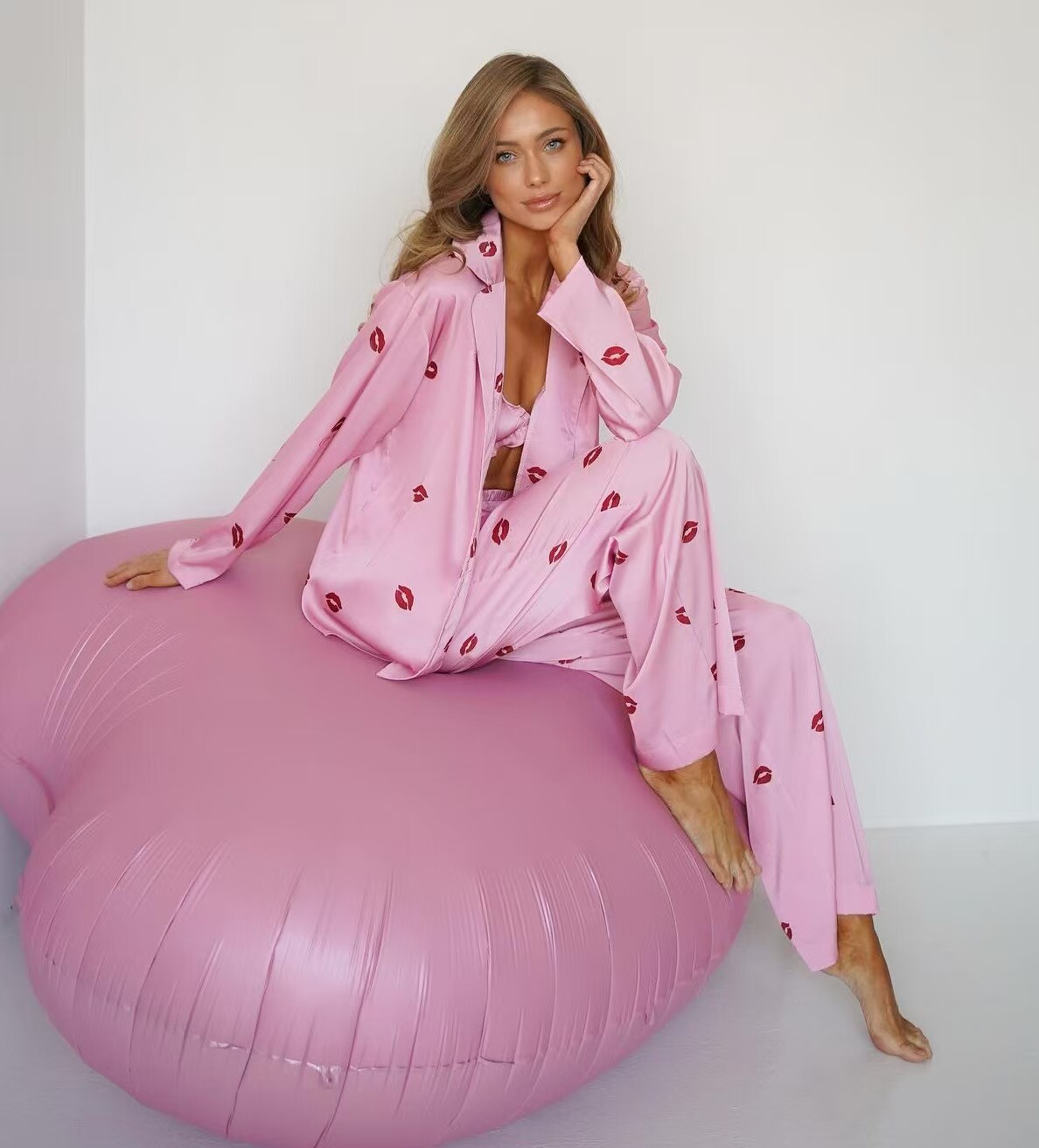 European and American style new fashion printed comfortable cardigan top vest trousers three-piece set