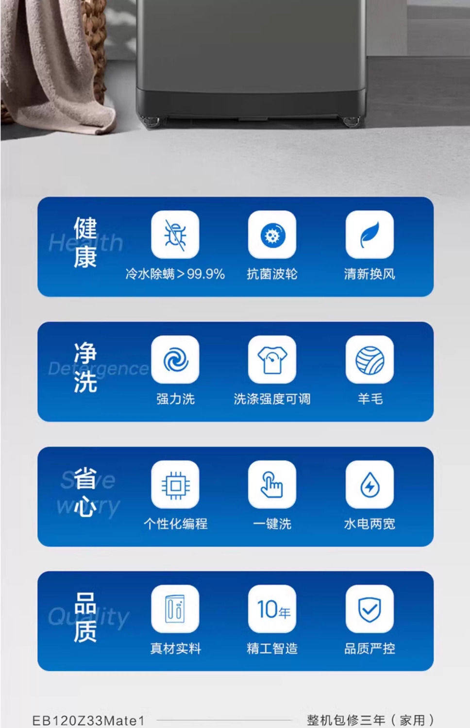 Haier/Haier Pulsator Washing Machine 12kg Large Capacity Fully Automatic Household Antibacterial Eb120Z33Mate1
