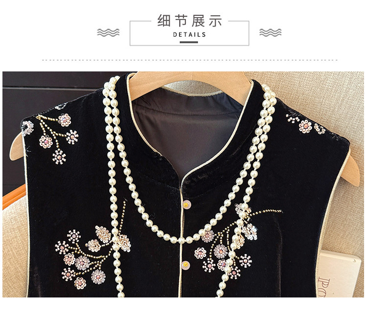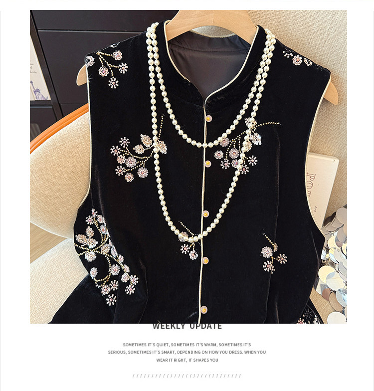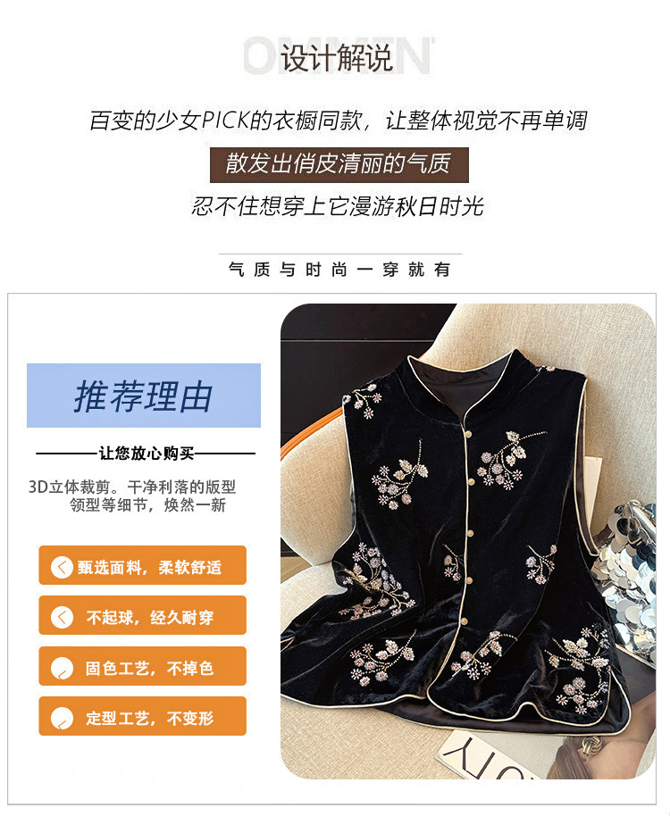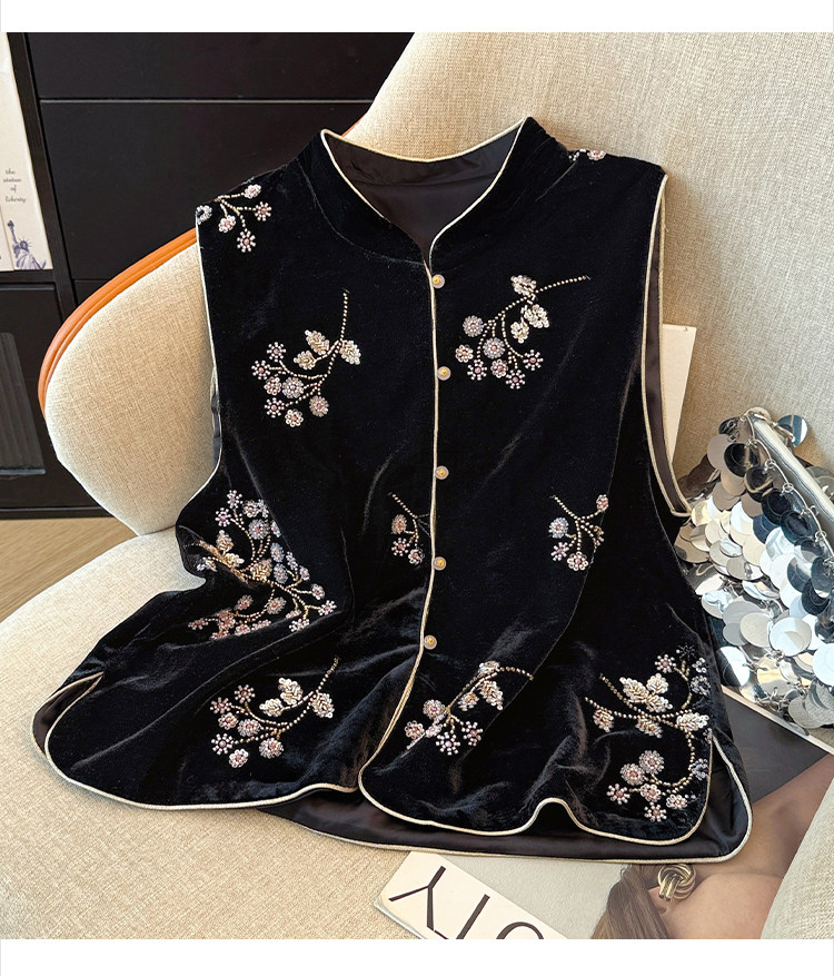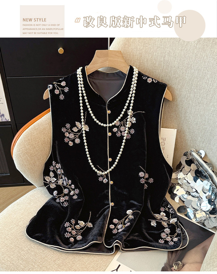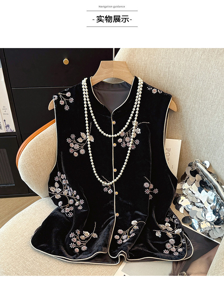 Real shot of new Chinese style sequin embroidered vest vest for women autumn new style velvet heavy industry national style top women's jacket