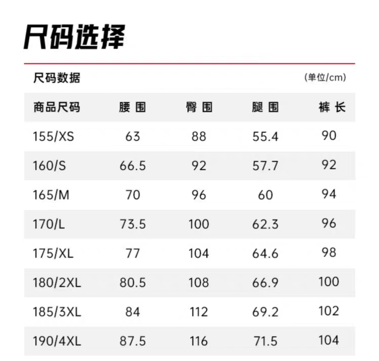 Outseam (cm) 99 cm 101.5 cm 104 cm 106.5 cm 109 cm